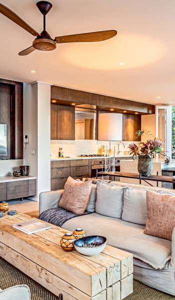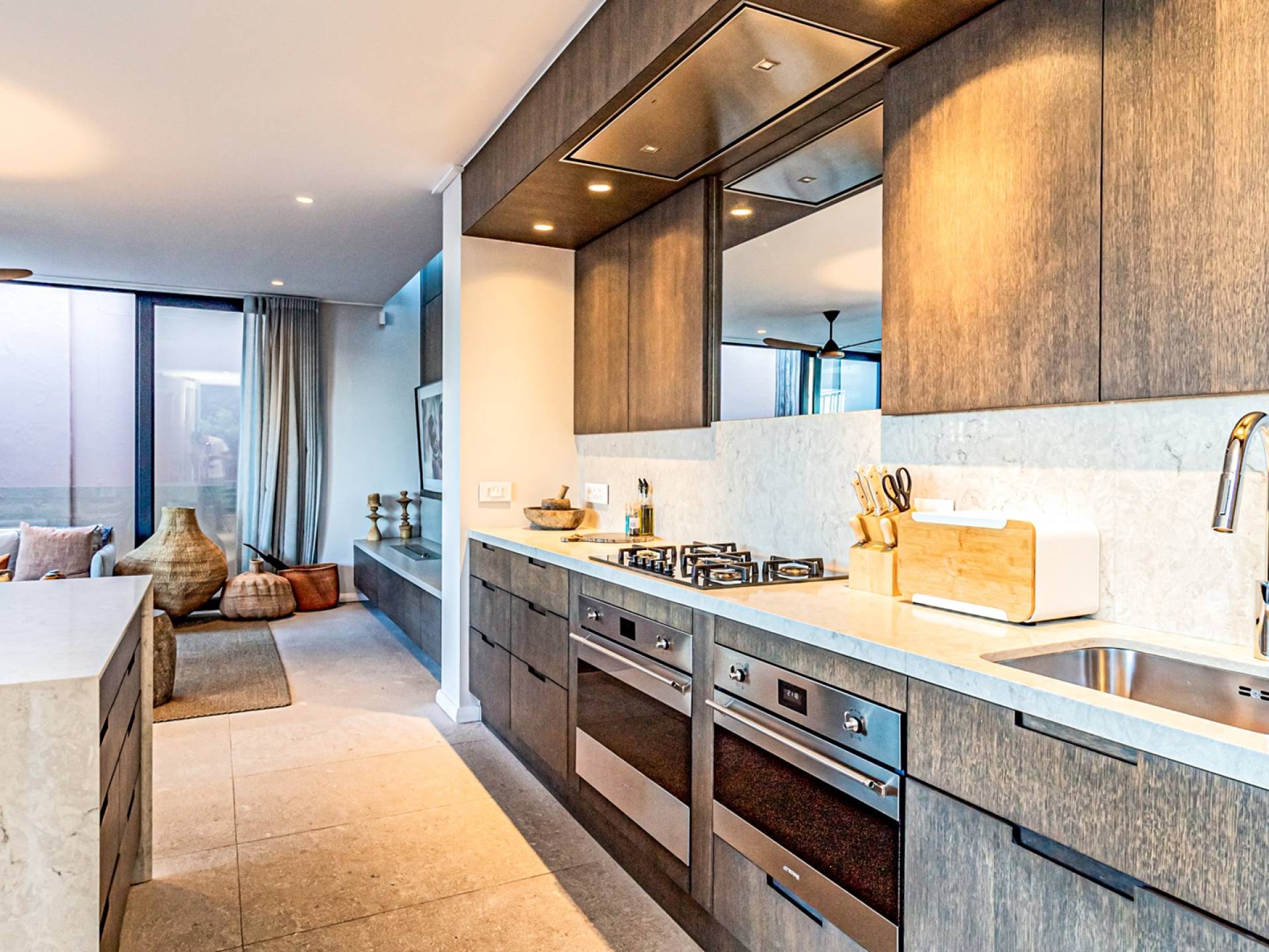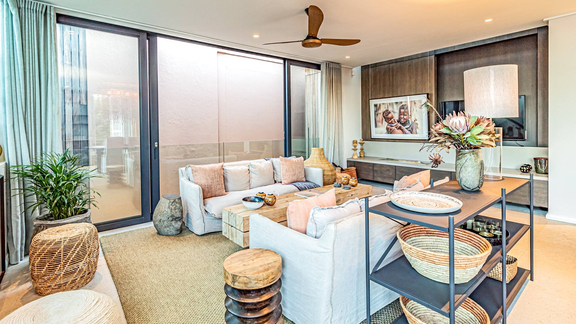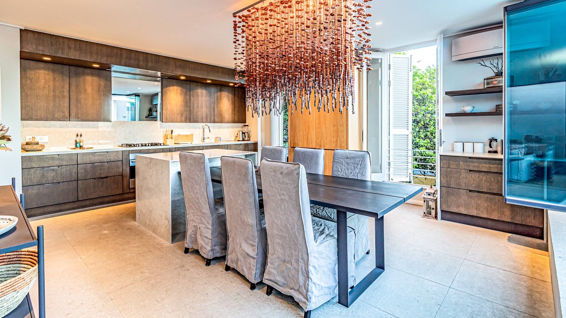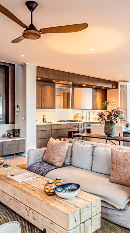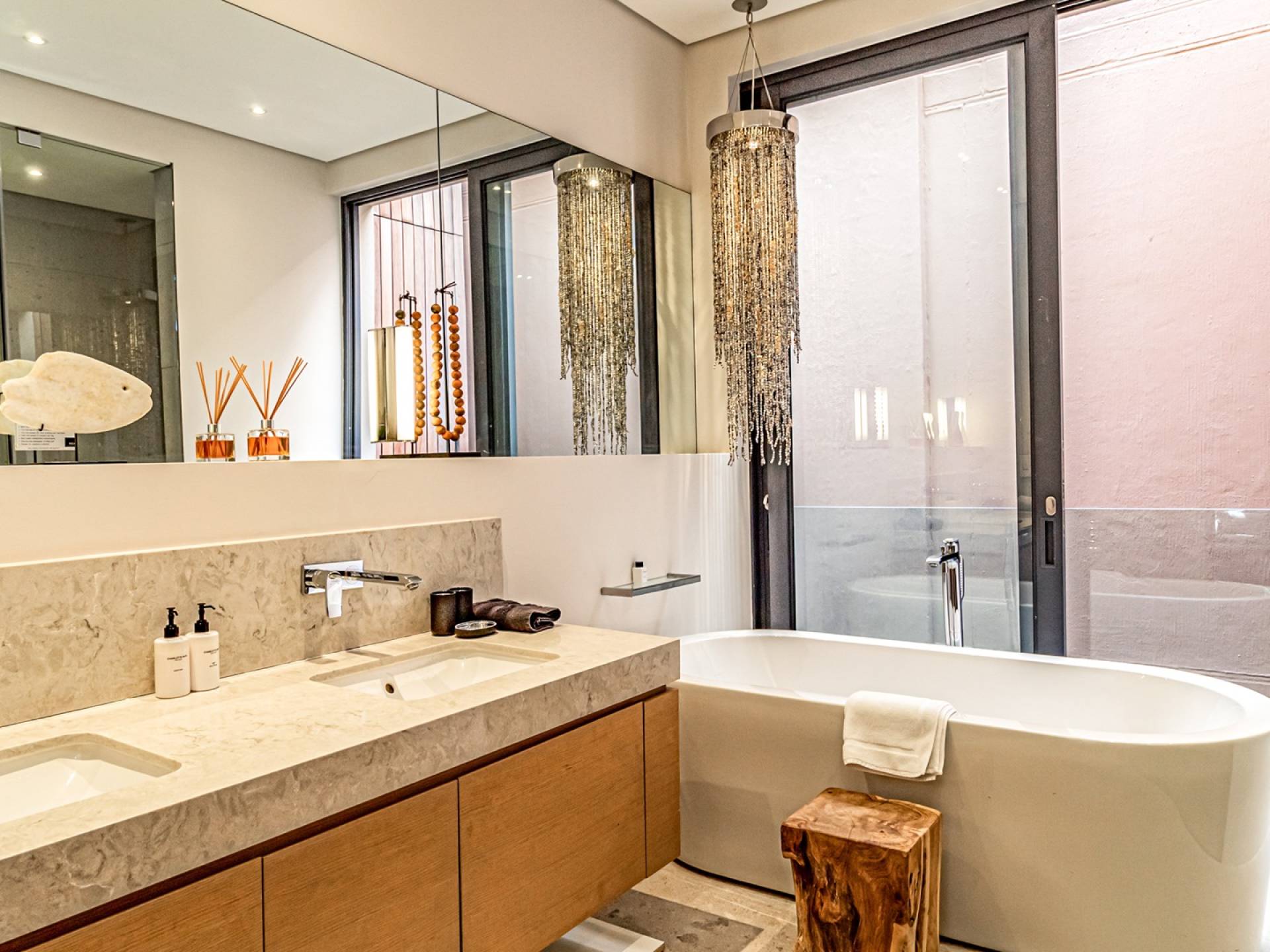 Το κύριο σαλόνι διαθέτει σαλόνι με μεγάλους άνετους καναπέδες, σαλόνι με τηλεόραση, τραπεζαρία για 6 άτομα και κουζίνα με δυνατότητα προετοιμασίας γευμάτων, εξοπλισμένη με όλα τα απαραίτητα. Οι πτυσσόμενες γυάλινες πόρτες ανοίγουν για να αποκαλύψουν μια πισίνα, η οποία είναι ιδανική για τις πιο ζεστές μέρες του καλοκαιριού. Κάθε ένα από τα τρία υπνοδωμάτια διαθέτει κρεβάτι king size και ιδιωτικό μπάνιο. Είναι όλα υπέροχα και ευρύχωρα και ο ουδέτερος συνδυασμός χρωμάτων είναι υπέροχος και χαλαρωτικός.