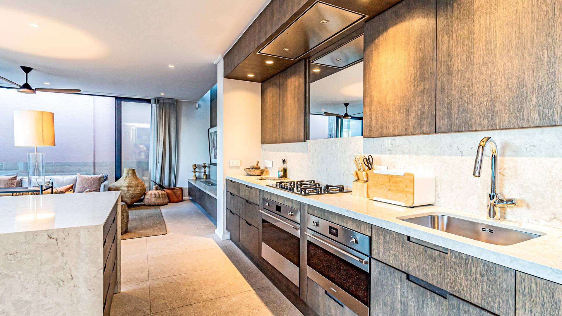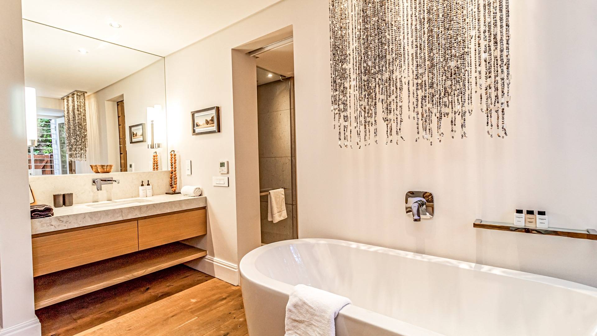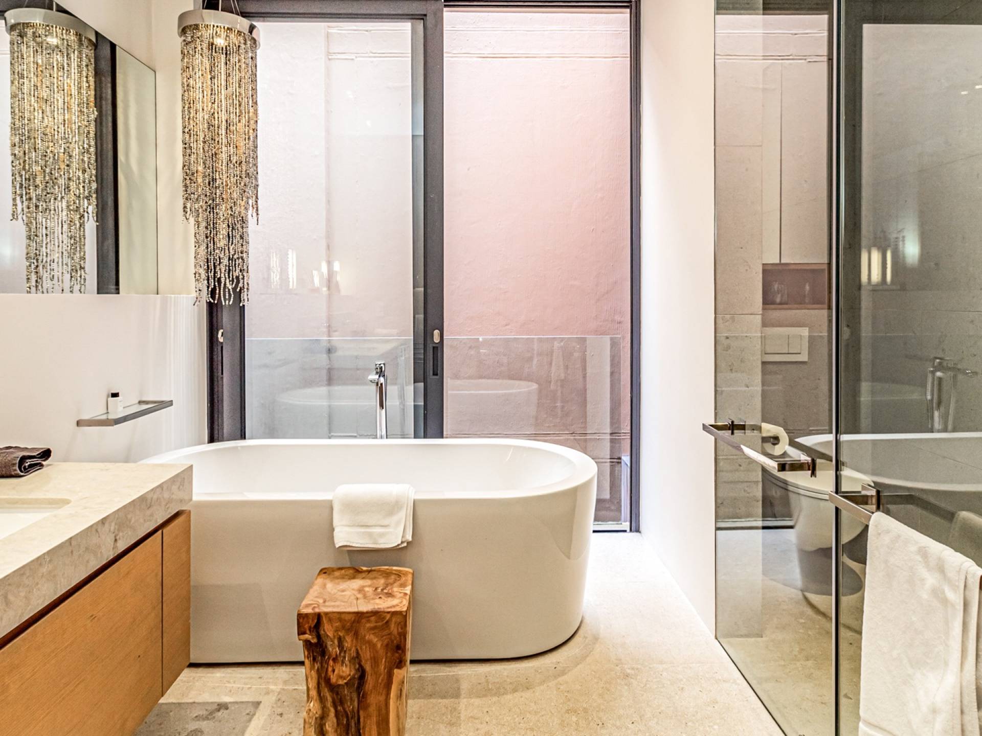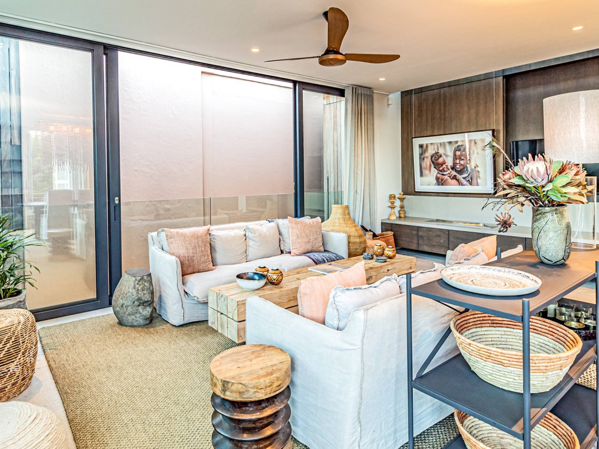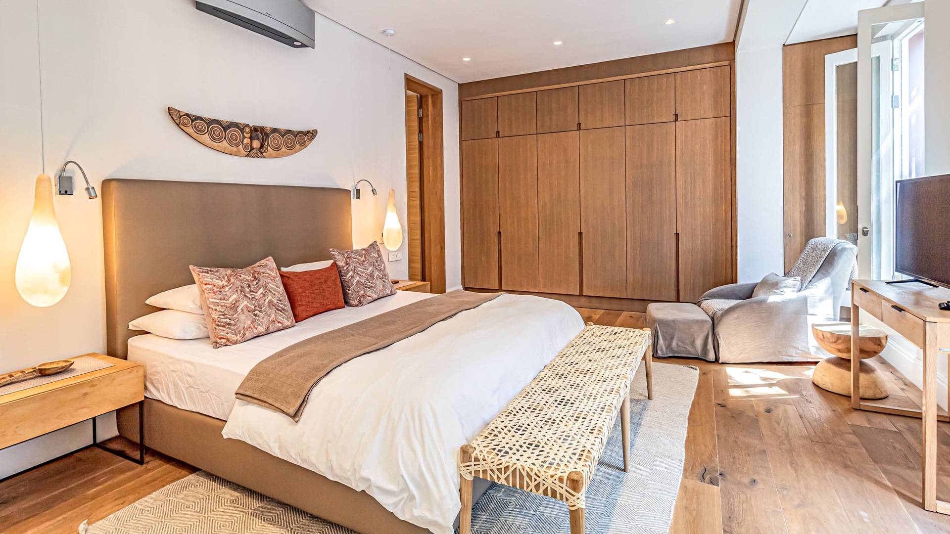 Το κύριο σαλόνι διαθέτει σαλόνι με μεγάλους άνετους καναπέδες, σαλόνι με τηλεόραση, τραπεζαρία για 6 άτομα και κουζίνα με δυνατότητα προετοιμασίας γευμάτων, εξοπλισμένη με όλα τα απαραίτητα. Οι πτυσσόμενες γυάλινες πόρτες ανοίγουν για να αποκαλύψουν μια πισίνα, η οποία είναι ιδανική για τις πιο ζεστές μέρες του καλοκαιριού. Κάθε ένα από τα τρία υπνοδωμάτια διαθέτει κρεβάτι king size και ιδιωτικό μπάνιο. Είναι όλα υπέροχα και ευρύχωρα και ο ουδέτερος συνδυασμός χρωμάτων είναι υπέροχος και χαλαρωτικός.