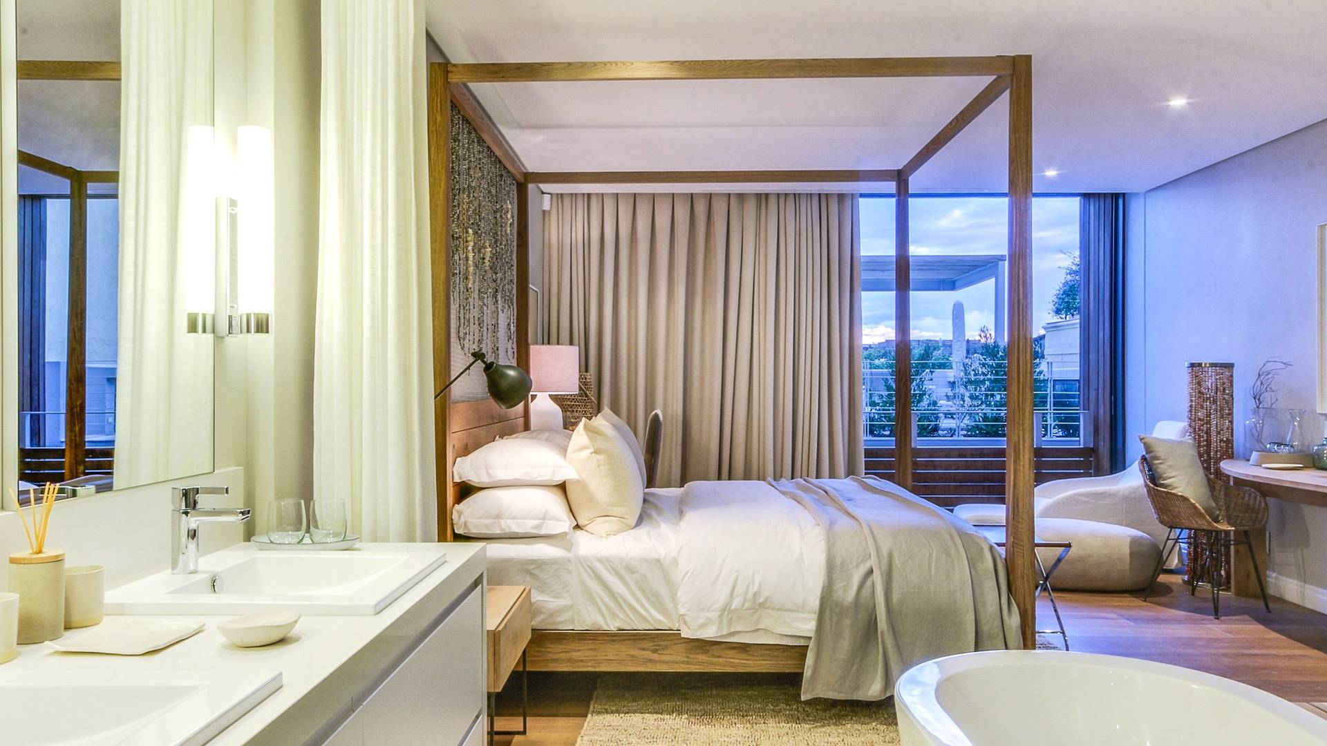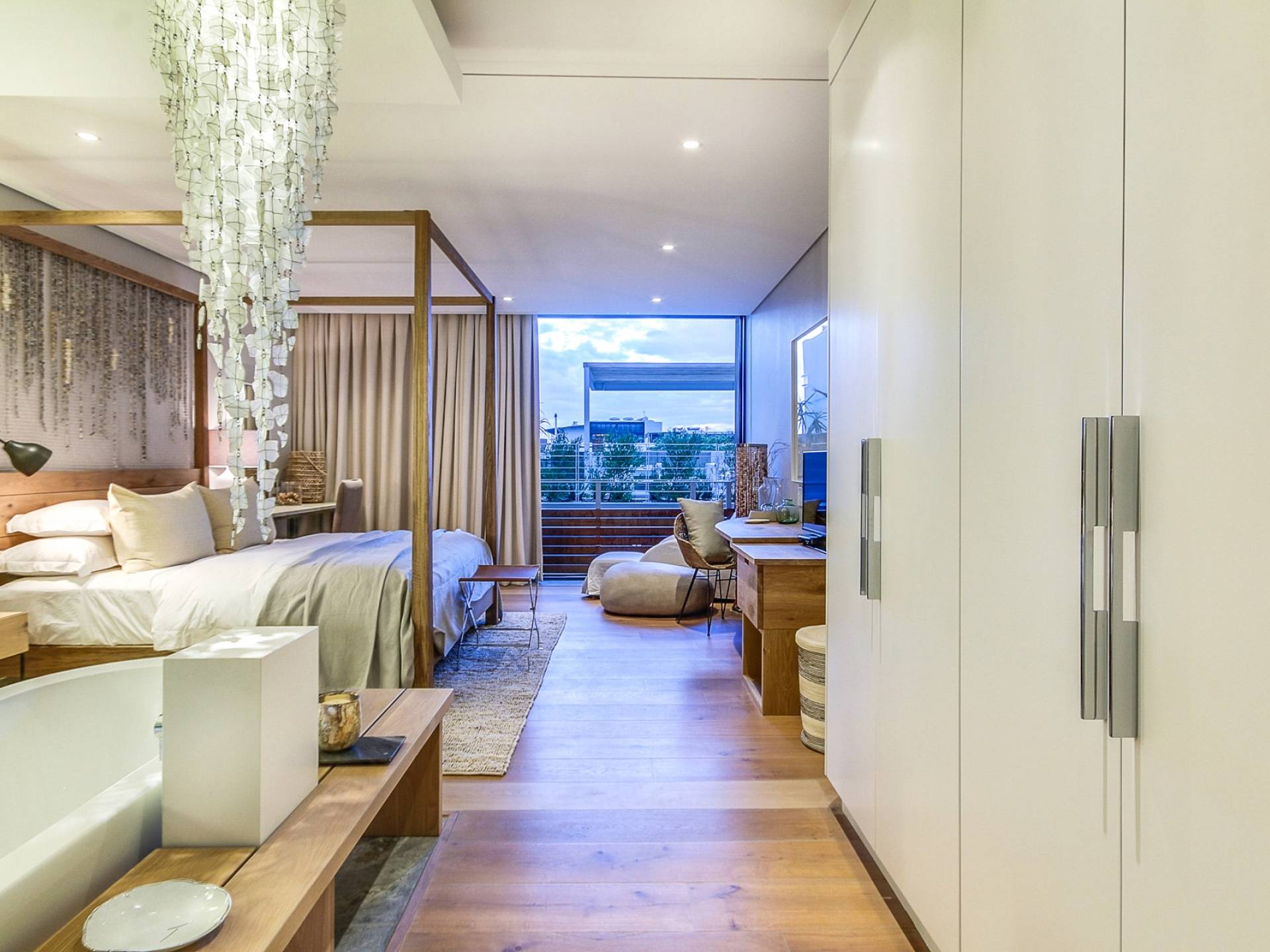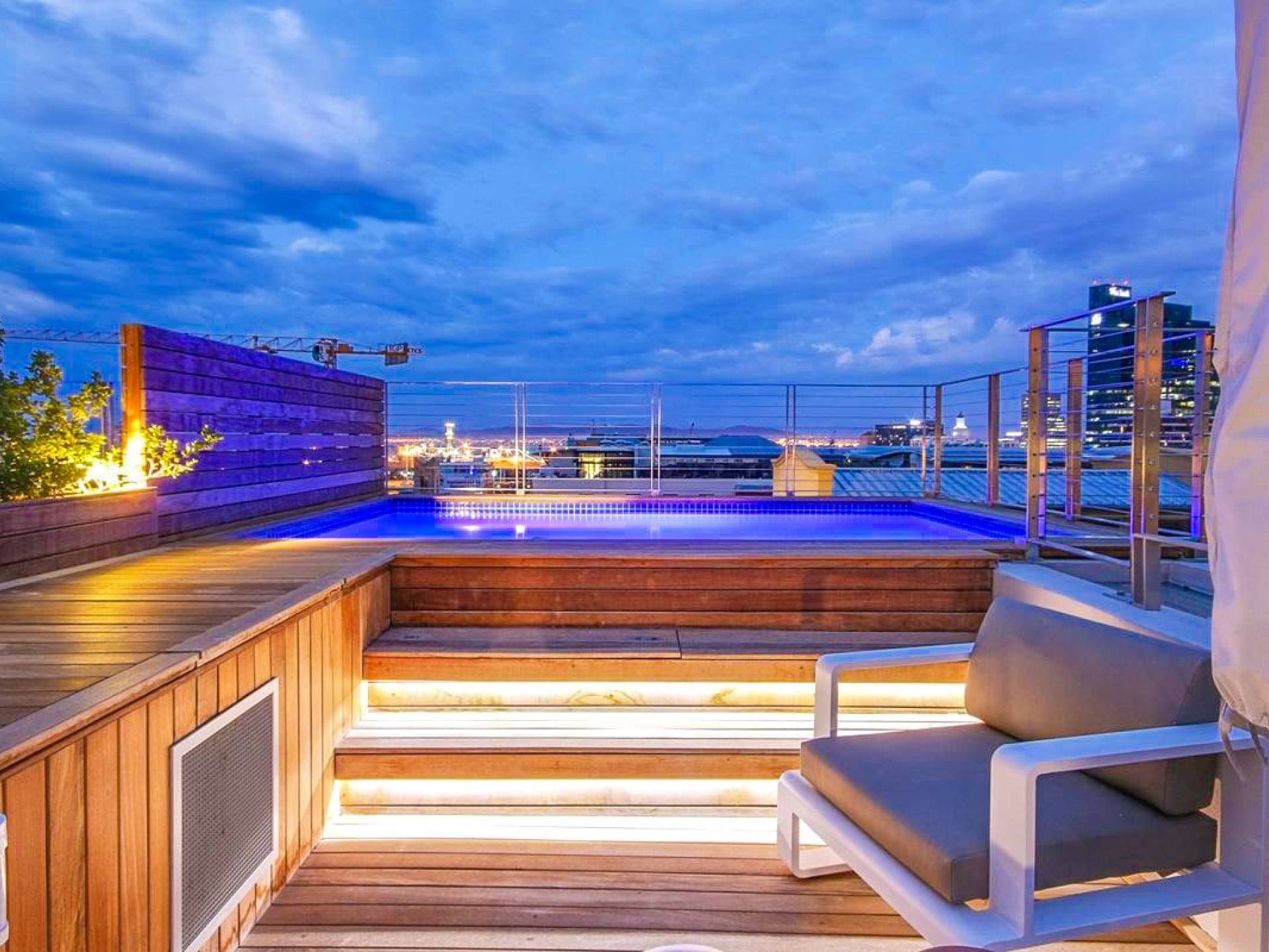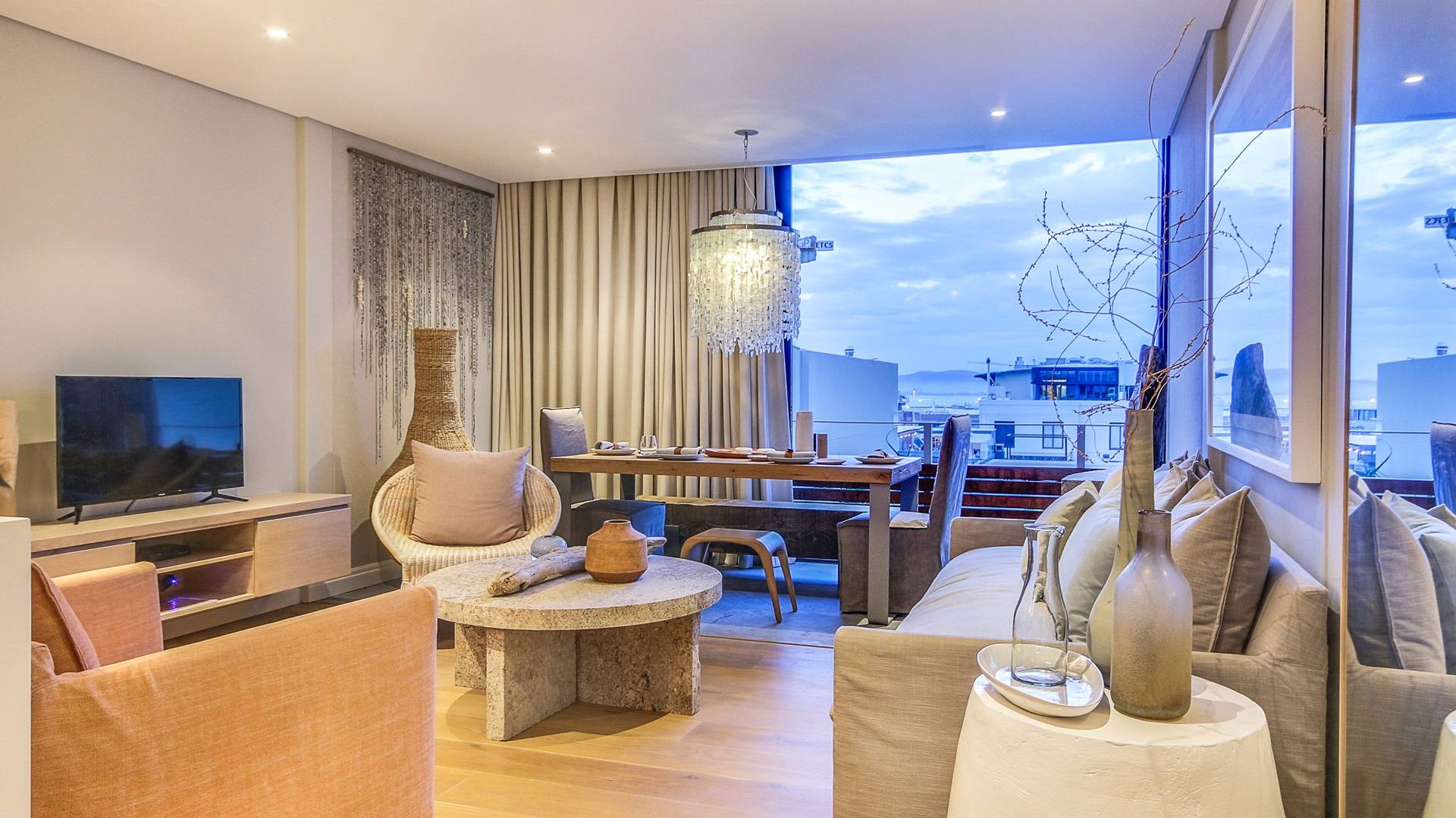 Μέσα στο σαλόνι και την τραπεζαρία υπάρχει ενιαία διαρρύθμιση, προσφέροντας δείπνο για 6 άτομα, πλήρως εξοπλισμένη κουζίνα με μπαρ πρωινού και άνετο σαλόνι τηλεόρασης με δορυφορικά κανάλια. Τα δύο υπνοδωμάτια προσφέρουν και τα δύο κρεβάτια king-size και ιδιωτικό μπάνιο. Το De Waterkant διαθέτει πολλά μπαρ και εστιατόρια, παντοπωλεία και ένα στούντιο γιόγκα. Το V and A Waterfront απέχει μόλις 5 λεπτά και το τελεφερίκ Table Mountain είναι 10 λεπτά μακριά με το αυτοκίνητο.