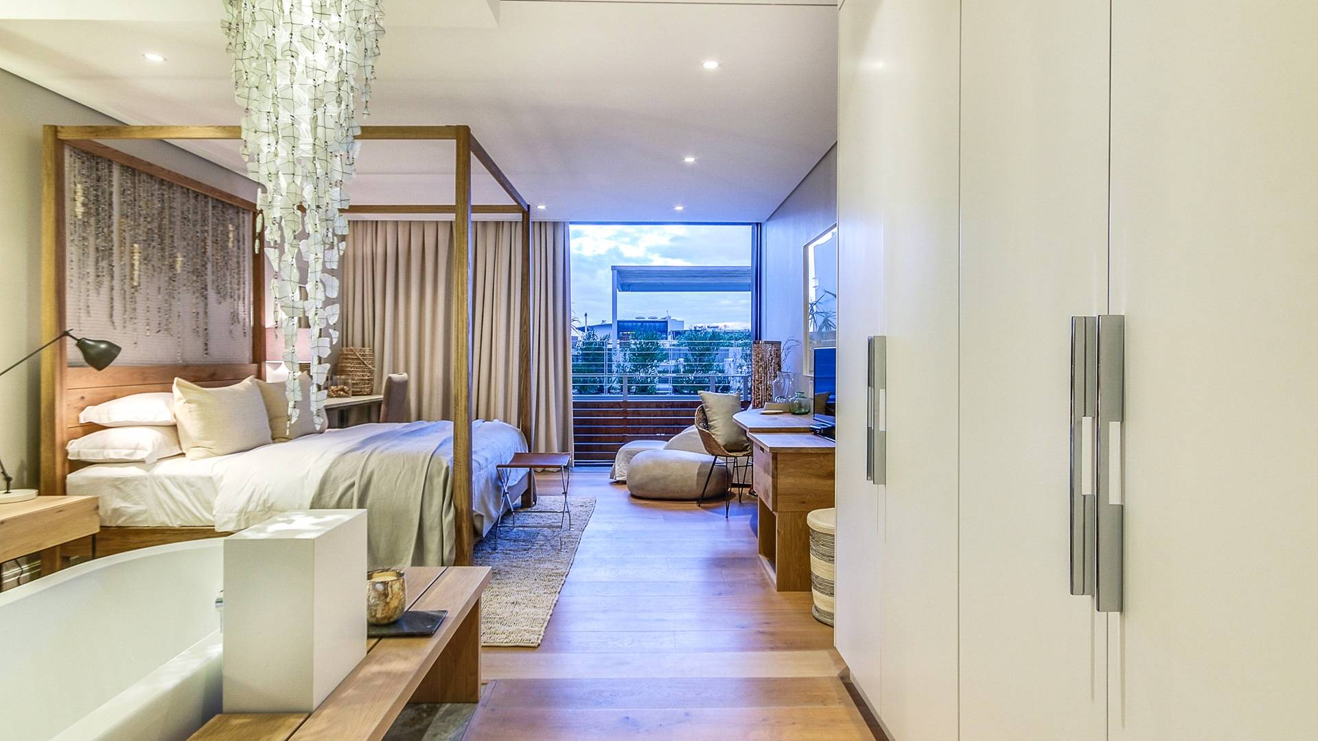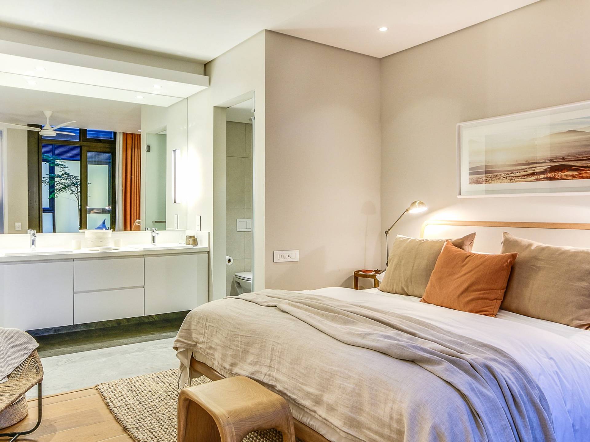 Επιπλωμένο με πολυτελή κομμάτια και διακοσμημένο σε ουδέτερους τόνους, το διαμέρισμα είναι ένα ήσυχο καταφύγιο ανάμεσα στην έντονη δραστηριότητα στη Μητέρα Πόλη.