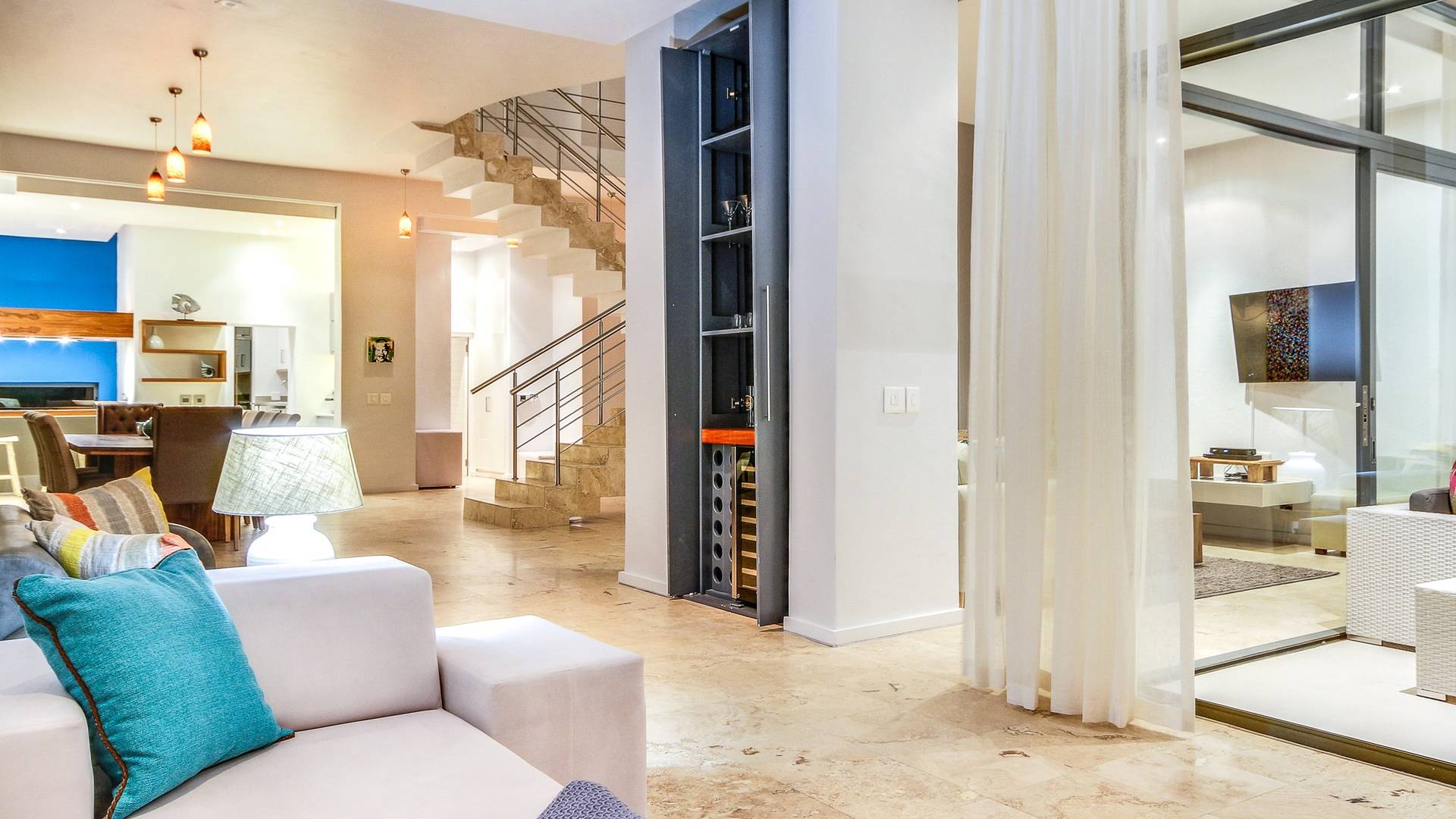 Το Harrier Place στο Κέιπ Τάουν έχει σχεδιαστεί για να αξιοποιεί στο έπακρο την τοποθεσία του, τα παράθυρα από το δάπεδο μέχρι την οροφή προσφέρουν θέα στη θάλασσα. Το κύριο καθιστικό διπλού όγκου είναι εντελώς ανοιχτό και είναι ο τέλειος χώρος για να φιλοξενήσετε ένα δείπνο ή για ολόκληρη την οικογένεια να έρθει μαζί.