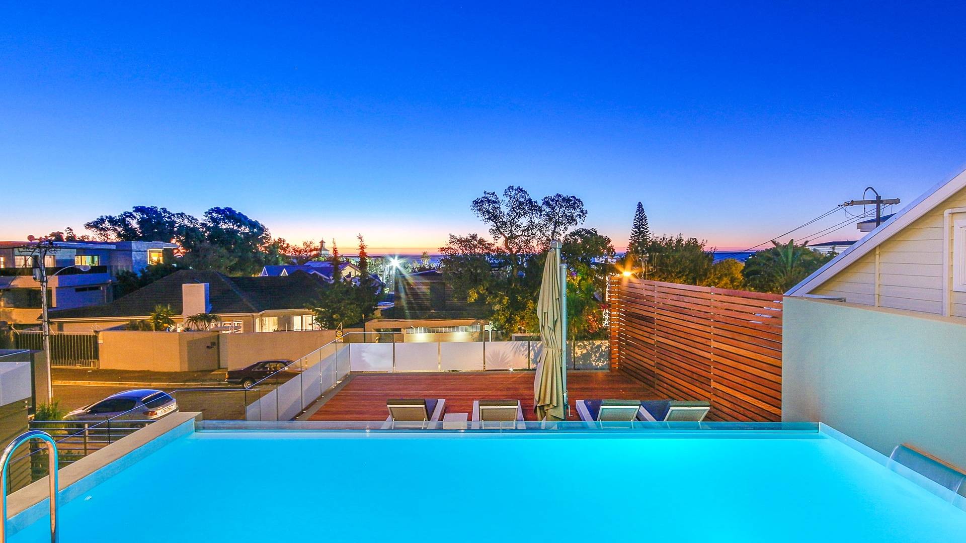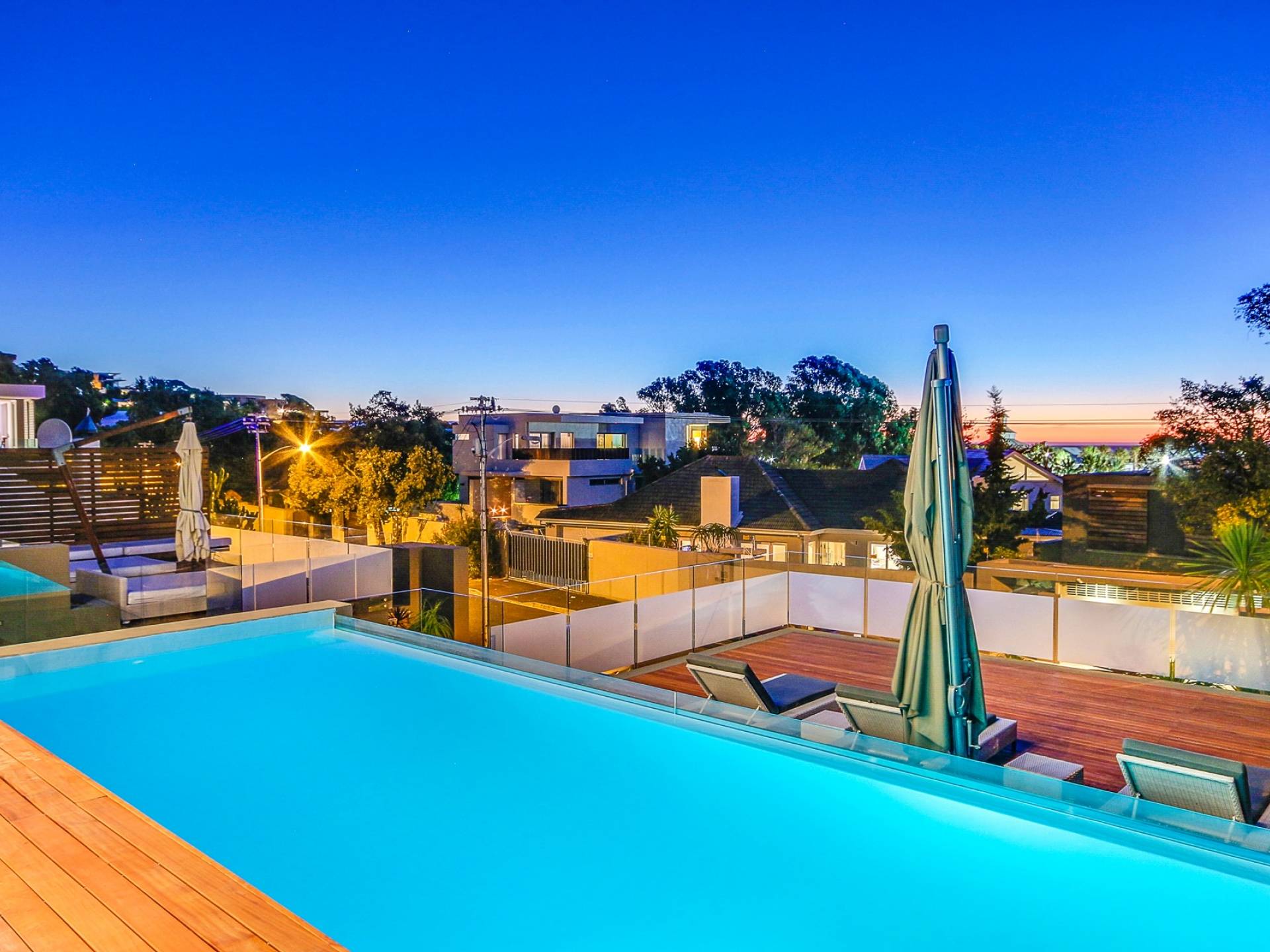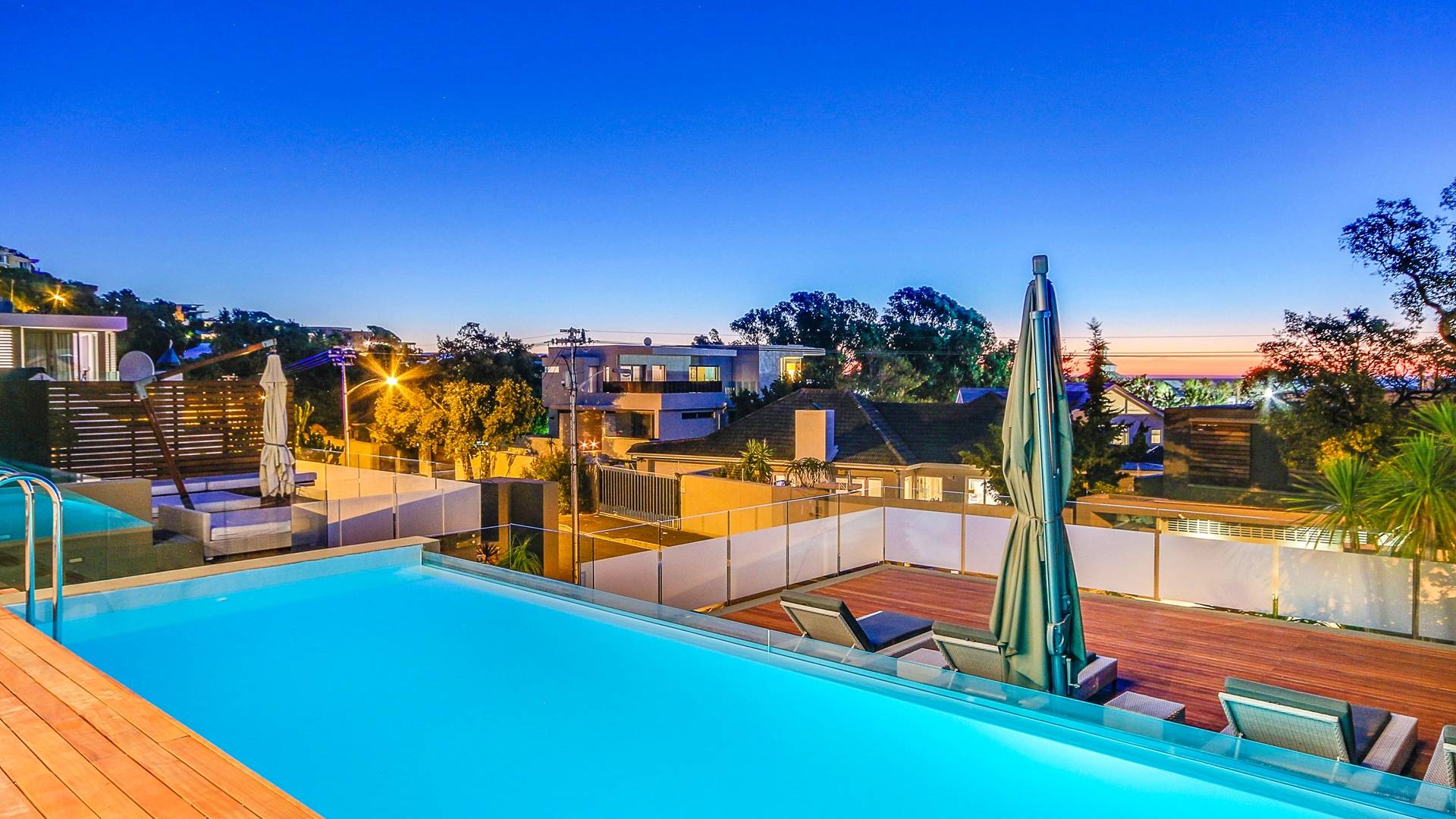 Το κύριο σαλόνι και τραπεζαρία αποτελείται από κουζίνα με δυνατότητα προετοιμασίας γευμάτων, επίσημη τραπεζαρία με χώρο για 10 άτομα, επίσημο σαλόνι και αίθουσα τηλεόρασης. Από το σαλόνι τηλεόρασης, μπορείτε να έχετε πρόσβαση στο αίθριο και στην πισίνα. Βγείτε έξω στο αίθριο όπου μπορείτε να απολαύσετε εκπληκτική θέα στον Ατλαντικό, να κολυμπήσετε στην αφρώδη πισίνα ή απλά να σηκώσετε τα πόδια σας και να χαλαρώσετε σε μια από τις ξαπλώστρες. Υπάρχει επίσης μπάρμπεκιου αερίου στο αίθριο και μπορεί να φιλοξενήσει 10 άτομα, ώστε να μπορείτε να δειπνήσετε στο ύπαιθρο. Το μεγάλο υπνοδωμάτιο διαθέτει κρεβάτι king size, ιδιωτικό μπάνιο, τηλεόραση με DSTV και συρόμενες πόρτες σε ιδιωτικό μπαλκόνι. Τα υπόλοιπα 3 υπνοδωμάτια έχουν διπλά κρεβάτια και ιδιωτικό μπάνιο. Αυτή η βίλα βρίσκεται σε μικρή απόσταση με τα πόδια από την παραλία Camps Bay, καθώς και από το διάσημο εστιατόριο Camps Bay.