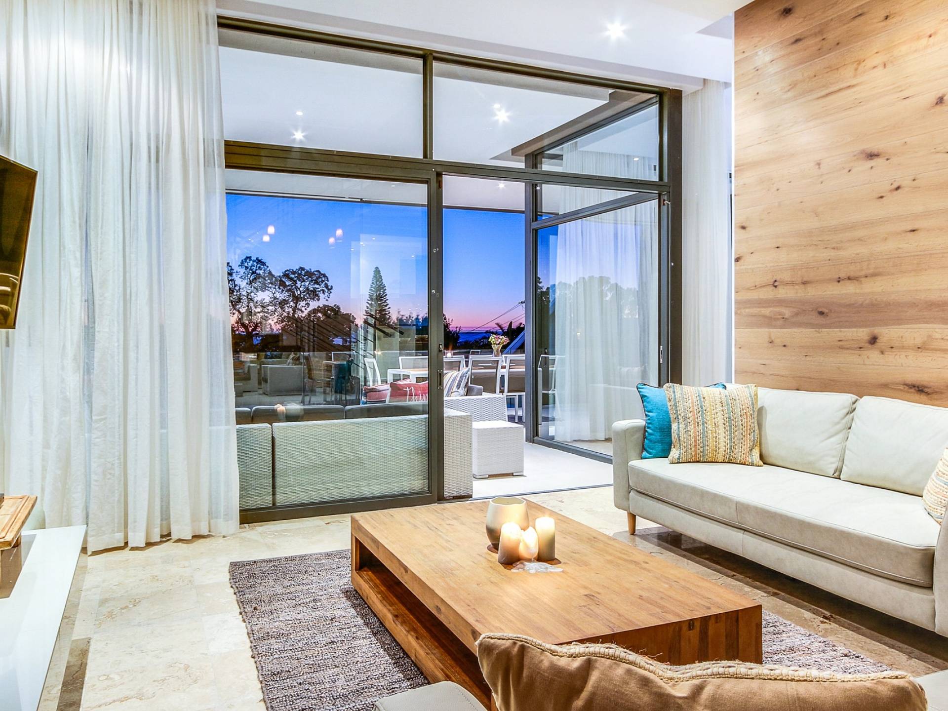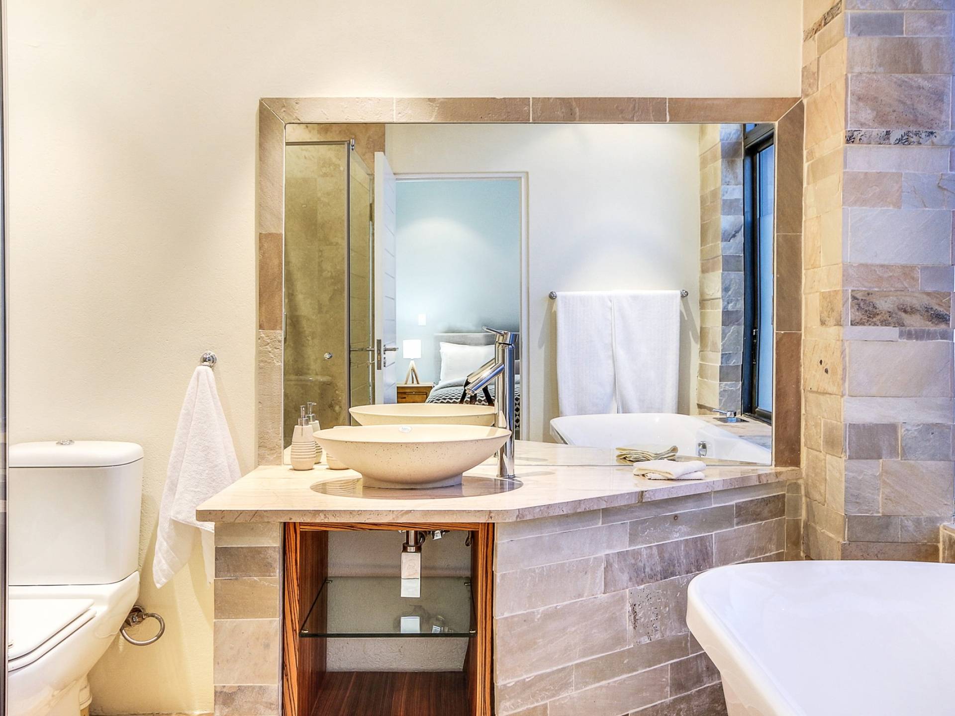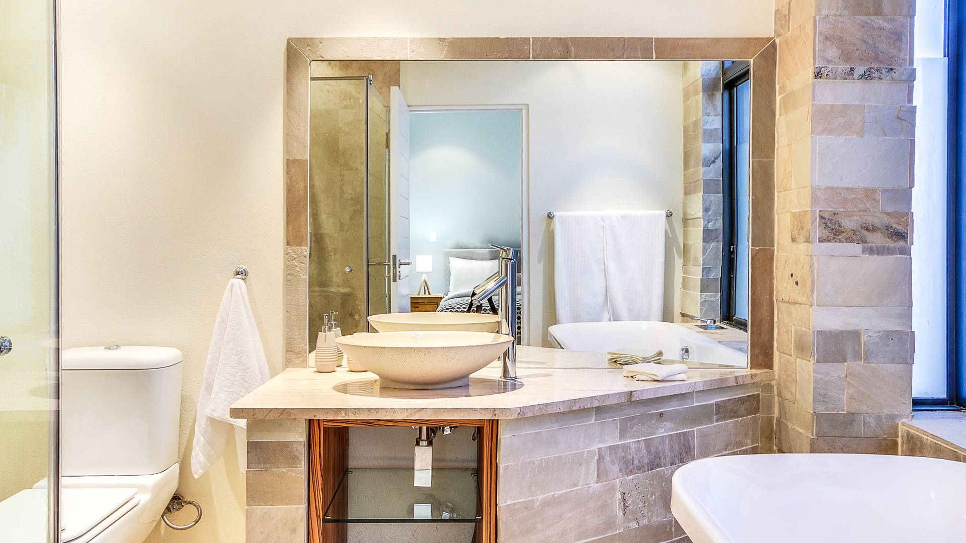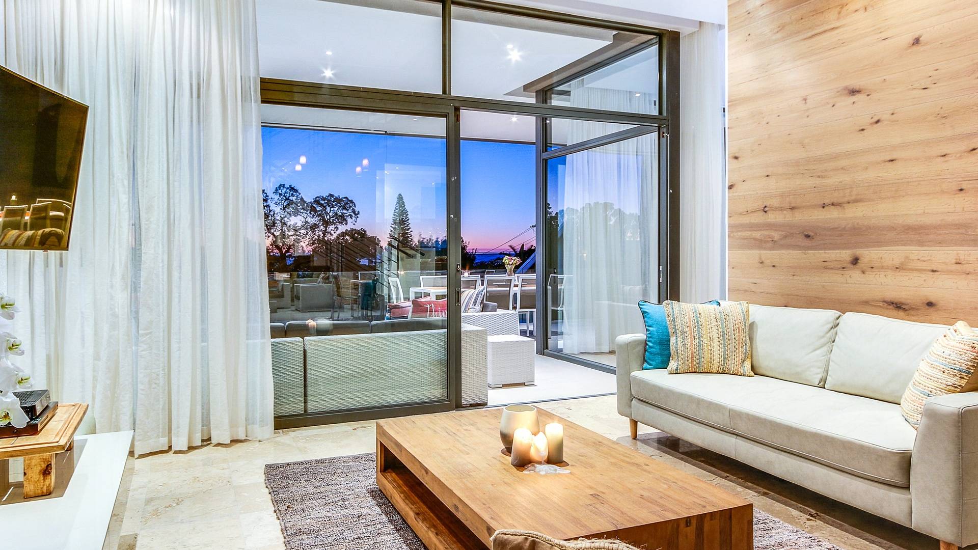 Το κύριο σαλόνι και τραπεζαρία αποτελείται από κουζίνα με δυνατότητα προετοιμασίας γευμάτων, επίσημη τραπεζαρία με χώρο για 10 άτομα, επίσημο σαλόνι και αίθουσα τηλεόρασης. Από το σαλόνι τηλεόρασης, μπορείτε να έχετε πρόσβαση στο αίθριο και στην πισίνα. Βγείτε έξω στο αίθριο όπου μπορείτε να απολαύσετε εκπληκτική θέα στον Ατλαντικό, να κολυμπήσετε στην αφρώδη πισίνα ή απλά να σηκώσετε τα πόδια σας και να χαλαρώσετε σε μια από τις ξαπλώστρες. Υπάρχει επίσης μπάρμπεκιου αερίου στο αίθριο και μπορεί να φιλοξενήσει 10 άτομα, ώστε να μπορείτε να δειπνήσετε στο ύπαιθρο. Το μεγάλο υπνοδωμάτιο διαθέτει κρεβάτι king size, ιδιωτικό μπάνιο, τηλεόραση με DSTV και συρόμενες πόρτες σε ιδιωτικό μπαλκόνι. Τα υπόλοιπα 3 υπνοδωμάτια έχουν διπλά κρεβάτια και ιδιωτικό μπάνιο. Αυτή η βίλα βρίσκεται σε μικρή απόσταση με τα πόδια από την παραλία Camps Bay, καθώς και από το διάσημο εστιατόριο Camps Bay.