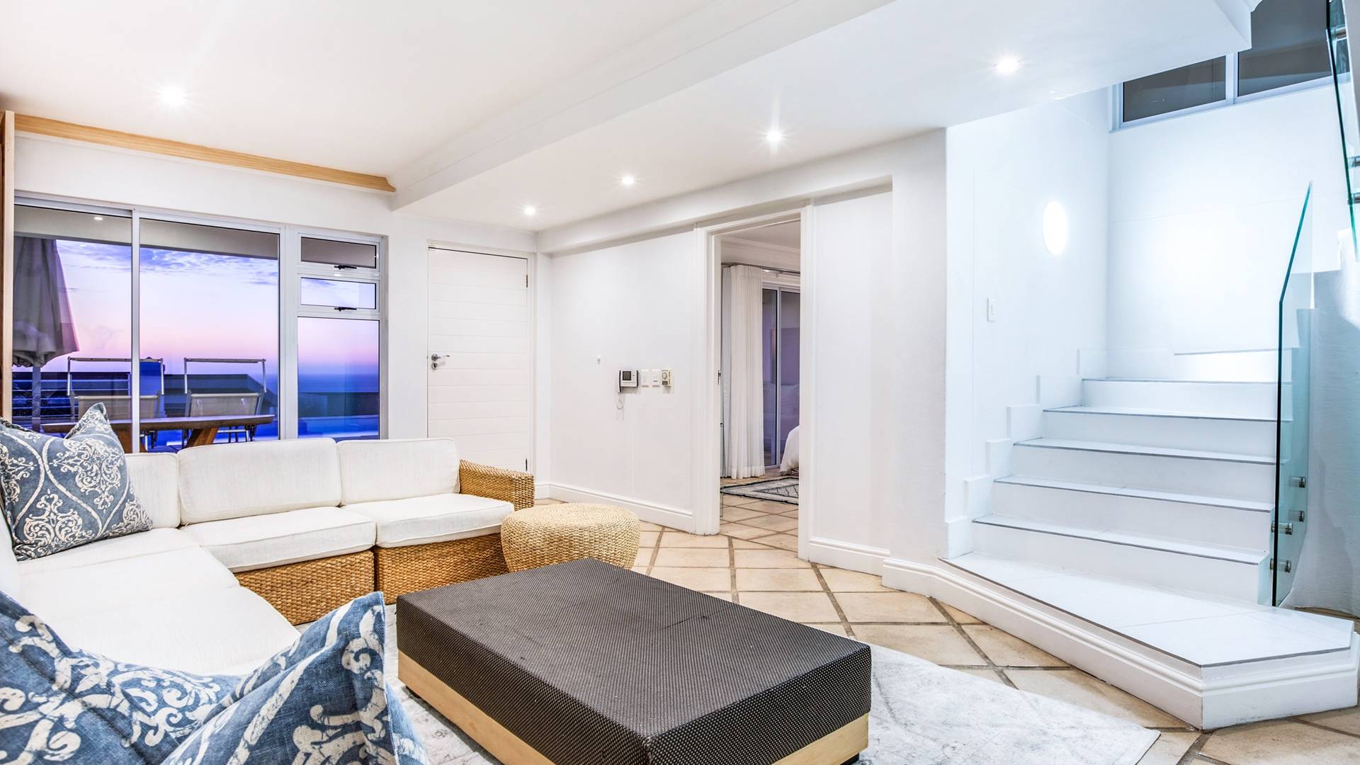 Η βίλα που βρίσκεται στο Camps Bay είναι ένα κατοικημένο προάστιο της παραλίας, σε απόσταση δέκα λεπτών με το αυτοκίνητο από το κέντρο της πόλης. Έχει εκπληκτική θέα στη θάλασσα και το βουνό και μια μεγάλη ποικιλία από εστιατόρια, μπαρ και καταστήματα. Στο μεσαίο επίπεδο βρίσκεται ο κύριος ενιαίος χώρος καθιστικού και τραπεζαρίας που οδηγεί σε ένα περιτριγυρισμένο μπαλκόνι με υπέροχη θέα στον Ατλαντικό Ωκεανό. Η κουζίνα είναι μοντέρνα και ανοιχτή. Υπάρχει επίσης αίθουσα τηλεόρασης σε αυτό το επίπεδο. Στον τελευταίο όροφο, θα βρείτε το κύριο ιδιωτικό μπάνιο και 2 επιπλέον υπνοδωμάτια που μοιράζονται ένα μπάνιο. Ο πλοίαρχος έχει πρόσβαση σε μπαλκόνι και υπέροχη θέα στη θάλασσα.