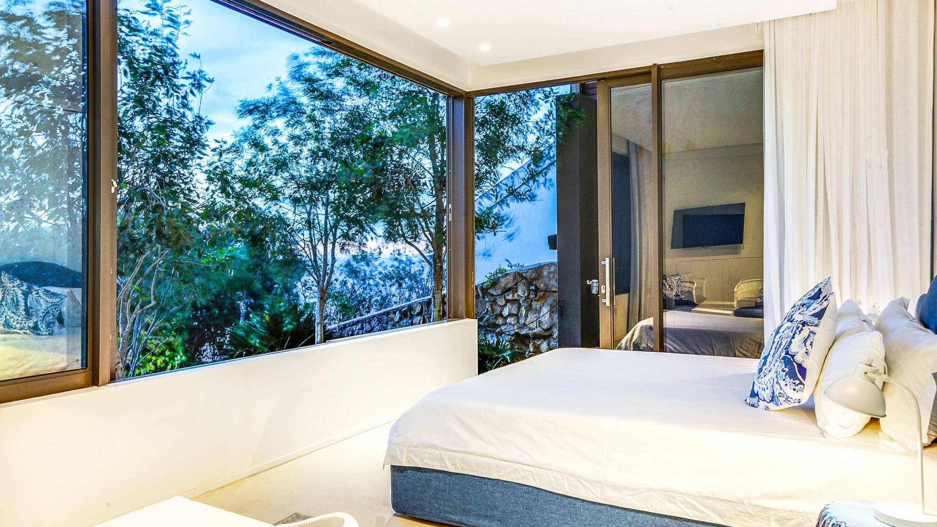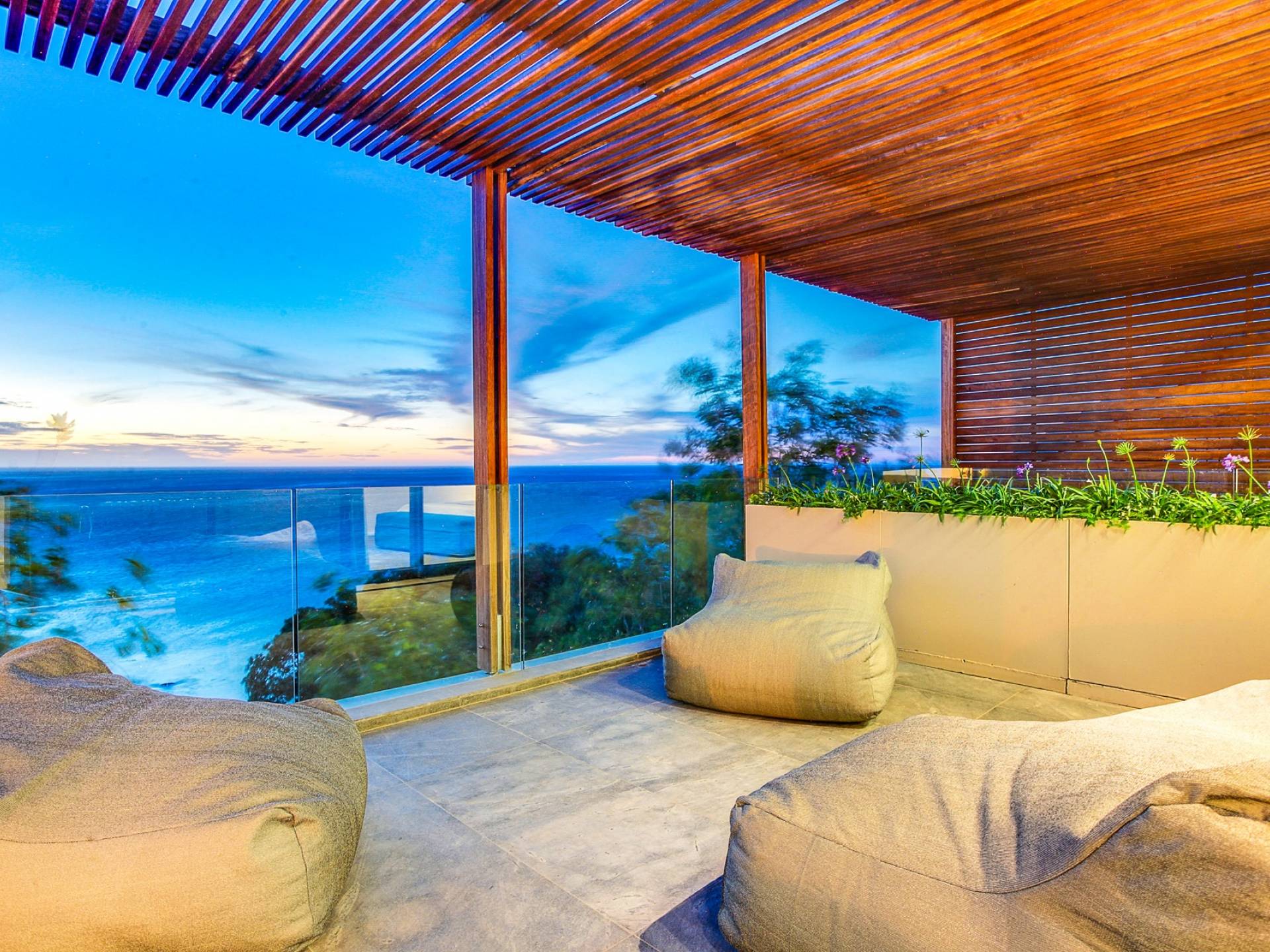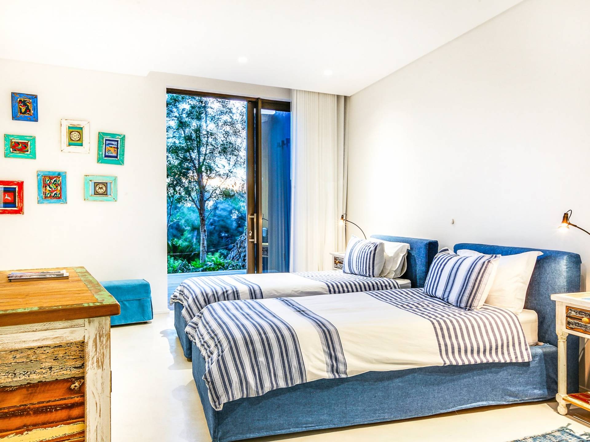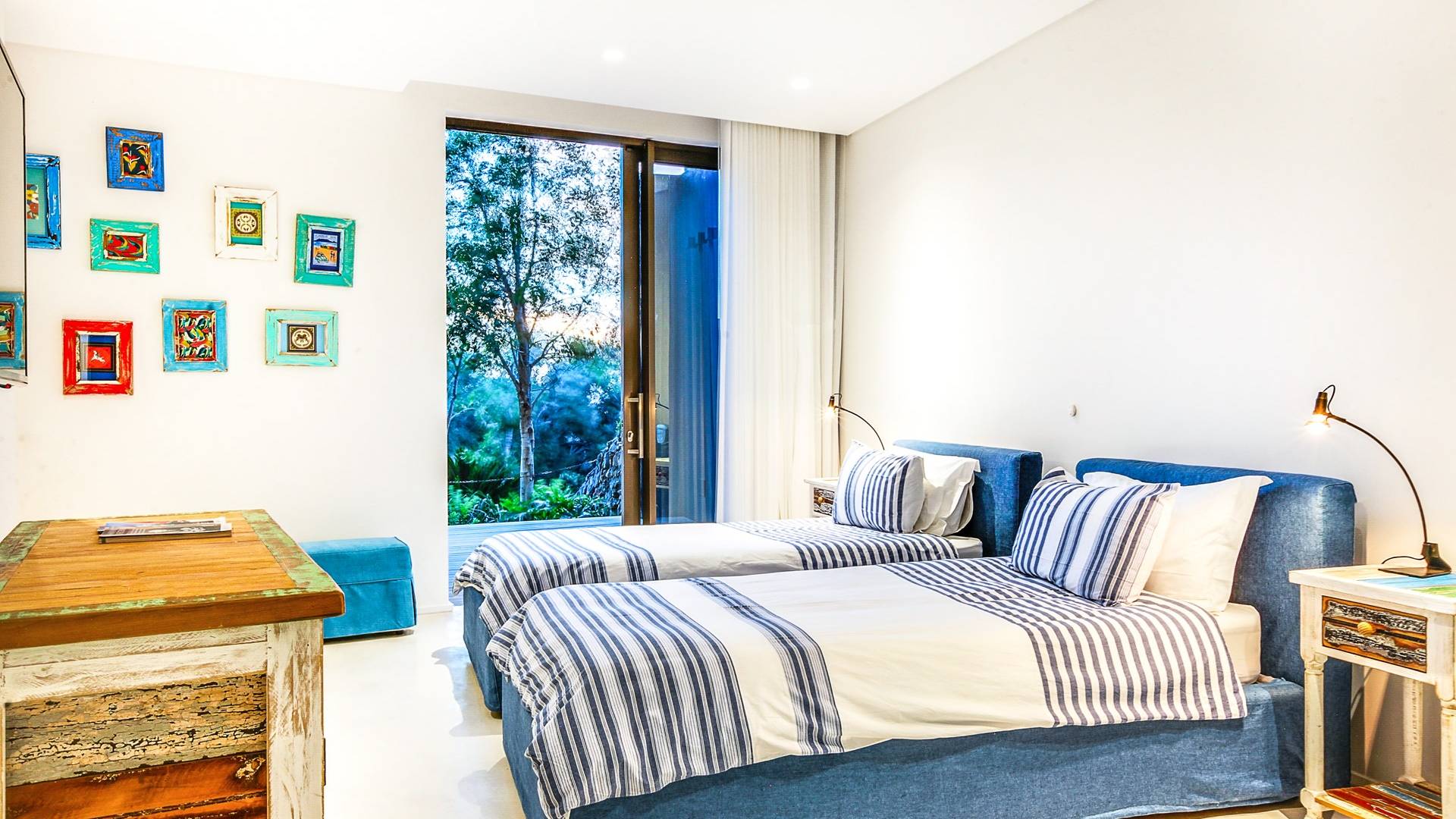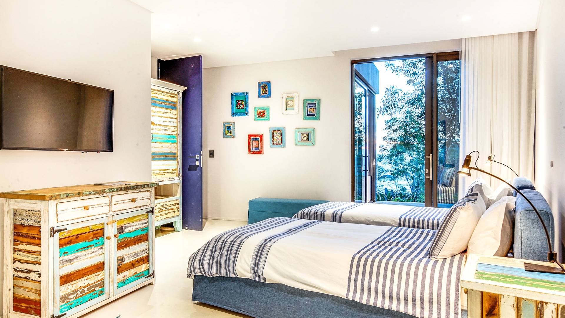 Στο κάτω επίπεδο του ακινήτου βρίσκονται τα άλλα δύο υπνοδωμάτια με ιδιωτικό μπάνιο. Και τα δύο αυτά υπνοδωμάτια διαθέτουν τηλεόραση, κλιματισμό και πρόσβαση σε ένα μικρό κατάστρωμα. Το τρίτο υπνοδωμάτιο έχει δύο μονά κρεβάτια και έναν καναπέ-κρεβάτι. Αυτή η ιδιοκτησία είναι ο τέλειος προορισμός διακοπών με όμορφα διακοσμημένους χώρους σε μπλε και πράσινες αποχρώσεις, πολύ φως και θέα στον ωκεανό.