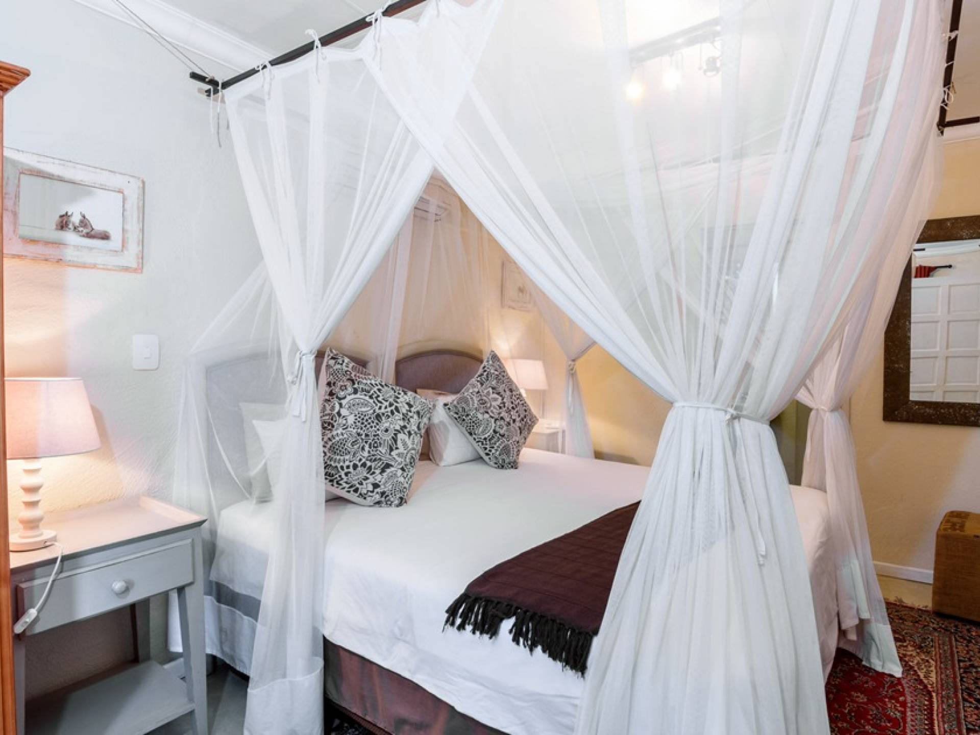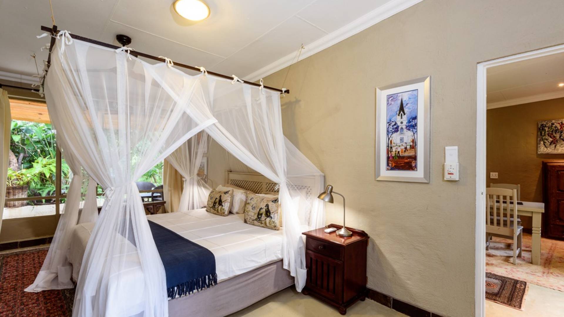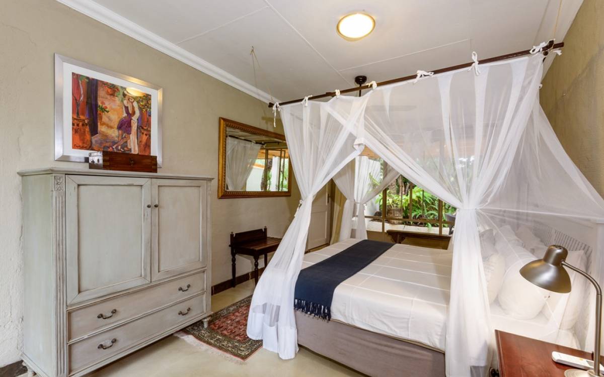 Πολύχρωμες εκτυπώσεις από τον μοναδικά Νοτιοαφρικανό καλλιτέχνη Portchie διακοσμούν τους τοίχους του κυρίως υπνοδωματίου, δημιουργώντας μια πληθωρική διάθεση. Ένα ελκυστικό king-size κρεβάτι βρίσκεται ανάμεσα σε μεγάλα παράθυρα εκατέρωθεν του υπνοδωματίου, τα οποία έχουν θέα τόσο στον μπροστινό όσο και στον πίσω κήπο. Ένα ευρύχωρο μπάνιο με ντους εσωτερικού χώρου ολοκληρώνει το κυρίως υπνοδωμάτιο, το οποίο ανοίγει σε έναν διάδρομο που οδηγεί και ένα μικρό υπνοδωμάτιο 15 τετραγωνικών μέτρων με μινιμαλιστικό ιδιωτικό μπάνιο.