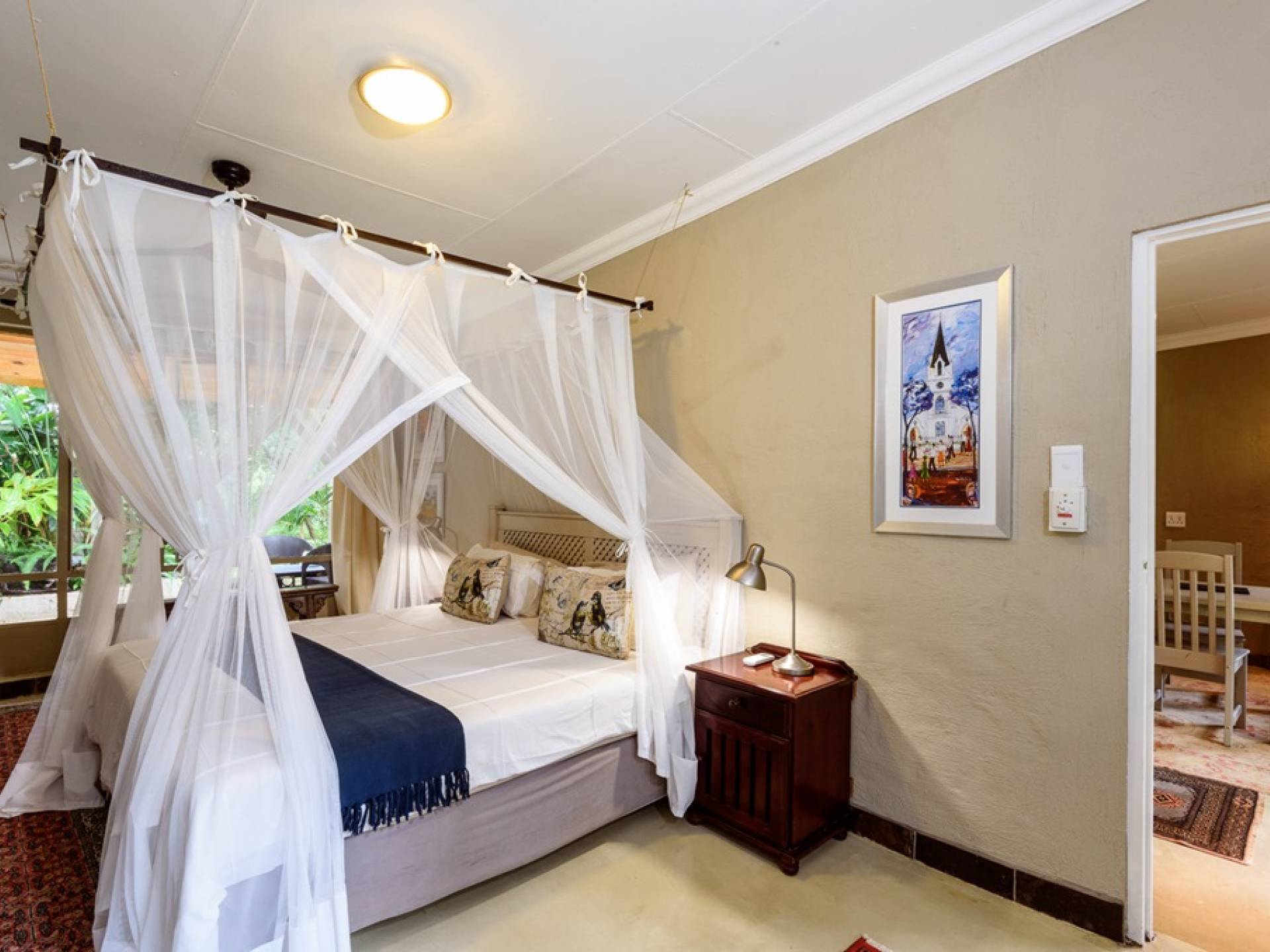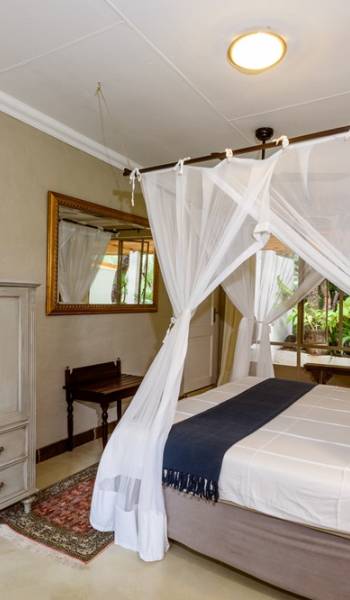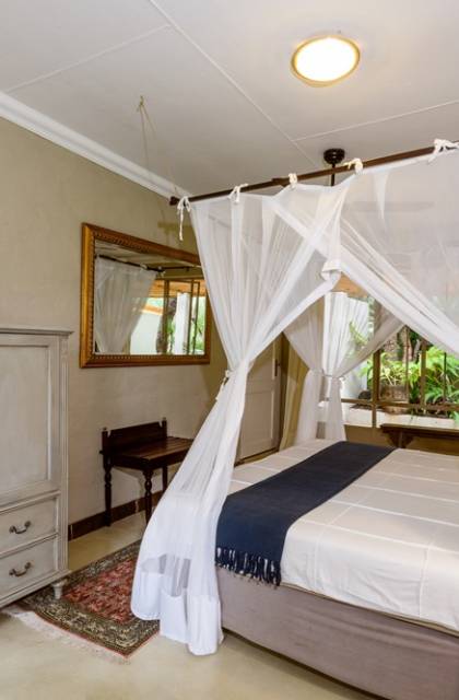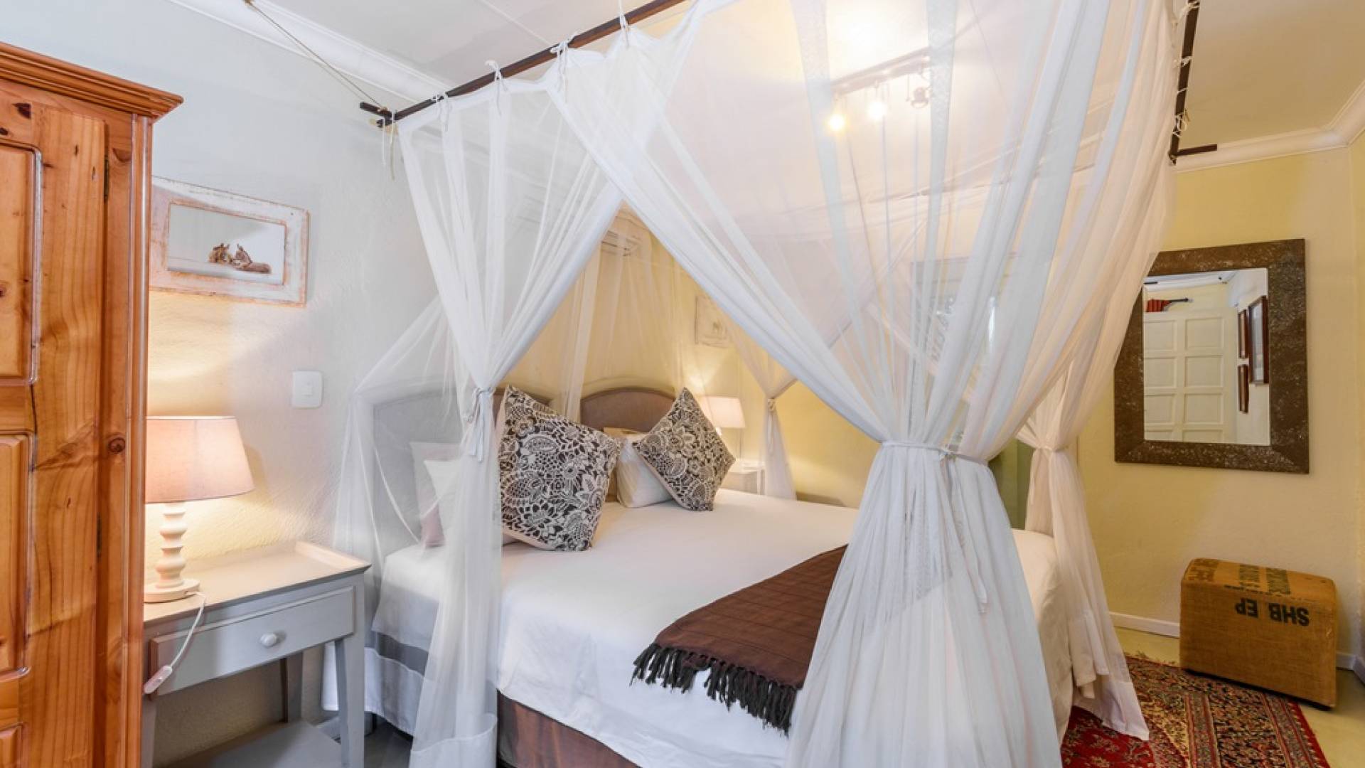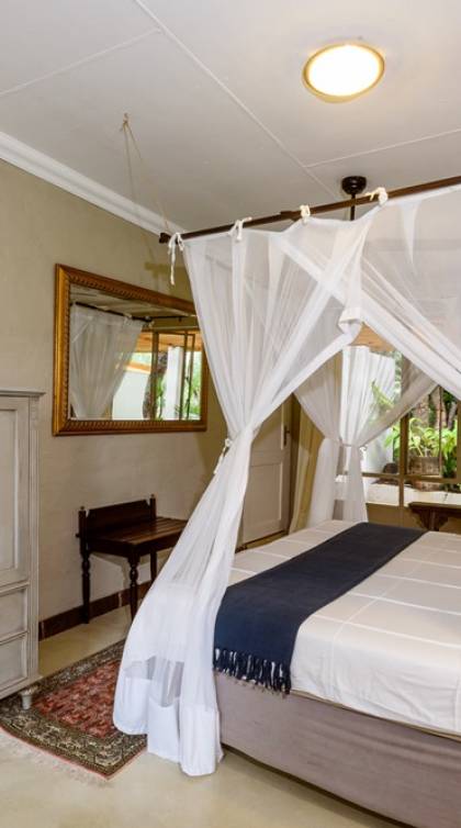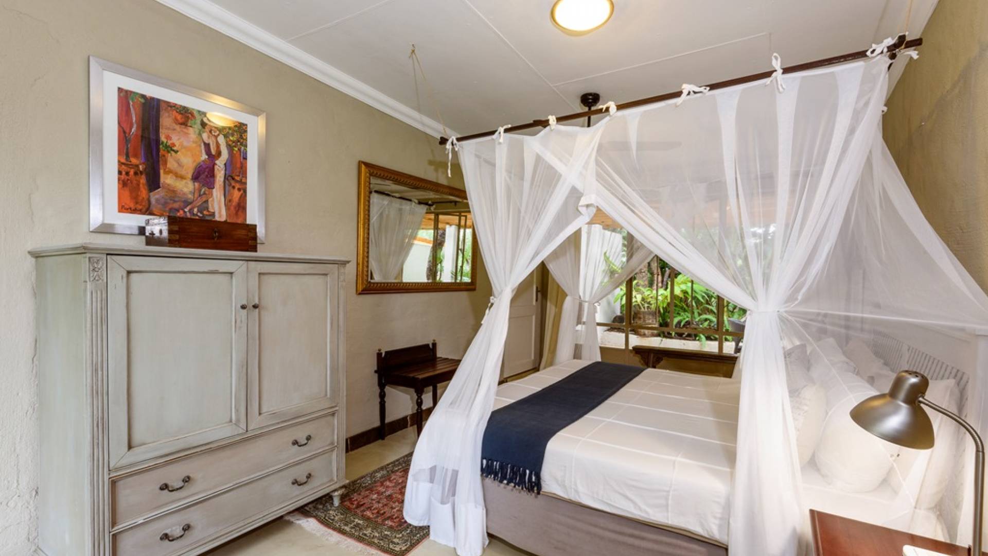 Πολύχρωμες εκτυπώσεις από τον μοναδικά Νοτιοαφρικανό καλλιτέχνη Portchie διακοσμούν τους τοίχους του κυρίως υπνοδωματίου, δημιουργώντας μια πληθωρική διάθεση. Ένα ελκυστικό king-size κρεβάτι βρίσκεται ανάμεσα σε μεγάλα παράθυρα εκατέρωθεν του υπνοδωματίου, τα οποία έχουν θέα τόσο στον μπροστινό όσο και στον πίσω κήπο. Ένα ευρύχωρο μπάνιο με ντους εσωτερικού χώρου ολοκληρώνει το κυρίως υπνοδωμάτιο, το οποίο ανοίγει σε έναν διάδρομο που οδηγεί και ένα μικρό υπνοδωμάτιο 15 τετραγωνικών μέτρων με μινιμαλιστικό ιδιωτικό μπάνιο.