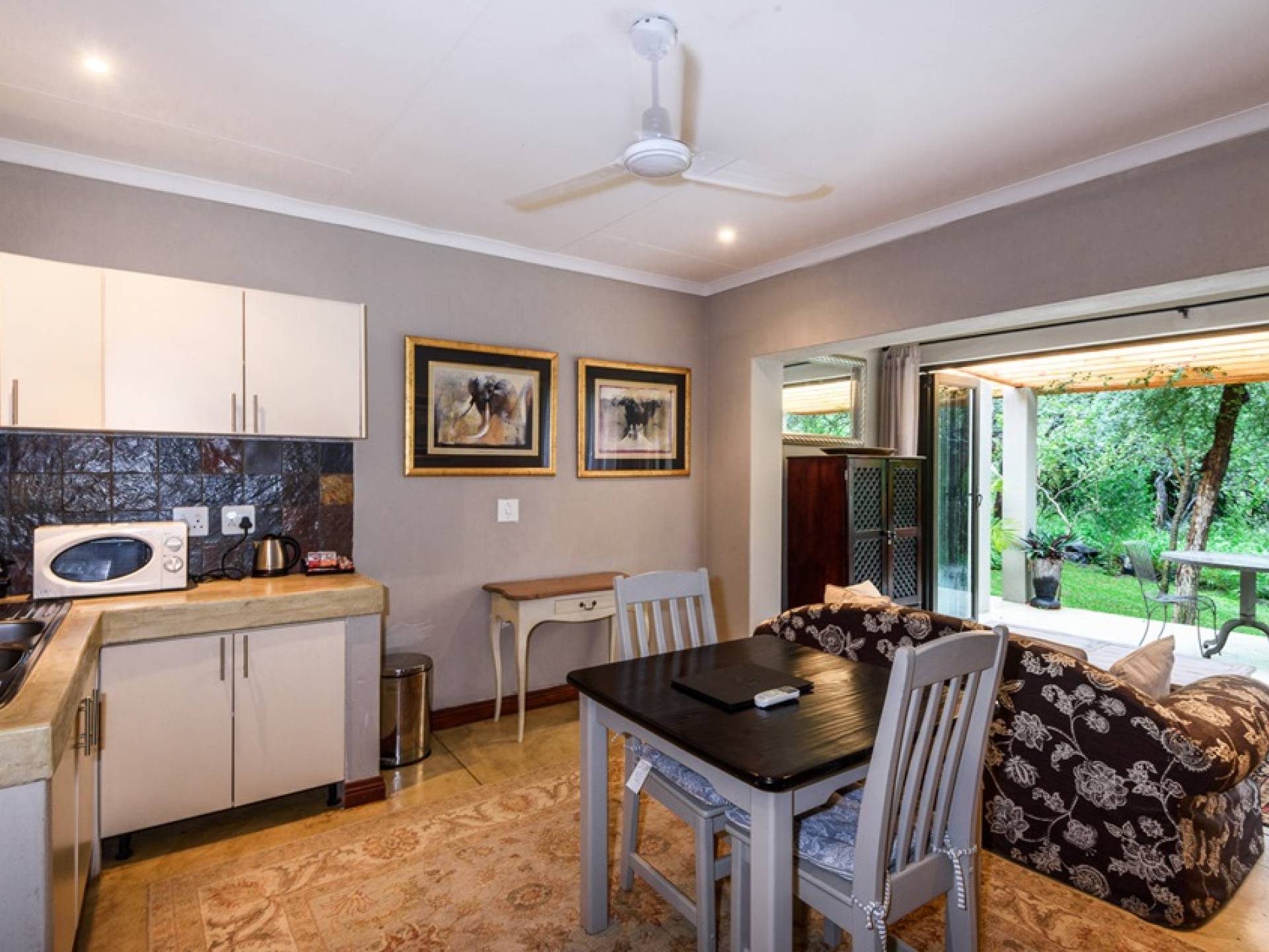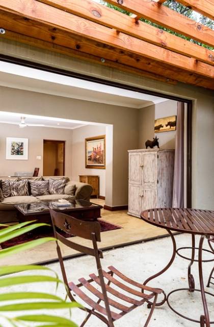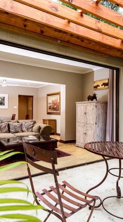 Στολισμένο με έργα τέχνης από τον θρυλικό καλλιτέχνη φυσικής ιστορίας. Keith Joubert, αυτή η σουίτα κήπου 45 τετραγωνικών μέτρων προσφέρει ένα ευρύχωρο και άνετο διαμέρισμα, ιδιωτικό μπάνιο και κλιματιζόμενο υπνοδωμάτιο, που οδηγεί σε μια μικρή κουζίνα και άνετο καθιστικό με DSTV. Αυτό το δωμάτιο ανοίγει σε μια βεράντα στον κήπο με θέα στο μυστηριώδες αφρικανικό Bushveld.
