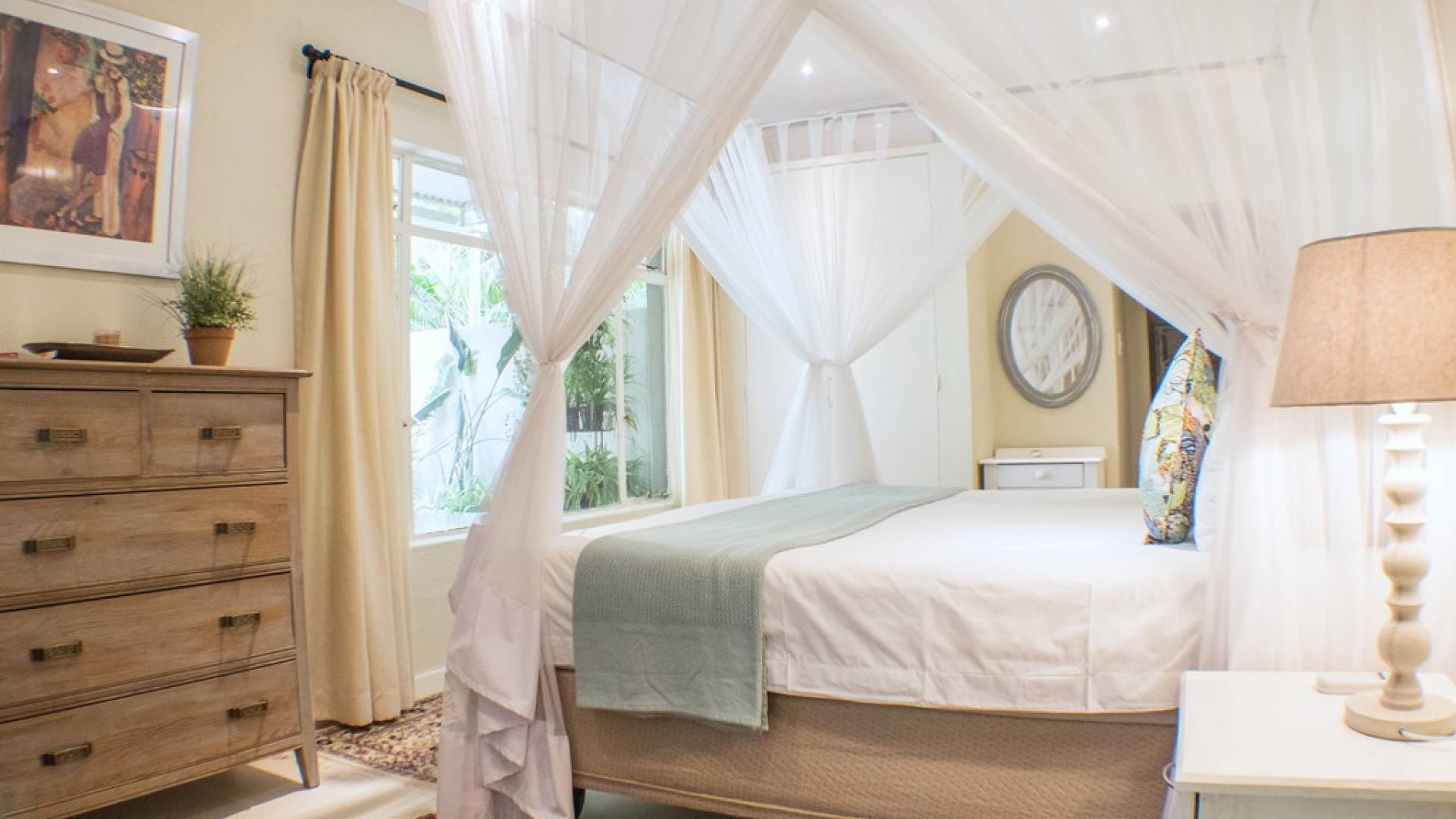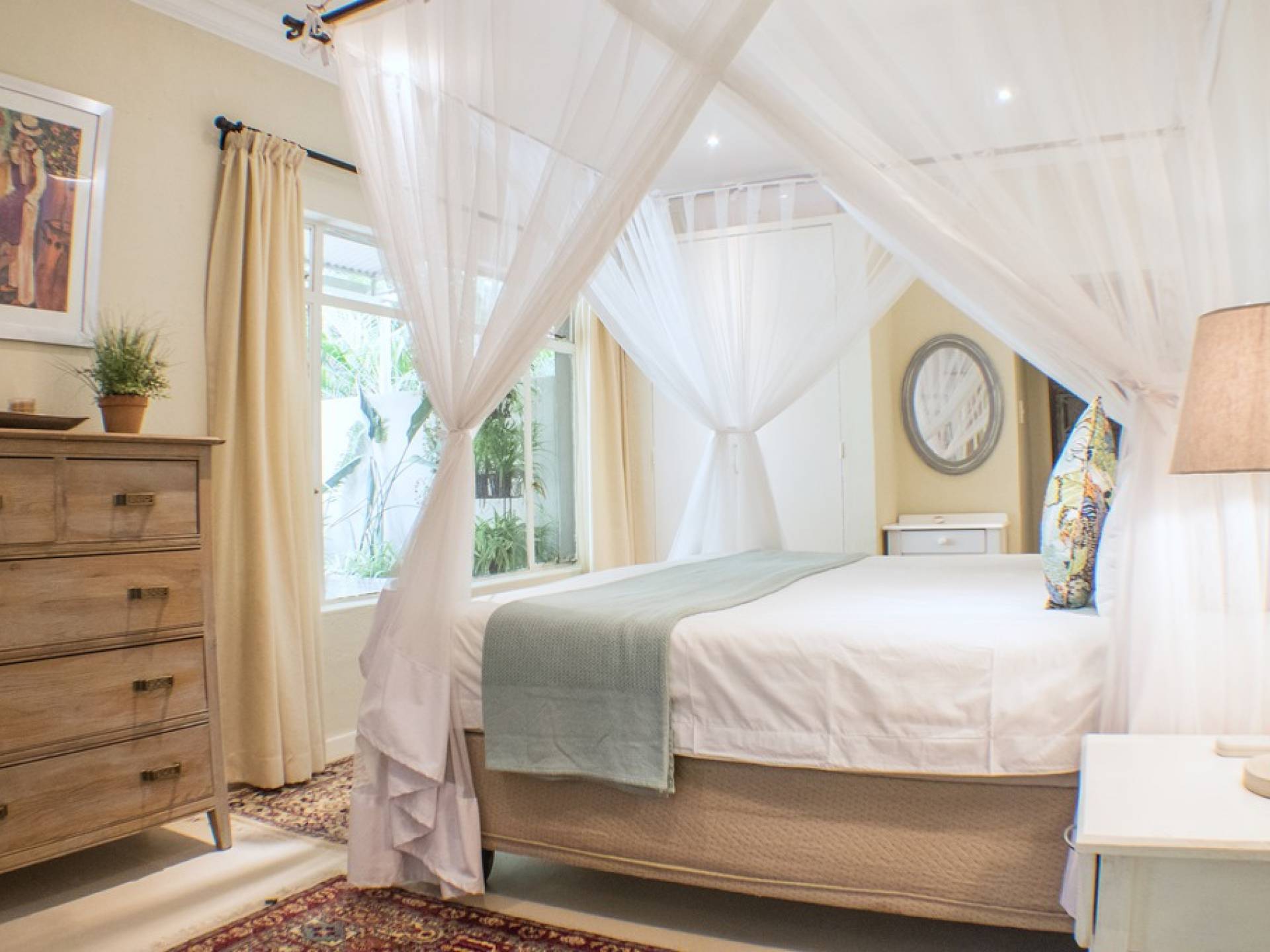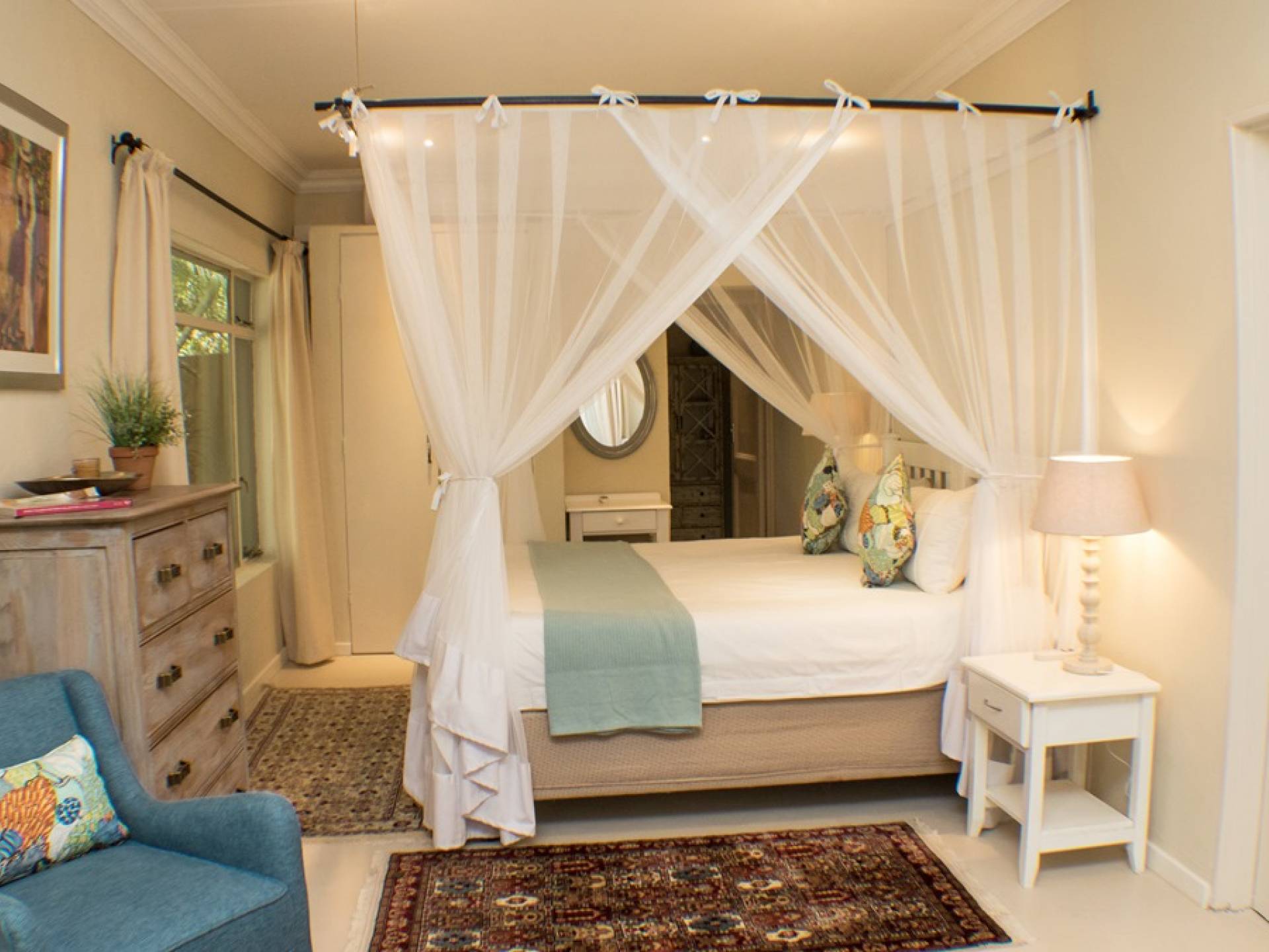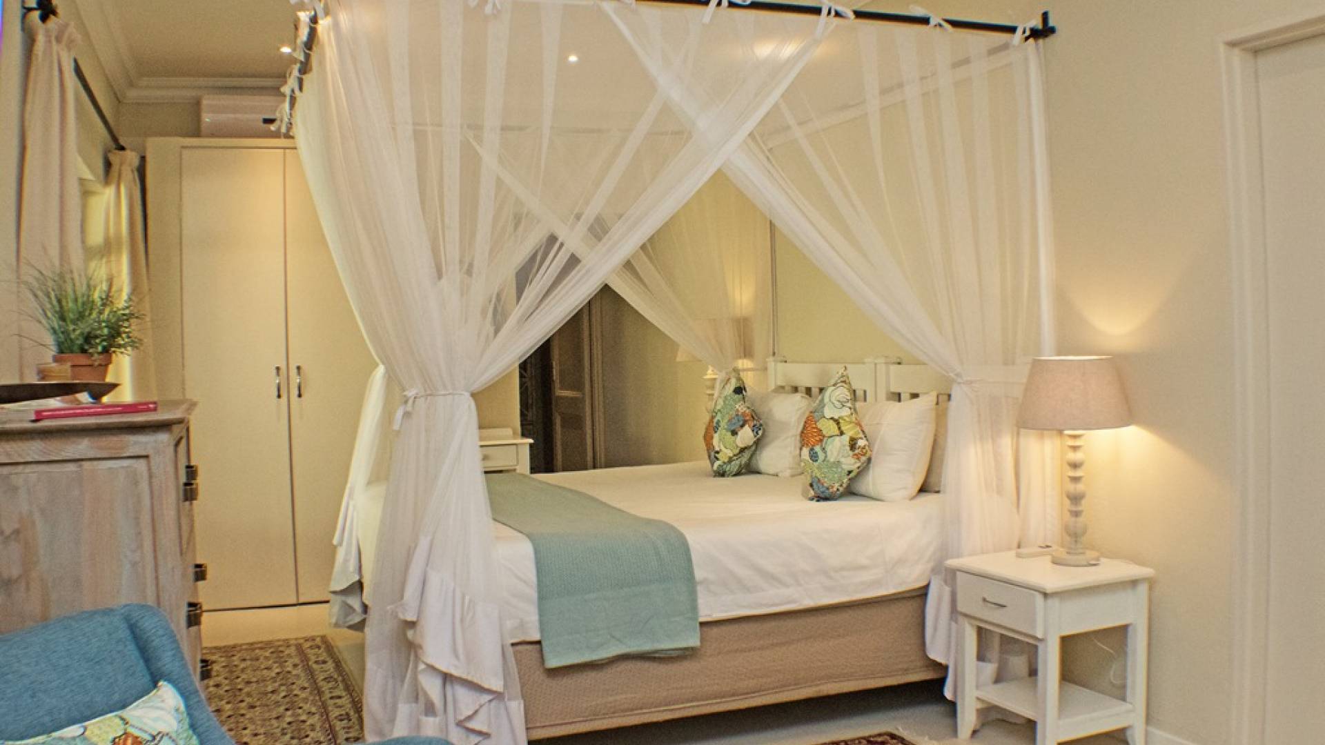 Το Garden Suite VI είναι μια όμορφη και ευρύχωρη σουίτα, μία από τις πιο πρόσφατες επιλογές διαμονής στο Khaya Ndlovu. Δροσερά μπλουζ και λουλούδια θέτουν την τάση σε αυτήν την κομψή νέα προσθήκη. Το υπνοδωμάτιο ανοίγει σε μια αυλή, ένα ιδιωτικό μπάνιο με όλες τις ανέσεις. Μια σουίτα είναι μια εξαιρετική επιλογή αν θέλετε να χαλαρώσετε με απόλυτη ιδιωτικότητα. Σελ