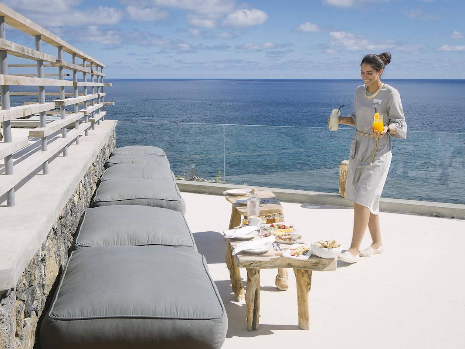 Το μπλε άπειρο που απλώνεται από τα παράθυρα των τεσσάρων Ocean Suites δεν είναι παρά υπέροχο. Βρίσκονται στον πρώτο όροφο και προσφέρουν την καλύτερη θέα από το Λευκό. Με έκταση από 35 έως 42 τετραγωνικά μέτρα, οι Ocean Suites προσφέρουν κρεμαστά μπαλκόνια και παράθυρα ανάγνωσης πάνω από τη θάλασσα - μια πραγματική απόλαυση για περισυλλογή και χαλάρωση.