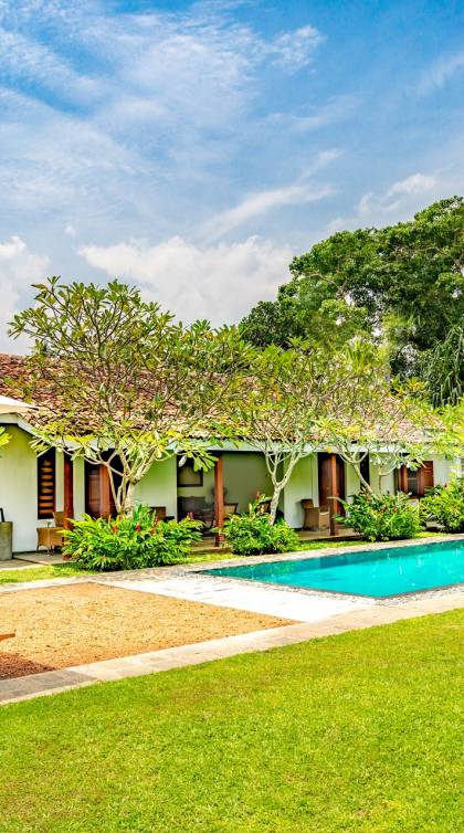 Με μια απομονωμένη παραλία, δύο πισίνες και την αποκλειστική χρήση των Taru Villas – The Rock Villa και οι καταπράσινοι, περιποιημένοι κήποι της, σας περιμένουν οι διακοπές σας στη Bentota. Κάντε κράτηση για την ιδιωτική βίλα για την ομαδική σας απόδραση με δεκαέξι στενούς φίλους ή την οικογένειά σας.