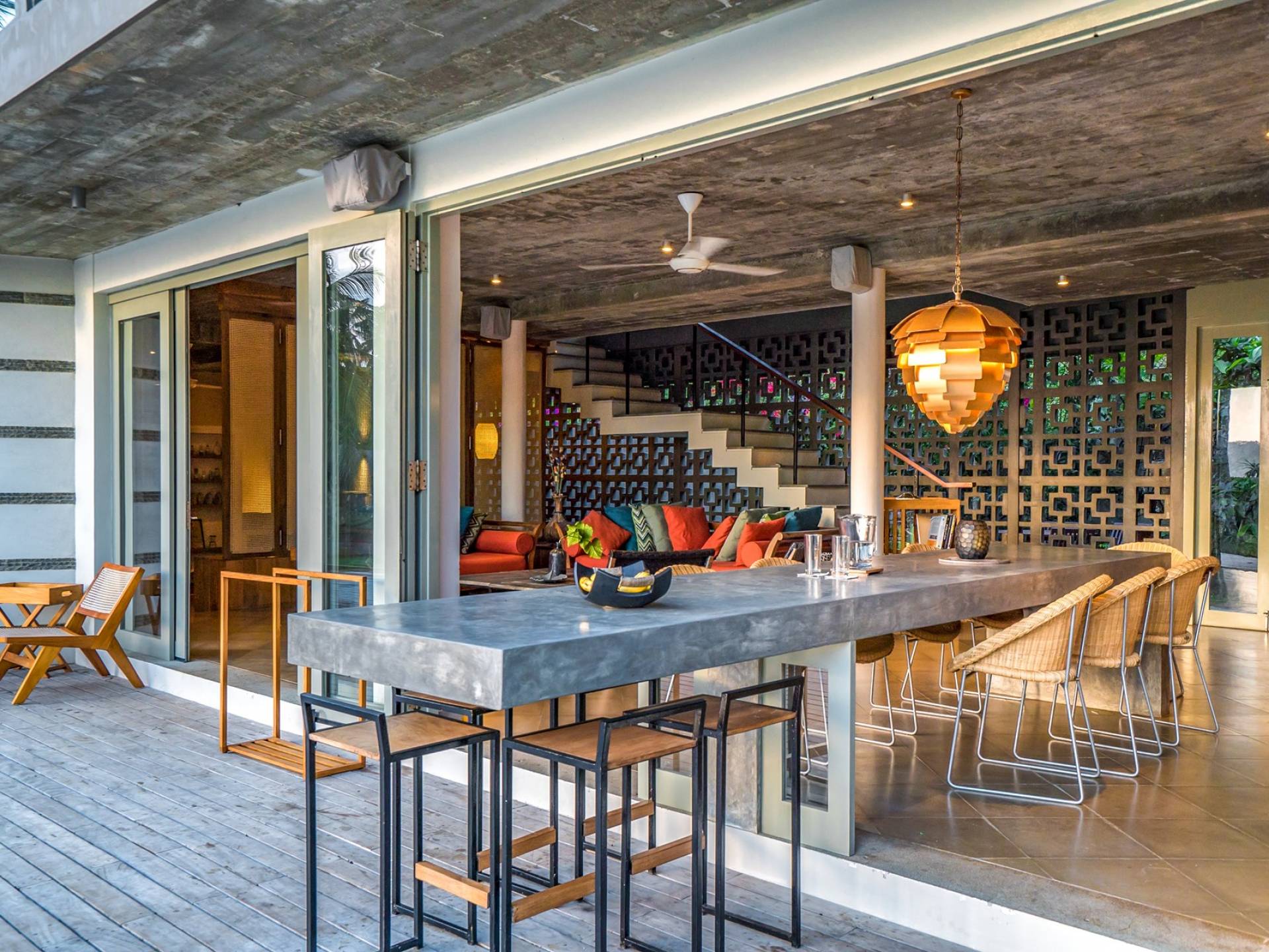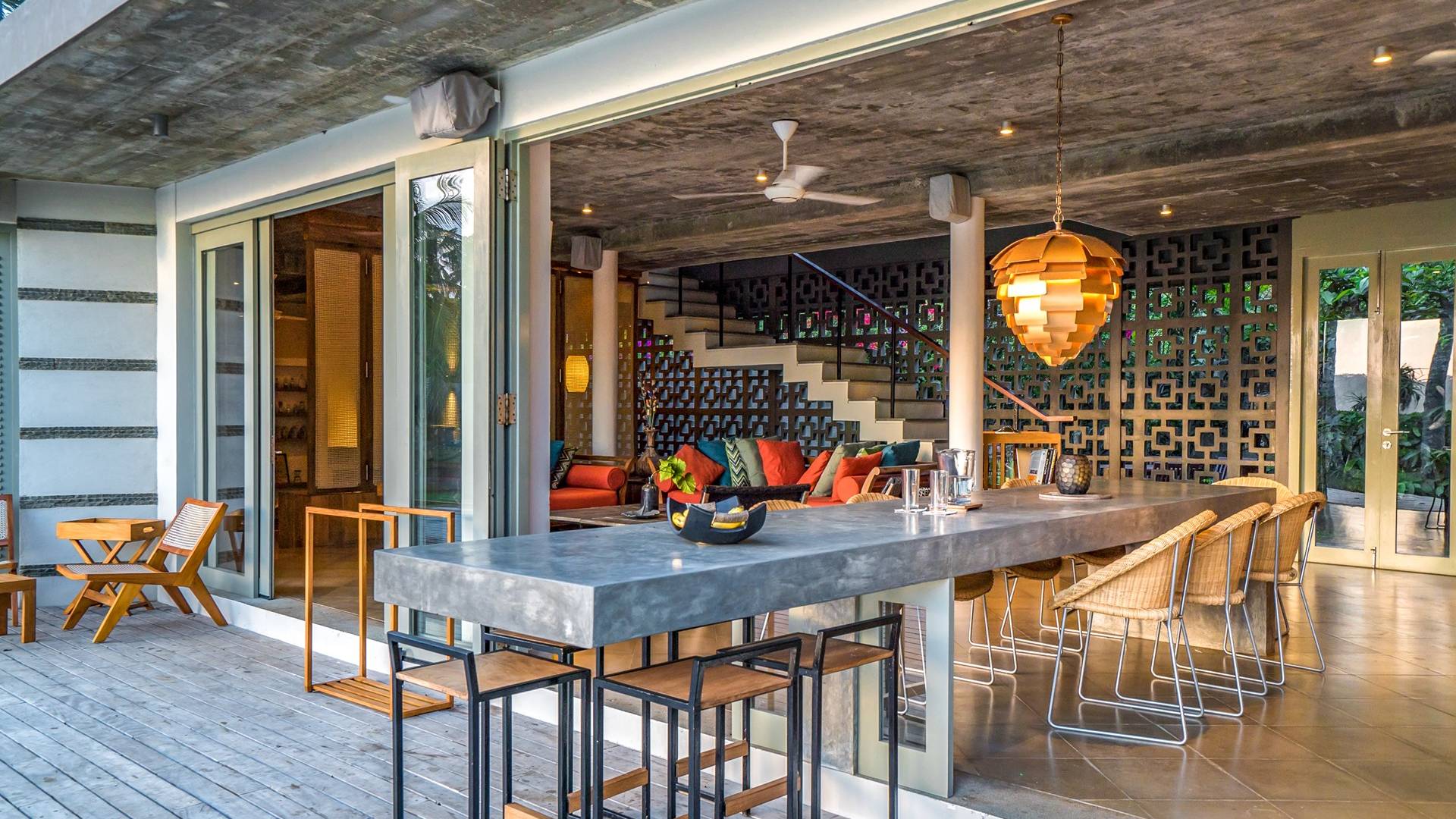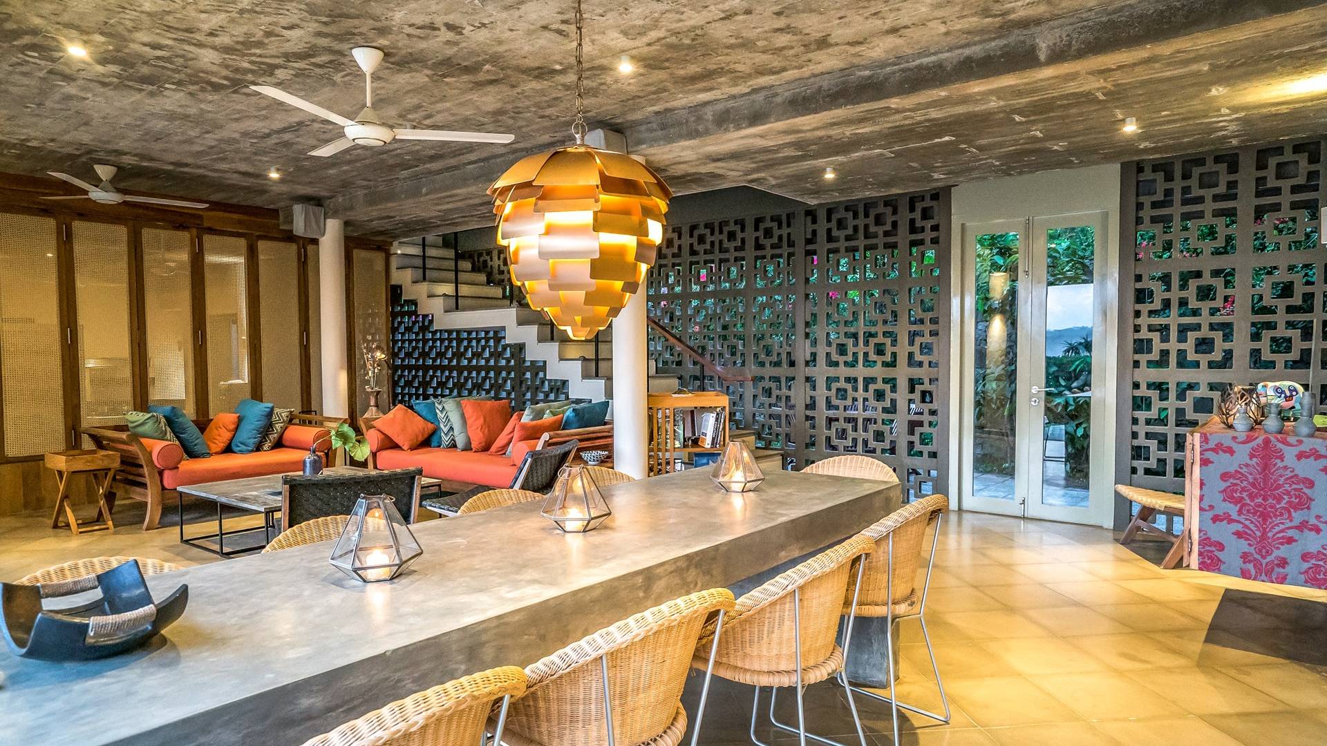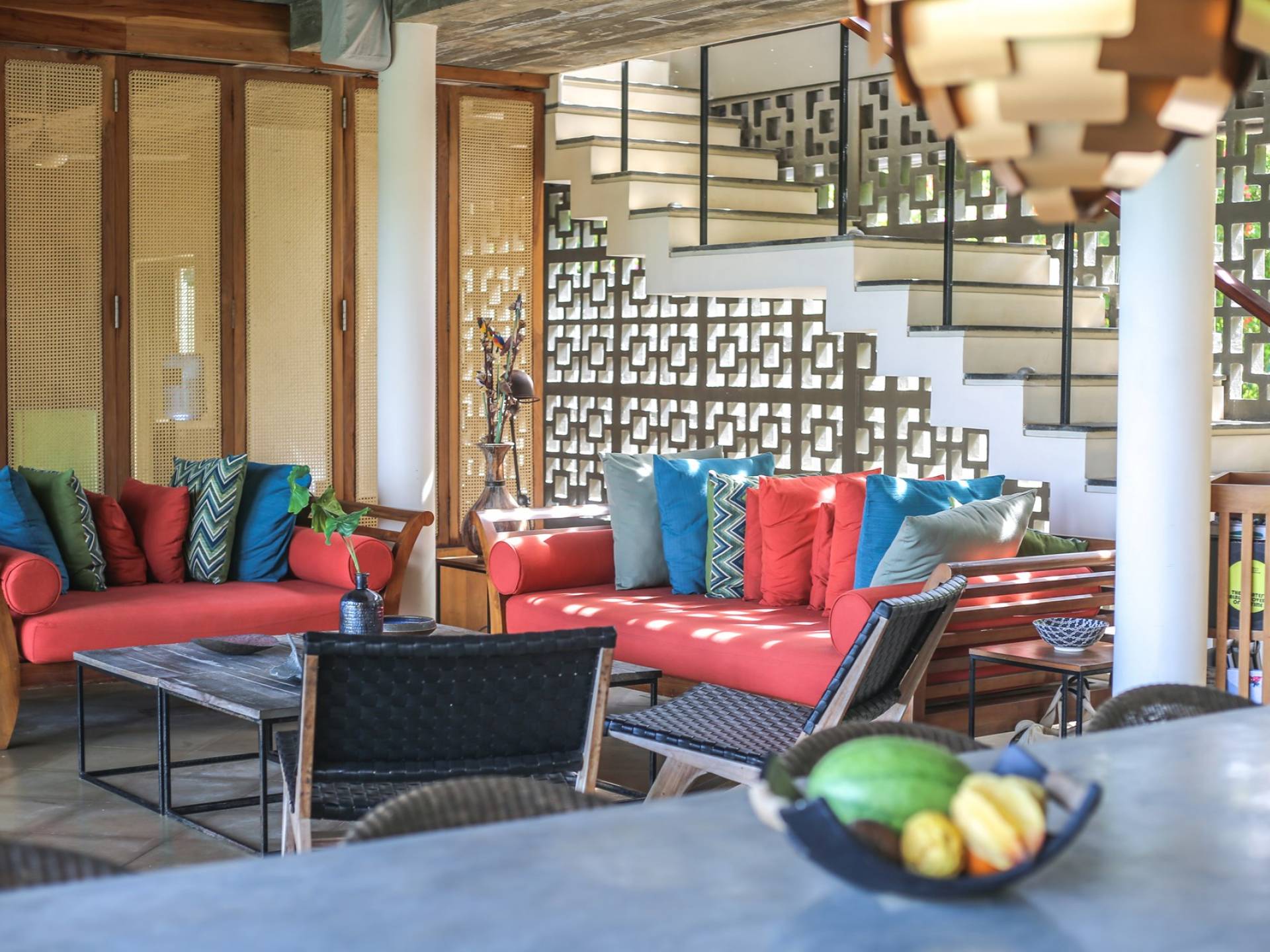 Πλαισιώνεται από το άπειρο άκρο της πισίνας και έναν καταπράσινο τροπικό κήπο. Σε αυτό το σαλόνι, μπορείτε να δειπνήσετε για έως και 14 άτομα στο κεντρικό τραπέζι και οι επισκέπτες μπορούν να χαλαρώσουν στους τεράστιους καναπέδες με θέα στον ωκεανό. Ολόκληρο το σαλόνι ανοίγει στο κατάστρωμα και την πισίνα. Στο ισόγειο, θα βρείτε ένα υπνοδωμάτιο με ιδιωτικό μπάνιο δίπλα στο σαλόνι, με θέα στον ωκεανό και συρόμενες πόρτες που ανοίγουν στο κατάστρωμα της πισίνας. Από το σαλόνι, μια σκάλα σας οδηγεί στο διάδρομο του πρώτου ορόφου με πρόσβαση σε τέσσερα υπνοδωμάτια, όλα με κλιματισμό και ιδιωτικά μπαλκόνια με ανενόχλητη θέα στον ωκεανό.