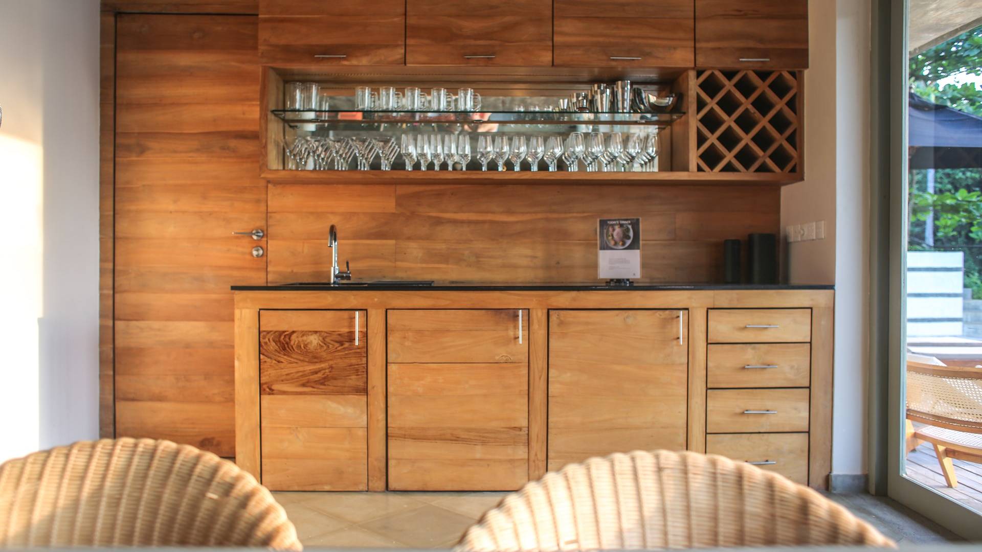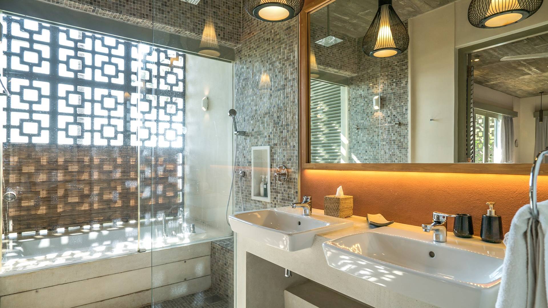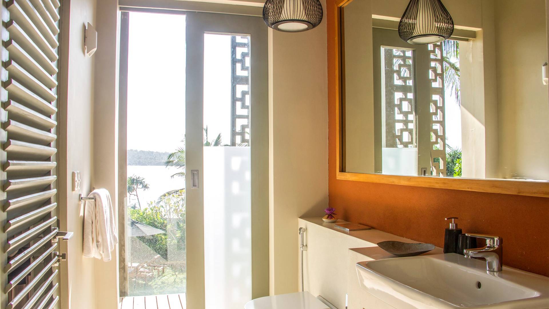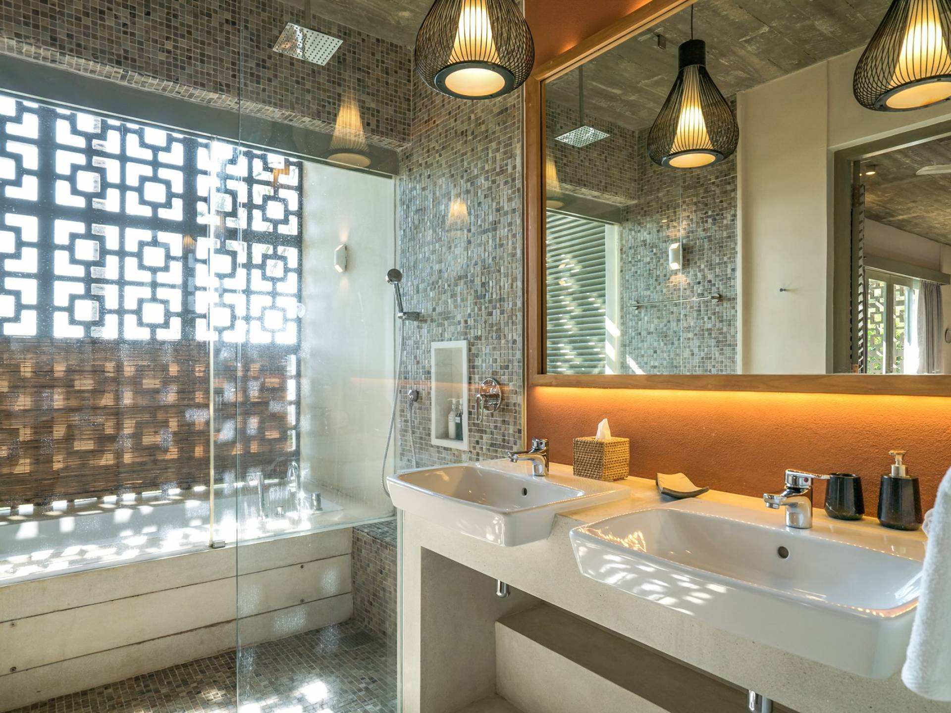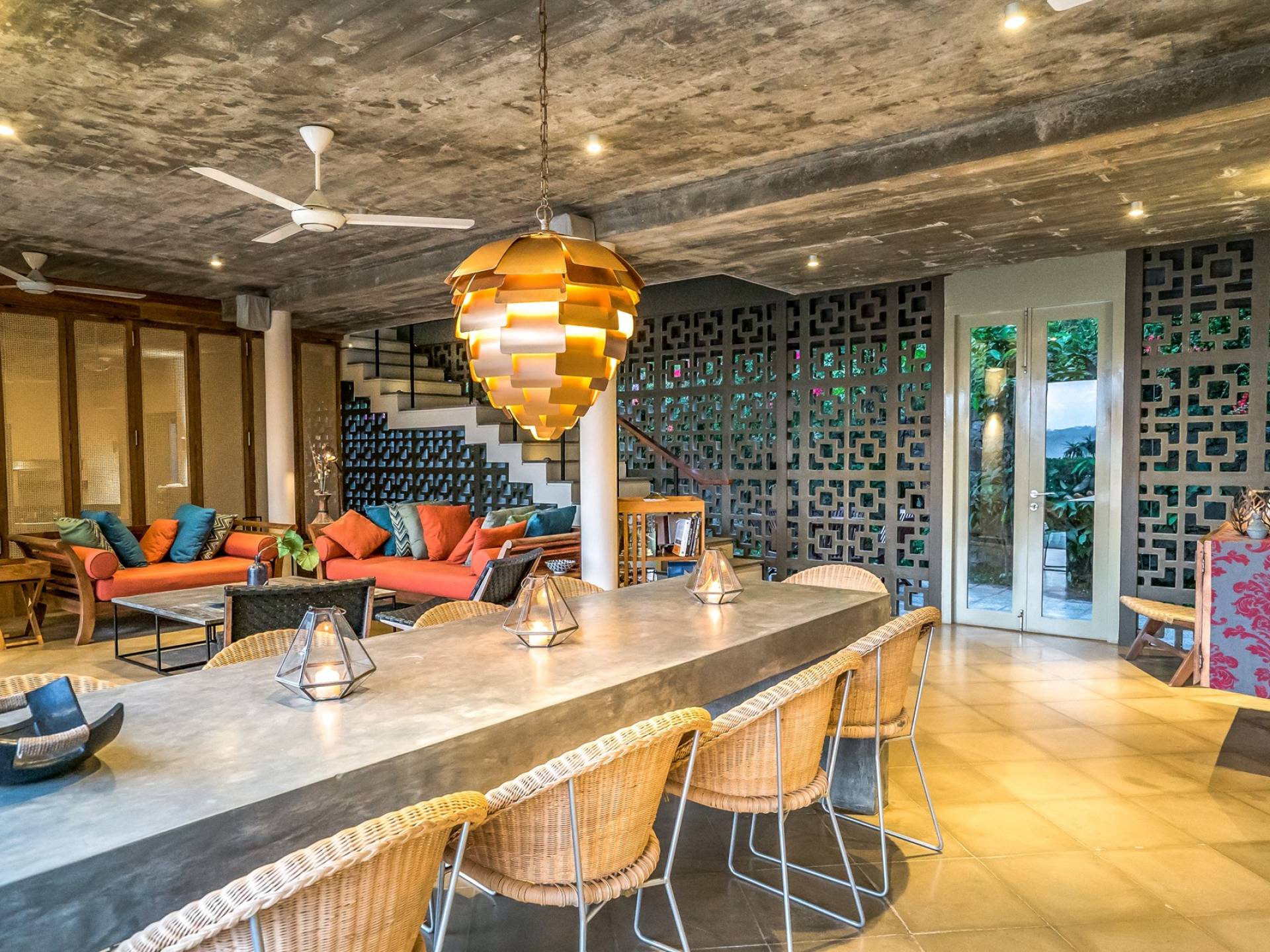 Πλαισιώνεται από το άπειρο άκρο της πισίνας και έναν καταπράσινο τροπικό κήπο. Σε αυτό το σαλόνι, μπορείτε να δειπνήσετε για έως και 14 άτομα στο κεντρικό τραπέζι και οι επισκέπτες μπορούν να χαλαρώσουν στους τεράστιους καναπέδες με θέα στον ωκεανό. Ολόκληρο το σαλόνι ανοίγει στο κατάστρωμα και την πισίνα. Στο ισόγειο, θα βρείτε ένα υπνοδωμάτιο με ιδιωτικό μπάνιο δίπλα στο σαλόνι, με θέα στον ωκεανό και συρόμενες πόρτες που ανοίγουν στο κατάστρωμα της πισίνας. Από το σαλόνι, μια σκάλα σας οδηγεί στο διάδρομο του πρώτου ορόφου με πρόσβαση σε τέσσερα υπνοδωμάτια, όλα με κλιματισμό και ιδιωτικά μπαλκόνια με ανενόχλητη θέα στον ωκεανό.