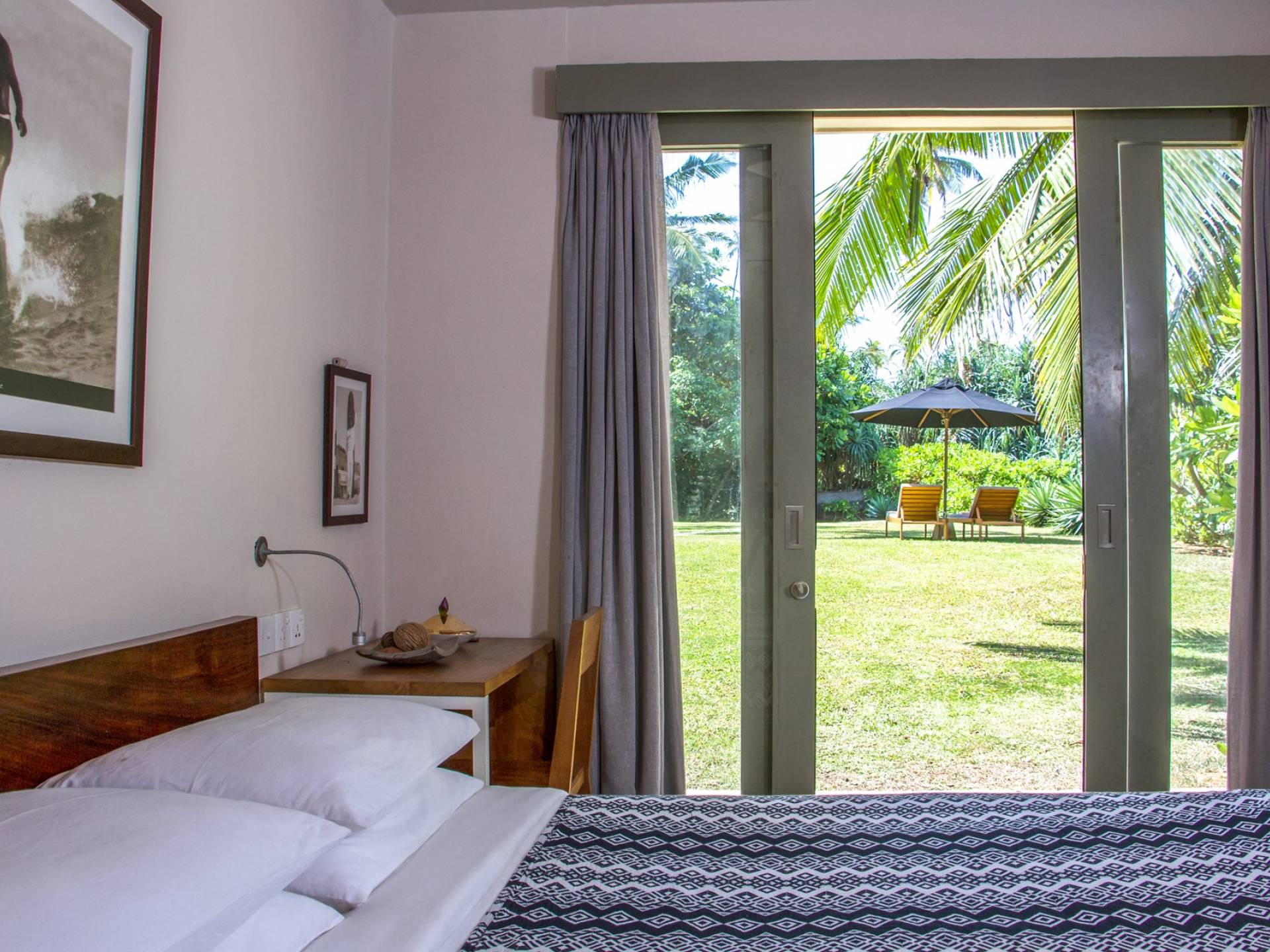 Η master και η junior σουίτα έχουν μπανιέρες στα μπαλκόνια τους. Στο τέλος της αίθουσας, μπαίνεις στο σκεπασμένο, υπαίθριο στούντιο γιόγκα και Ayurveda με θέα στον ωκεανό. Εάν το επιθυμείτε, αυτός ο χώρος μπορεί να λειτουργήσει και ως ιδιωτική σκεπαστή βεράντα για την κύρια σουίτα. Πάρτε τη σκάλα στην ταράτσα με τον κήπο μήκους 30 μέτρων. από εκεί έχετε θέα τόσο στην παραλία όσο και στον ανοιχτό ωκεανό. Ο κήπος του τελευταίου ορόφου έχει ένα μικρό μπαρ και ξαπλώστρες, και στην άκρη, έναν κήπο λαχανικών και μπαχαρικών. Αυτό είναι το μέρος για να απολαύσετε τα ποτά σας στο ηλιοβασίλεμα. Επιστρέψτε στο ισόγειο, περάστε δίπλα από την πισίνα μέσα από τον κήπο μέχρι την είσοδο δύο μικρότερων δωματίων κήπου, το καθένα με ανεμιστήρα, ιδιωτική τουαλέτα και ιδιωτικό ντους κήπου, ιδανικό για εφήβους ή ζευγάρια με παιδιά που θέλουν να ζήσουν στον κήπο . Στο πίσω μέρος του σπιτιού, θα βρείτε τους χώρους του προσωπικού. Το Talalla House διαθέτει φύλακα 24/7 και κλειστό χώρο στάθμευσης. Το Talalla House και η τοποθεσία του, το καθιστούν επίσης το ιδανικό μέρος για γάμο, γενέθλια, επανένωση ή ιδιωτικό καταφύγιο γιόγκα.