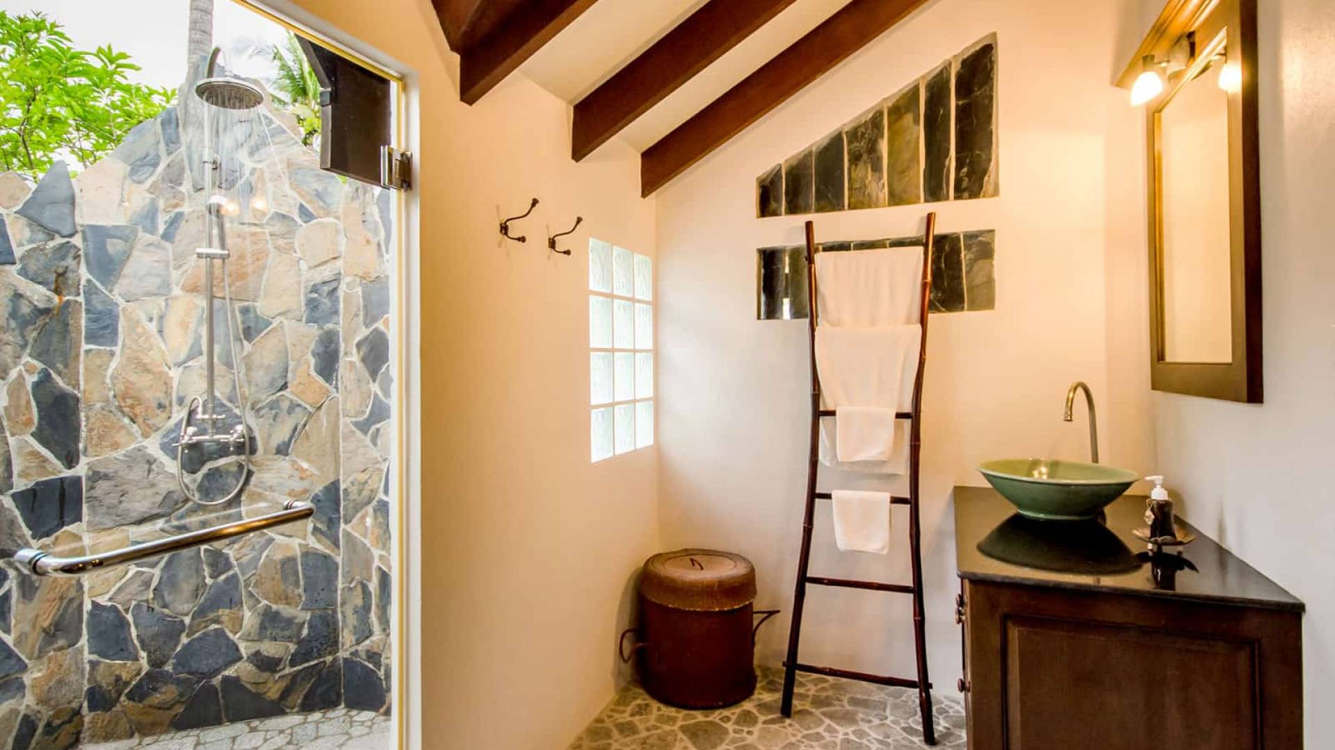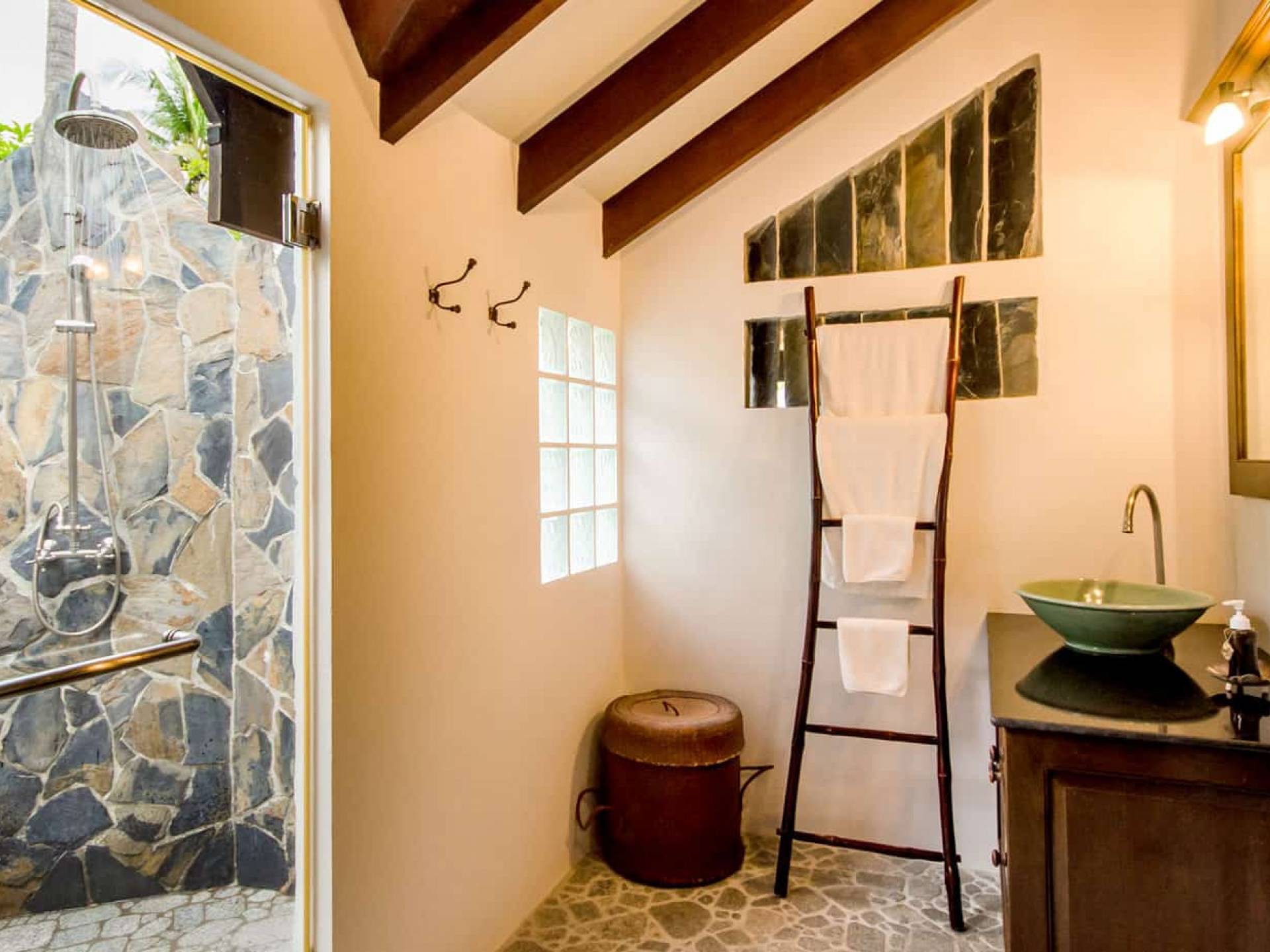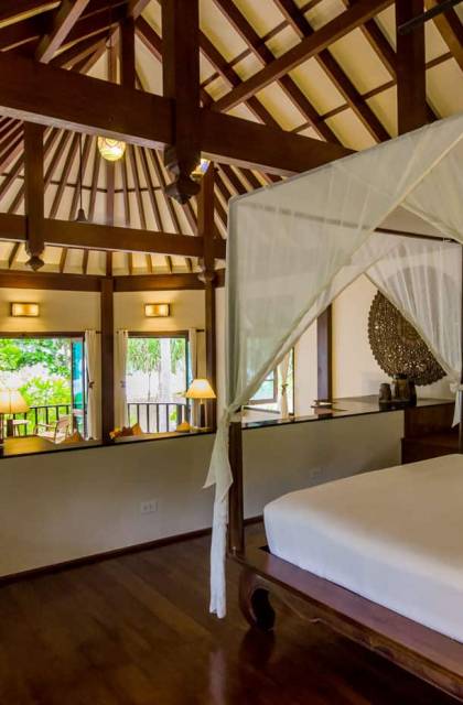 Αυτός ο φιλόξενος σχεδιασμός στούντιο με ενιαία διαρρύθμιση με υπερυψωμένο χώρο ύπνου διαθέτει ένα υπέροχο κρεβάτι king size με ουρανό, ιδιωτικό μπάνιο με υπαίθριο διπλό ντους ψιλής βροχής σε μπαλινέζικο στιλ και μια ματαιοδοξία "αυτός και αυτή" μετρητής.