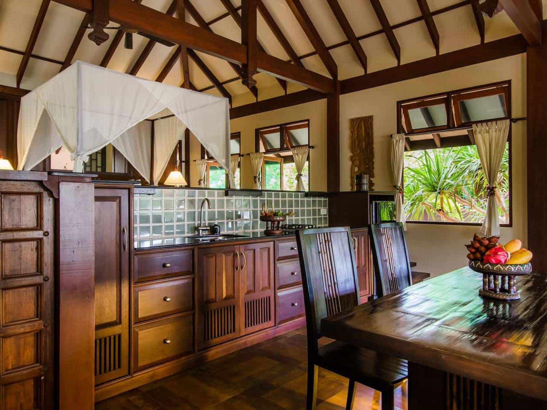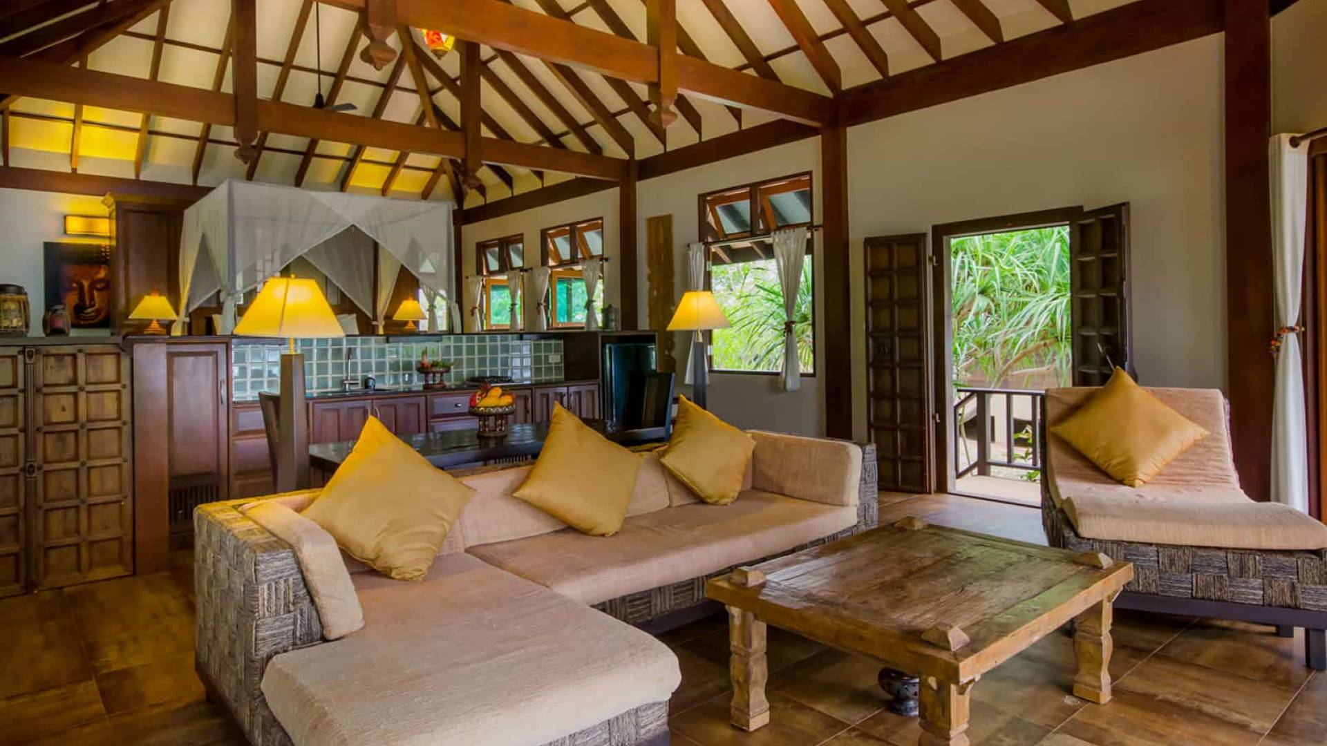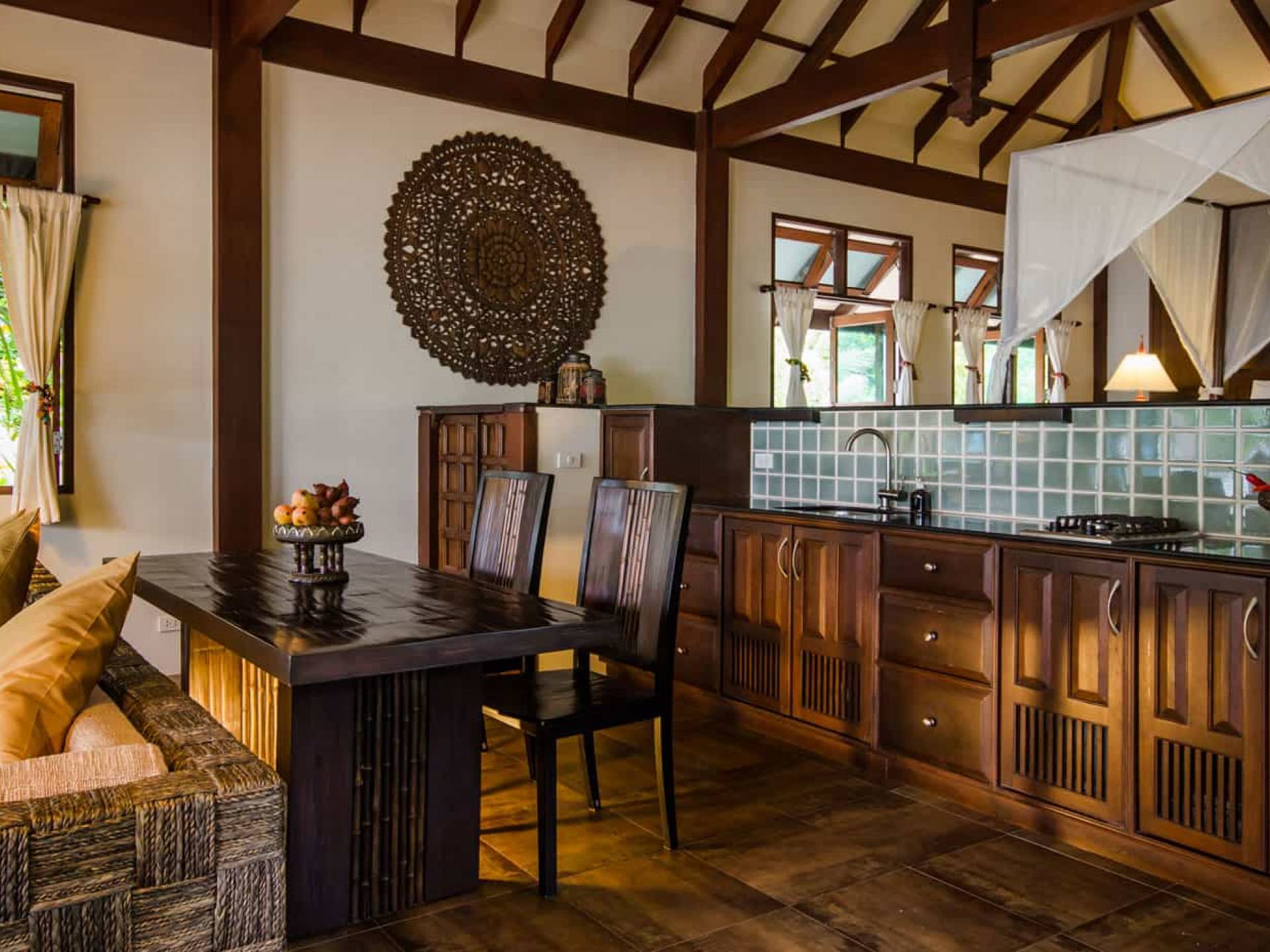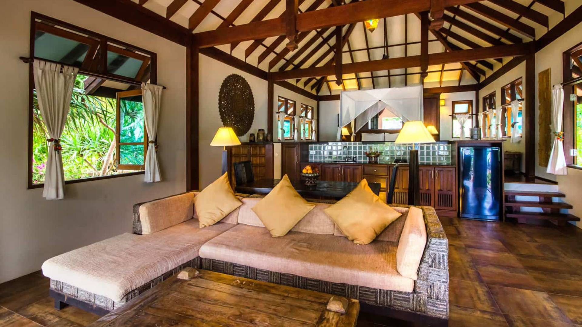 Ο κύριος χώρος καθιστικού διαθέτει επίσης πλήρως εξοπλισμένη κουζίνα με τραπέζι φαγητού και το σαλόνι βρίσκεται μπροστά από τη βίλα με θέα προς το Koh Phi Phi με εκπληκτικά ηλιοβασιλέματα, καθιστώντας το ιδανικό μέρος για δροσιστικά ποτά στο ηλιοβασίλεμα την ιδιωτική βεράντα.