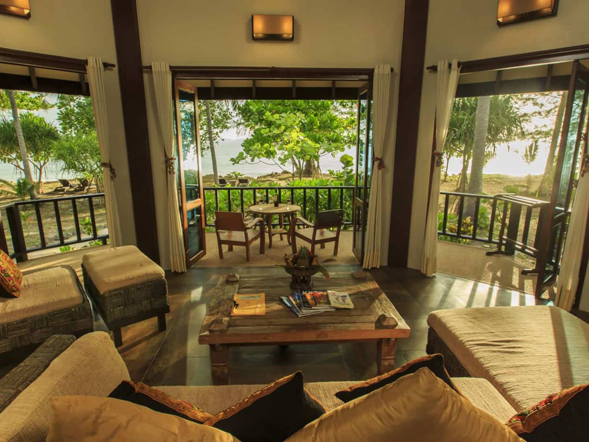 Η βίλα διαθέτει μεγάλες πτυσσόμενες πόρτες και παράθυρα επιτρέποντας μια θέα σχεδόν 180 μοιρών προς τους ιδιωτικούς κήπους και την παραλία όπου οι ξαπλώστρες σας περιμένουν για να χαλαρώσετε κατά τη διάρκεια της ημέρας ή το βράδυ με εκπληκτική θέα στην παραλία και τον ωκεανό.