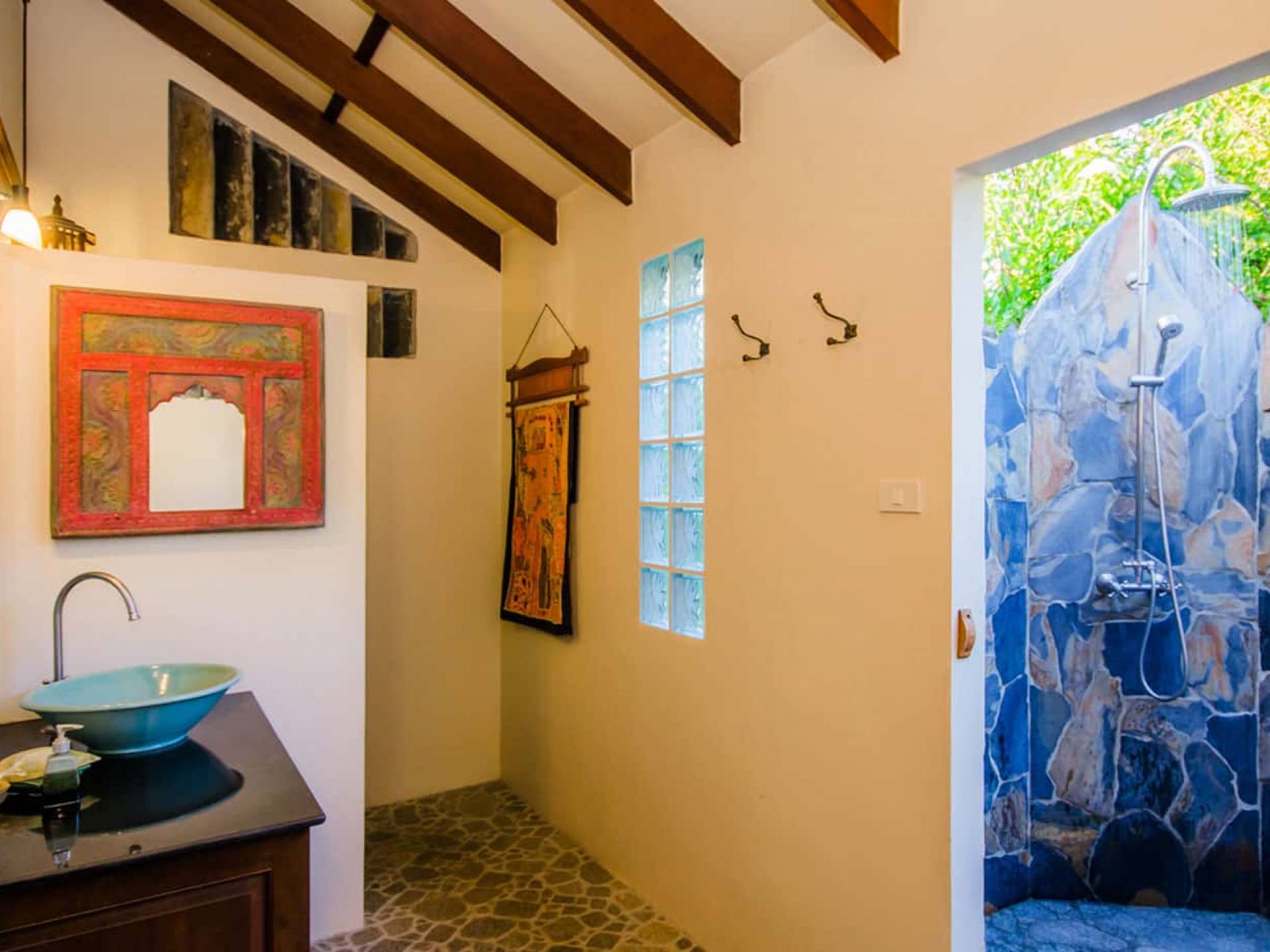 Το Baan Noi Chai Ley στο Koh Jum Beach Villas είναι όμορφα σχεδιασμένο χρησιμοποιώντας πολλά φυσικά υλικά όπως ξύλο και πέτρα και η έξυπνη αρχιτεκτονική ενθαρρύνει άφθονο φυσικό αερισμό σε όλους τους χώρους της βίλας που ακολουθεί την οικολογική ιδέα των βίλλων Koh Jum Beach αλλά πρέπει να κάνει λίγο πολύ ζέστη τη νύχτα ή αν προτιμάτε να κοιμάστε με τα παράθυρα και τις πόρτες κλειστές, τότε ο κλιματισμός είναι ένα ευπρόσδεκτο χαρακτηριστικό για μια καλή βραδιά.