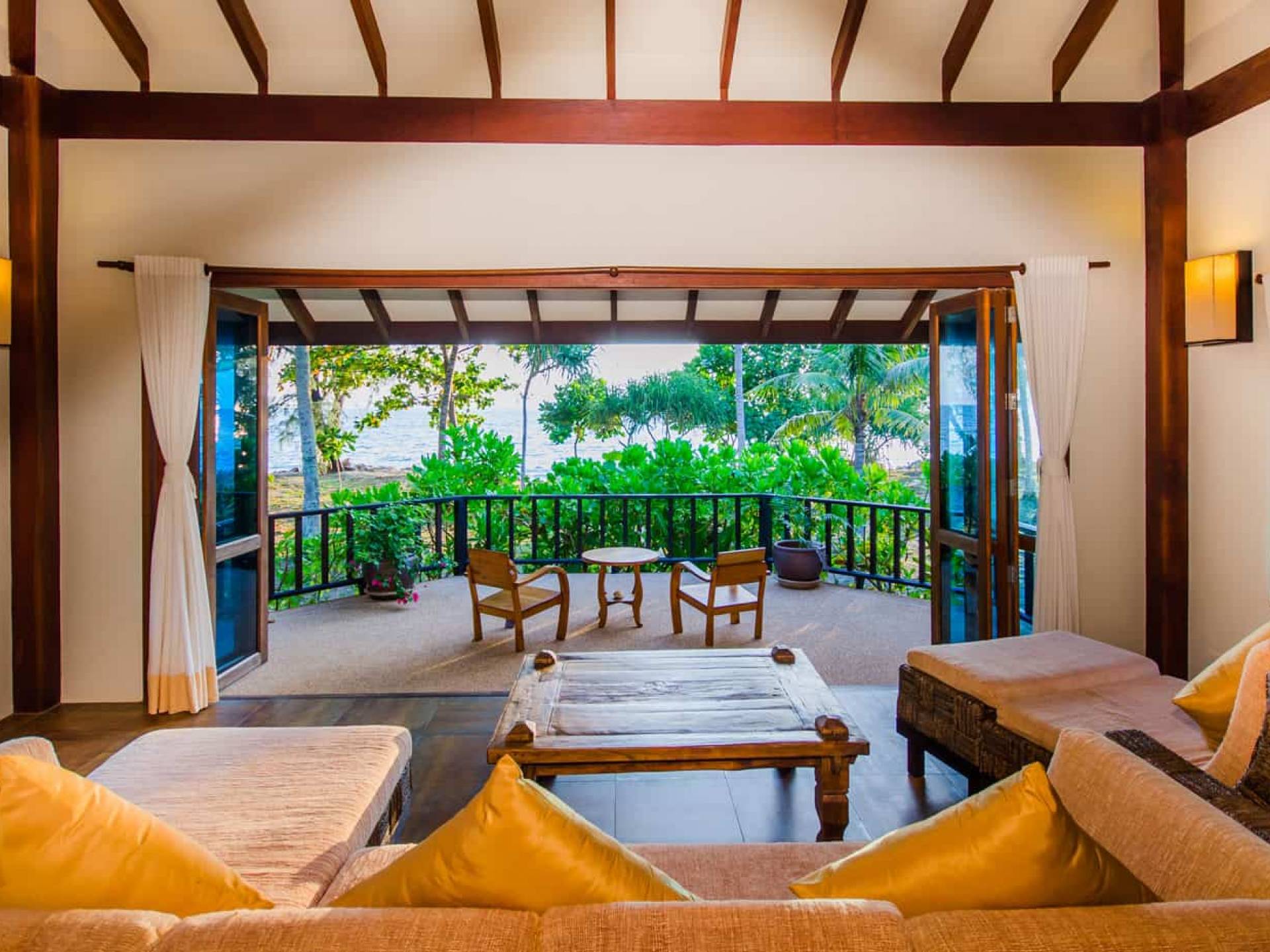 Η βίλα διαθέτει μεγάλες πτυσσόμενες πόρτες και παράθυρα επιτρέποντας μια θέα σχεδόν 180 μοιρών προς τους ιδιωτικούς κήπους και την παραλία όπου οι ξαπλώστρες σας περιμένουν για να χαλαρώσετε κατά τη διάρκεια της ημέρας ή το βράδυ με εκπληκτική θέα στην παραλία και τον ωκεανό.