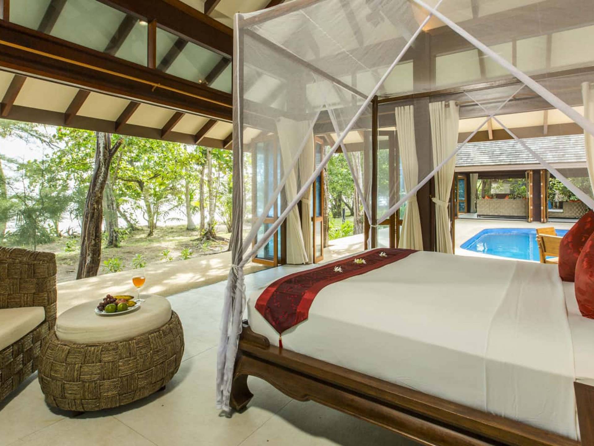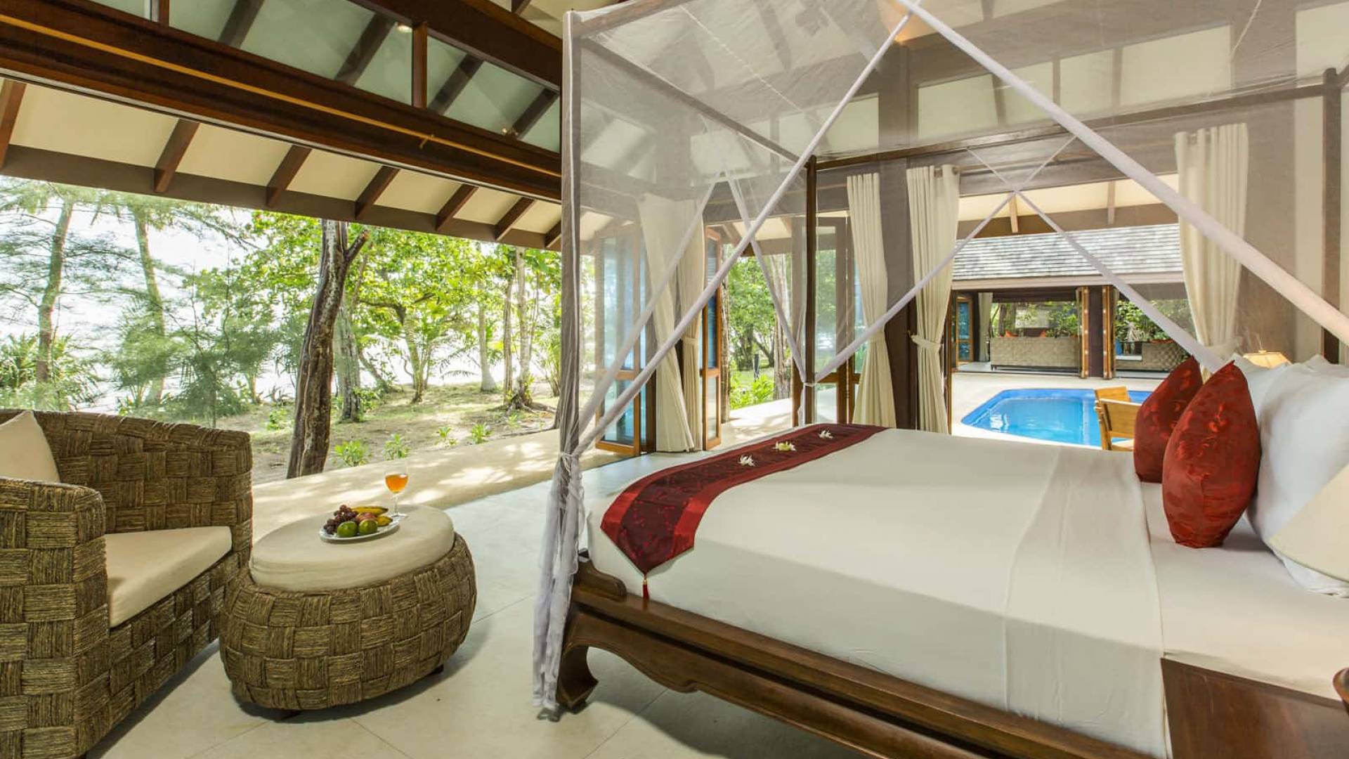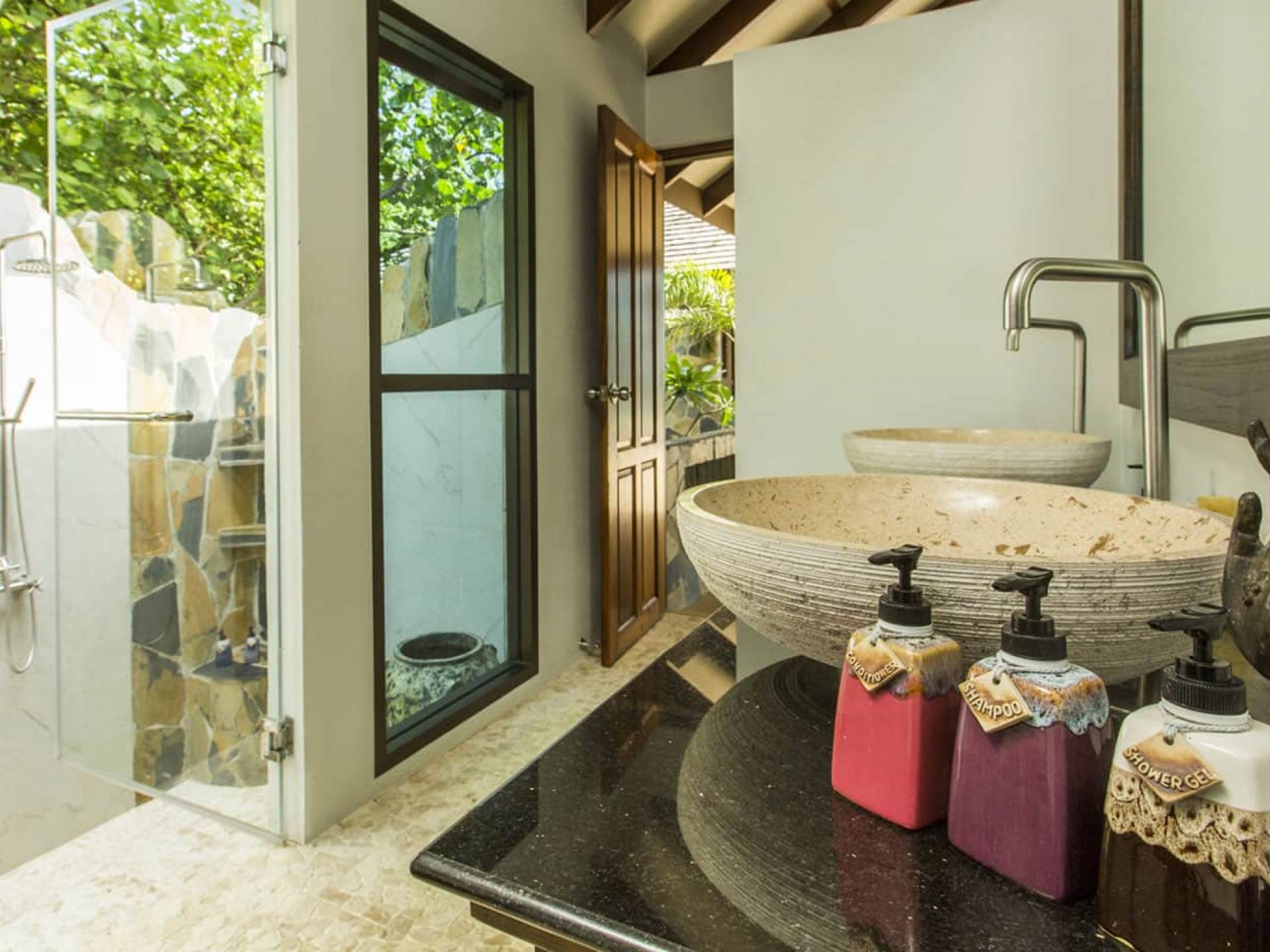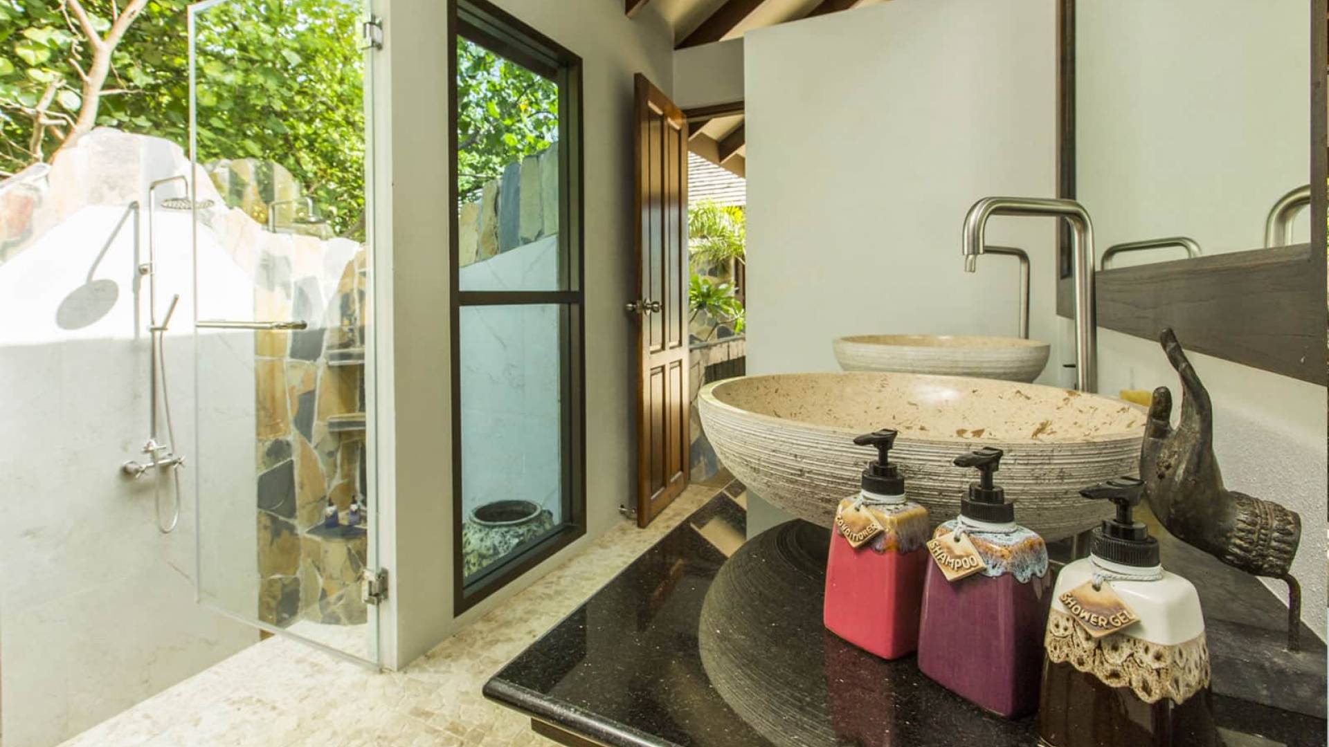 Τα δύο κύρια υπνοδωμάτια είναι αποκομμένα από την υπόλοιπη βίλα εξασφαλίζοντας υψηλό βαθμό ιδιωτικότητας όταν το επιθυμείτε, ενώ ο σχεδιασμός της βίλας επιτρέπει επίσης κοινόχρηστο δείπνο ή ελεύθερο χρόνο μαζί. Κάθε υπνοδωμάτιο έχει το δικό του μπάνιο με υπαίθριο διπλό ντους ψιλής βροχής σε μπαλινέζικο στιλ και πάγκο ματαιοδοξίας "αυτός και αυτή".