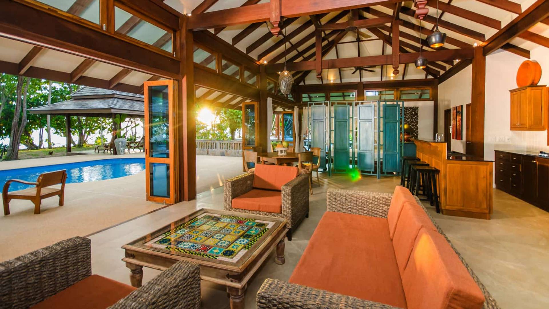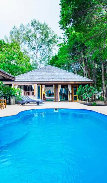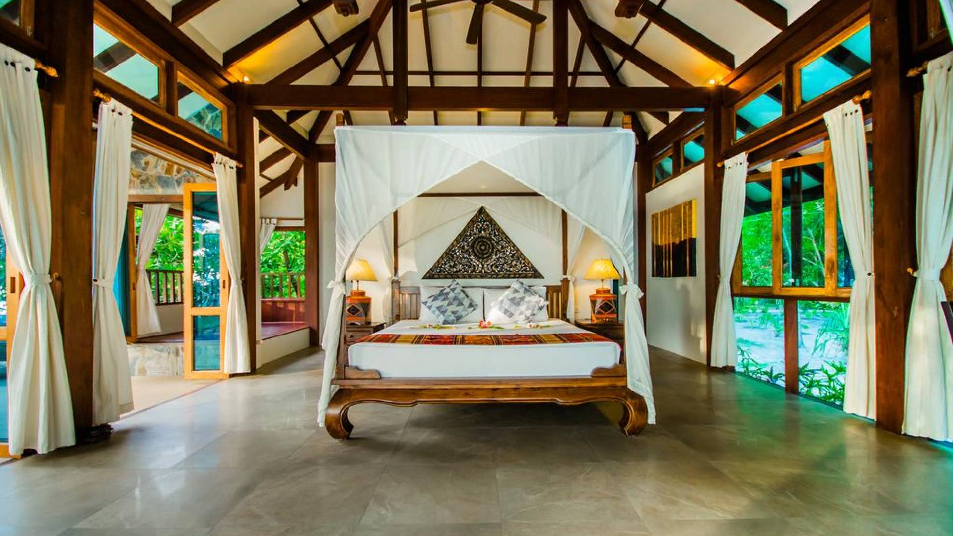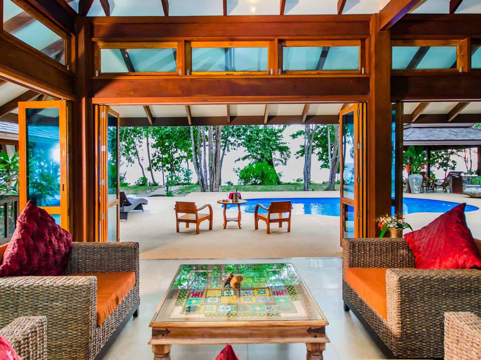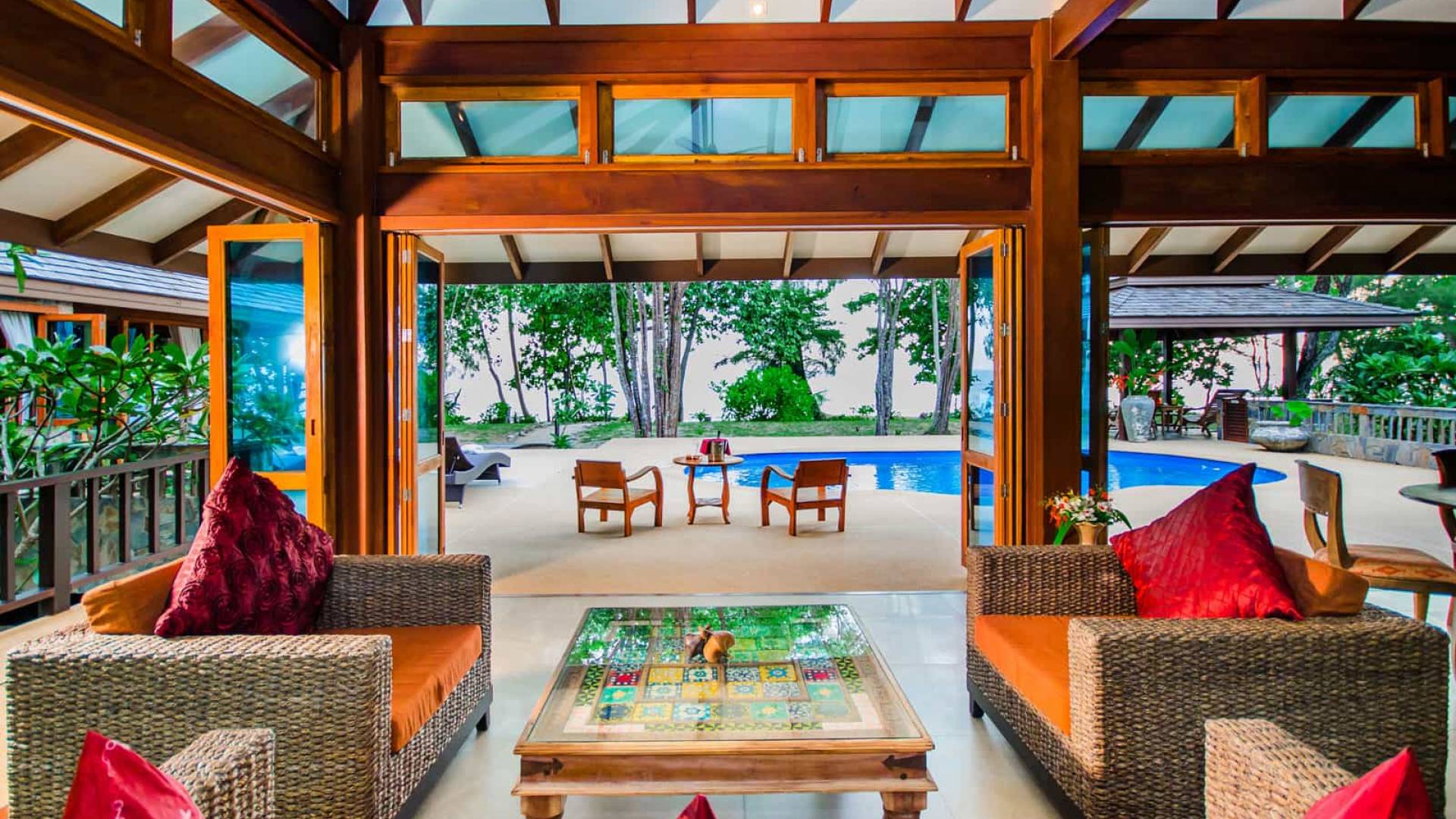 >Το Baan Ton Sai στο Koh Jum Beach Villas διαθέτει μεγάλες πτυσσόμενες πόρτες και παράθυρα που επιτρέπουν θέα σχεδόν 180 μοιρών προς τους ιδιωτικούς κήπους, το ευρύχωρο κατάστρωμα της πισίνας ή την παραλία και τον ωκεανό.