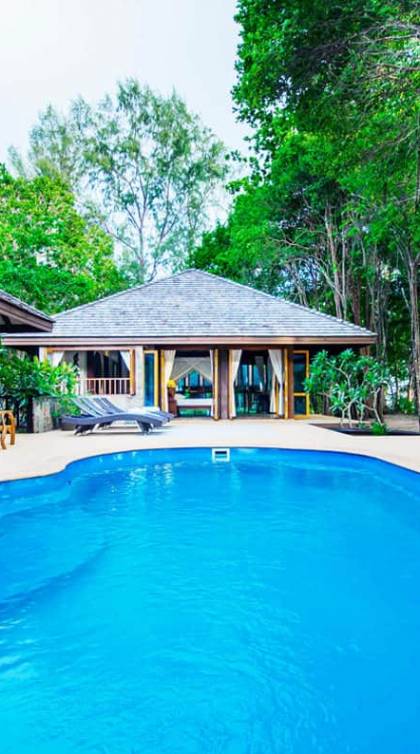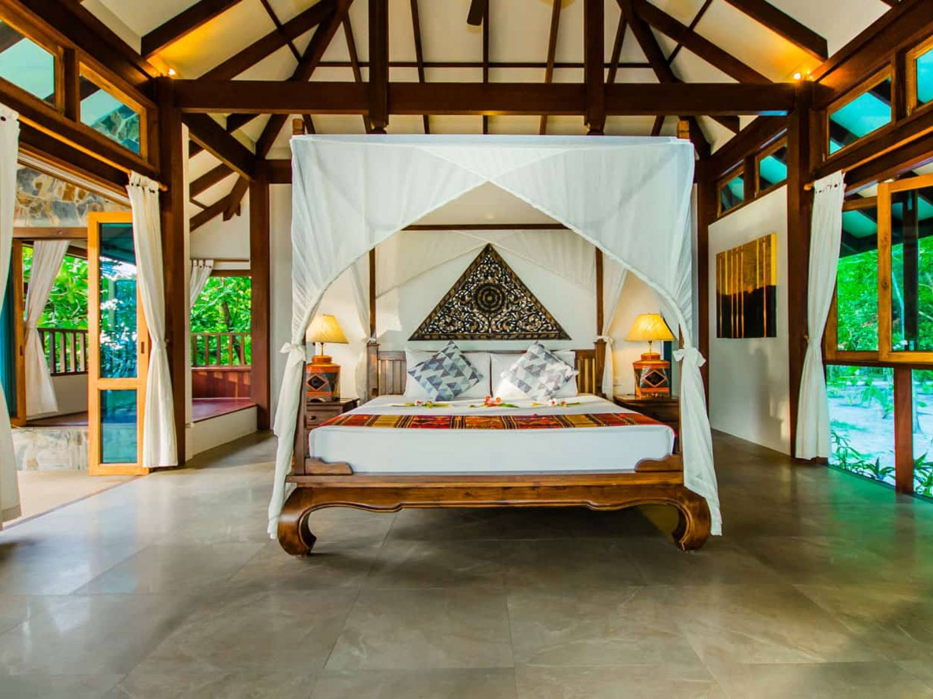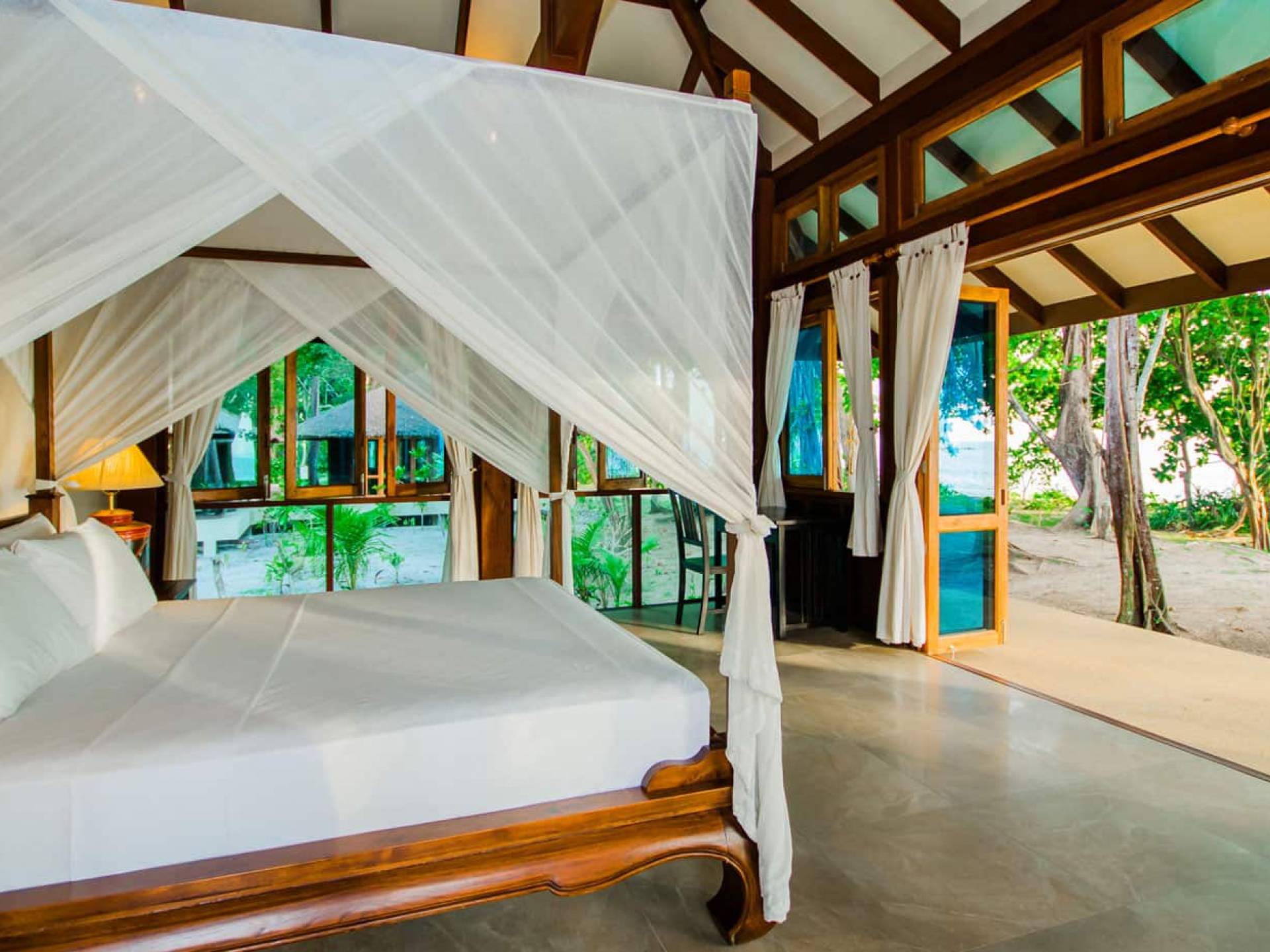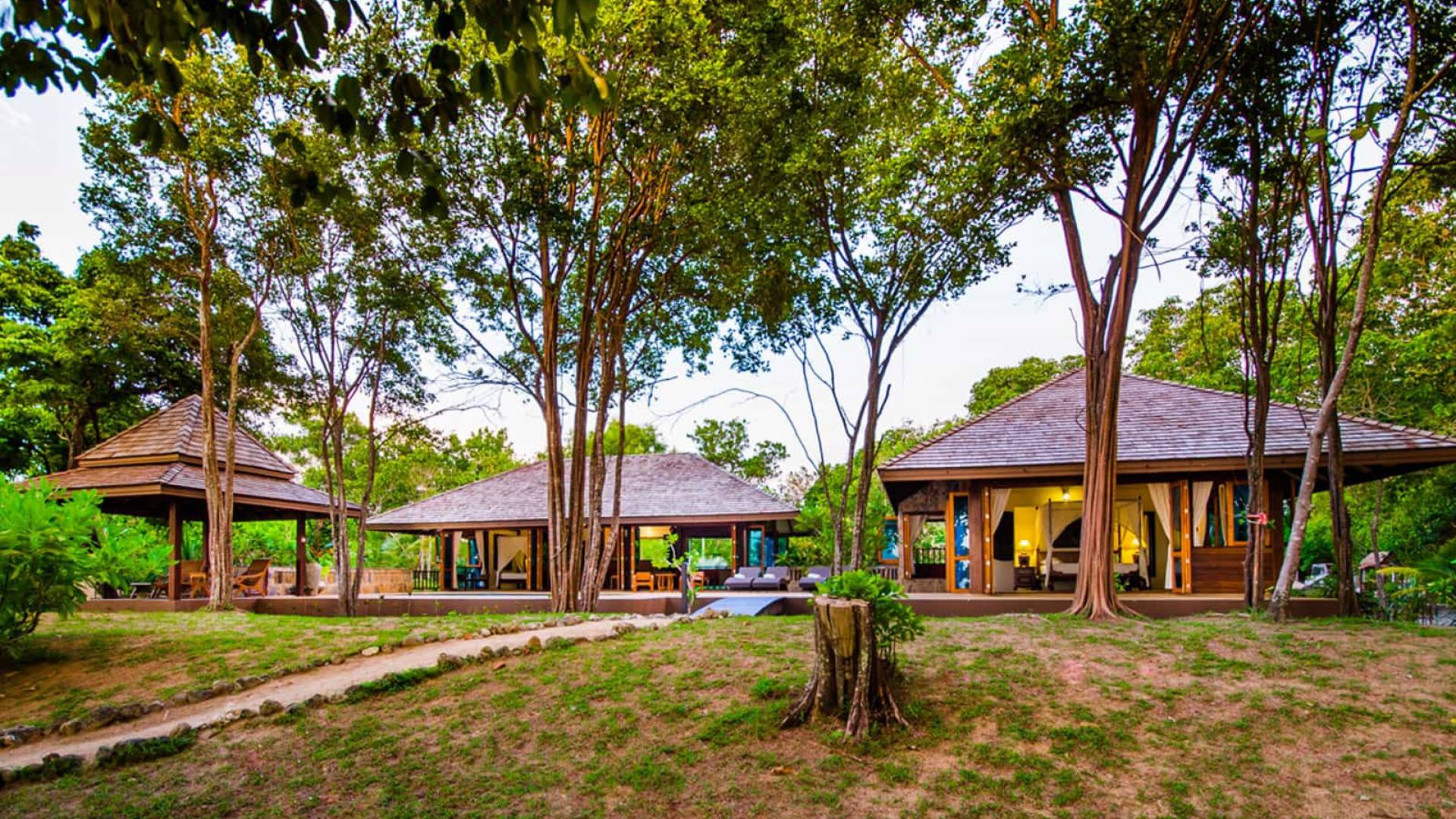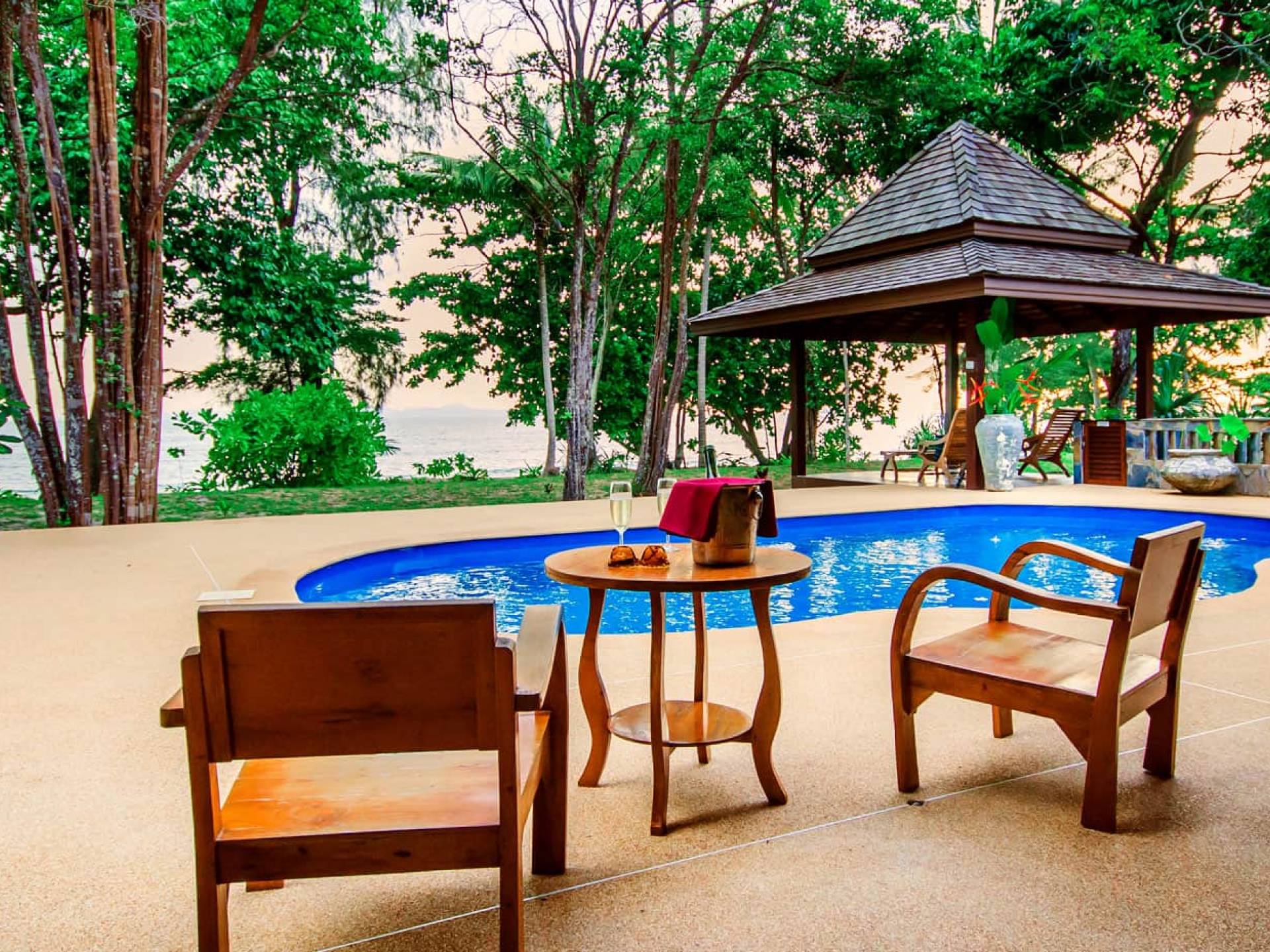 >Το Baan Ton Sai στο Koh Jum Beach Villas διαθέτει μεγάλες πτυσσόμενες πόρτες και παράθυρα που επιτρέπουν θέα σχεδόν 180 μοιρών προς τους ιδιωτικούς κήπους, το ευρύχωρο κατάστρωμα της πισίνας ή την παραλία και τον ωκεανό.