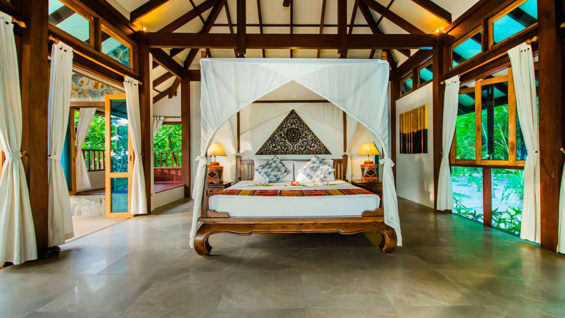 Η κύρια κρεβατοκάμαρα είναι αποσπασμένη από την υπόλοιπη βίλα εξασφαλίζοντας υψηλό βαθμό ιδιωτικότητας όταν το επιθυμείτε, ενώ το δεύτερο κρεβάτι king size βρίσκεται στο κεντρικό κτήριο.