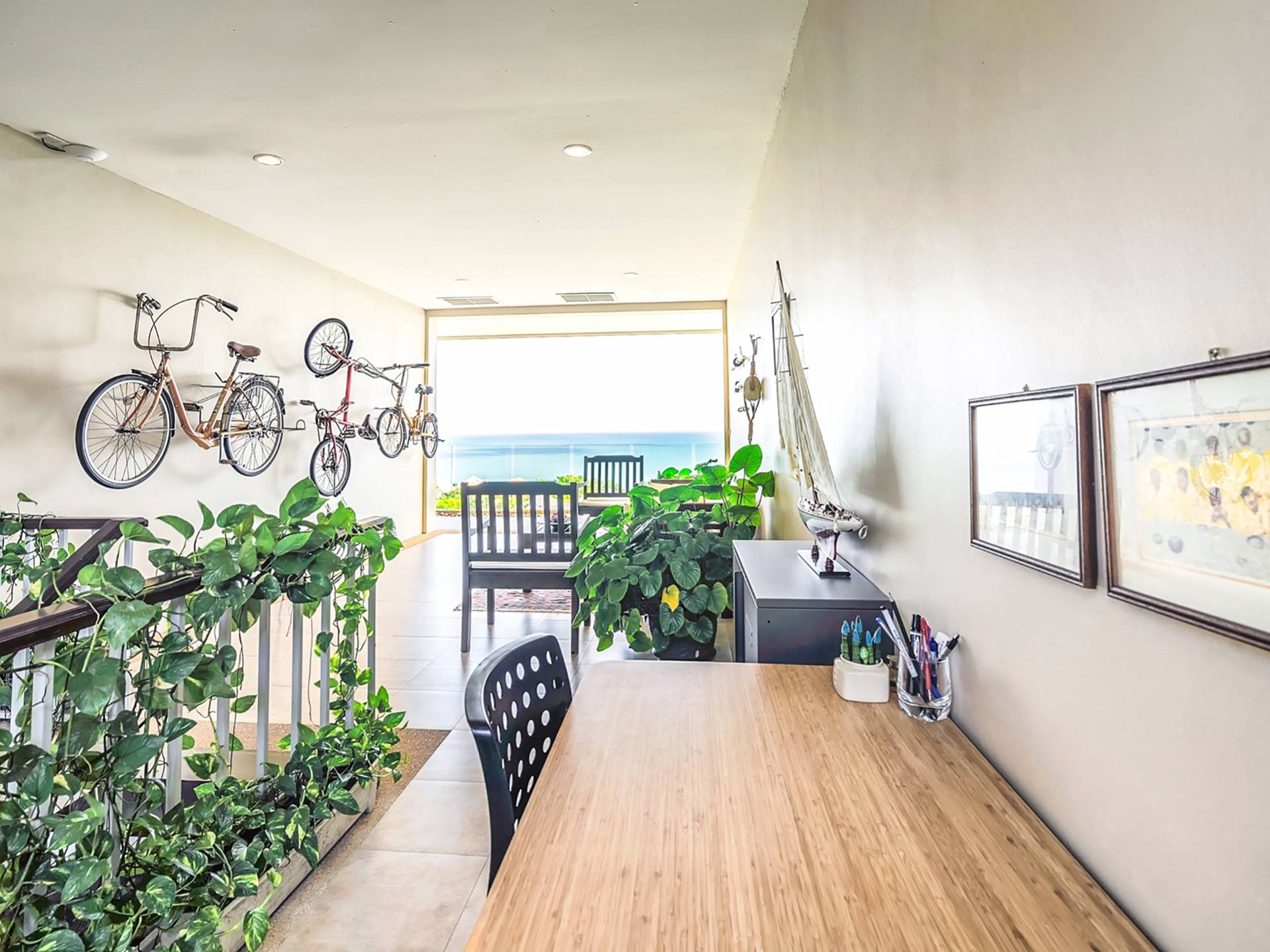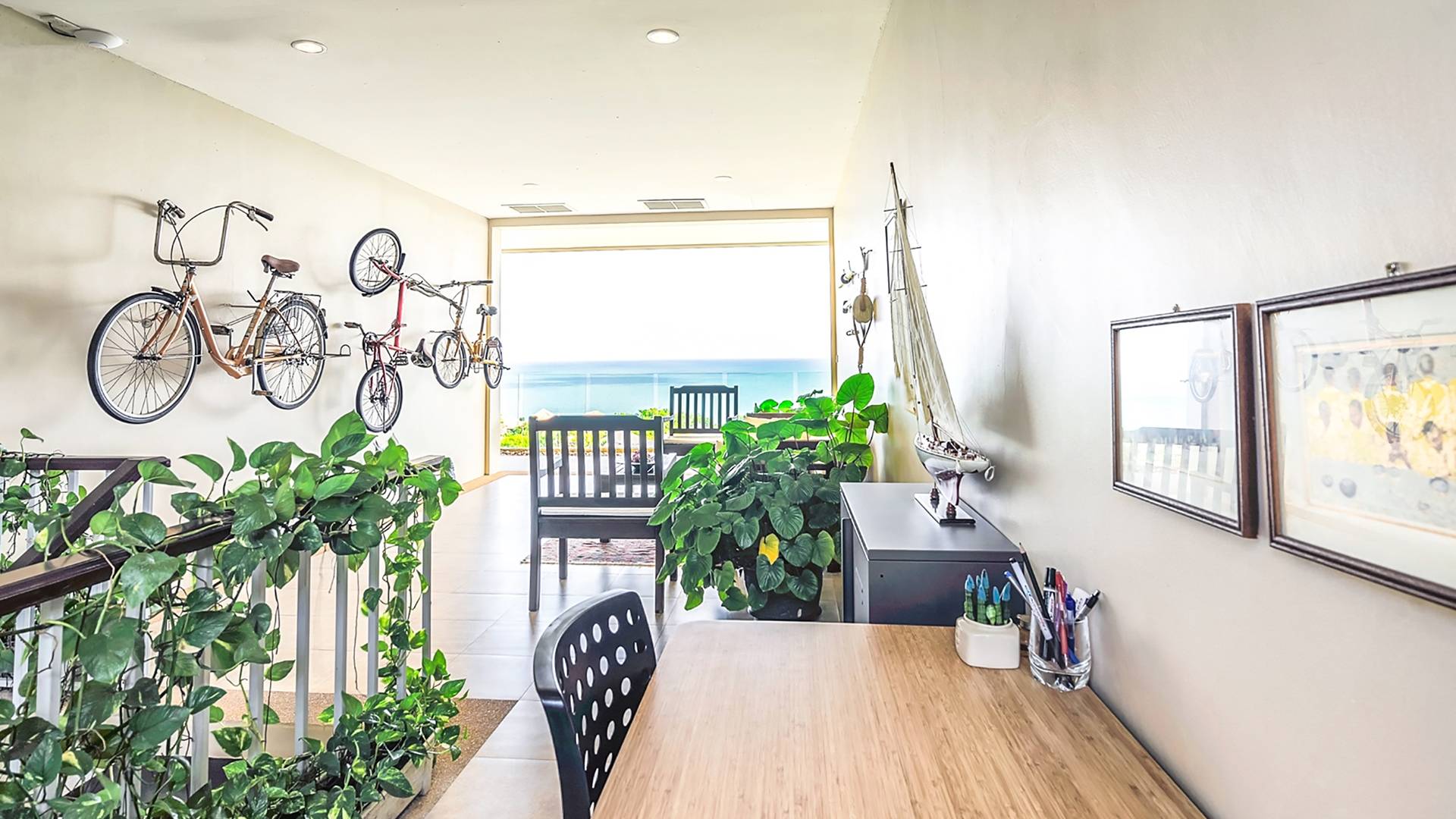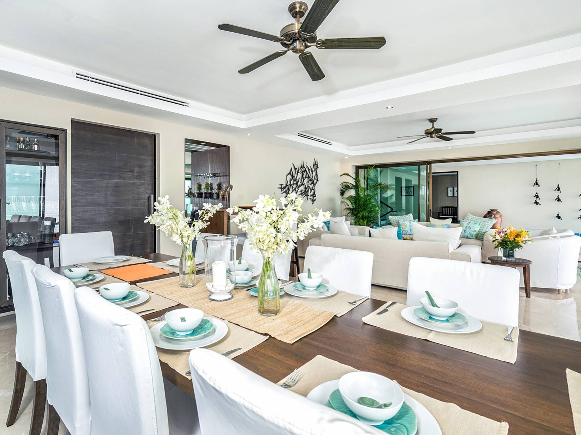Η πρόσβαση στη βίλα γίνεται μέσω μιας υπέροχης λίμνης koi γεμάτη κρίνους και εξωτικά φυτά. Μόλις μπείτε μέσα, ξεδιπλώνεται μια εντυπωσιακή θέα της πισίνας υπερχείλισης και της ακτογραμμής. Εδώ, θα βρείτε ένα φωτεινό και ευρύχωρο σαλόνι με μαρμάρινο δάπεδο που ανοίγει στη βεράντα της πισίνας. Εδώ μπορείτε να περάσετε κοινωνικές βραδιές, χαλαρώνοντας σε άνετους λευκούς καναπέδες και αναπαυτικές καρέκλες. Και επιπλωμένο με μπαρ και κομψή τραπεζαρία για 10 άτομα, όλες οι ανάγκες σας για ποτό και φαγητό καλύπτονται με ευκολία.