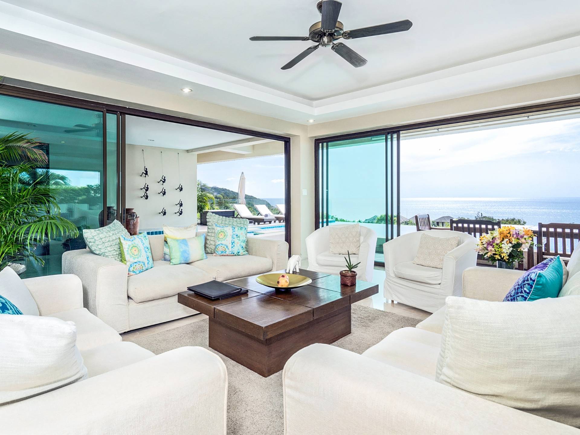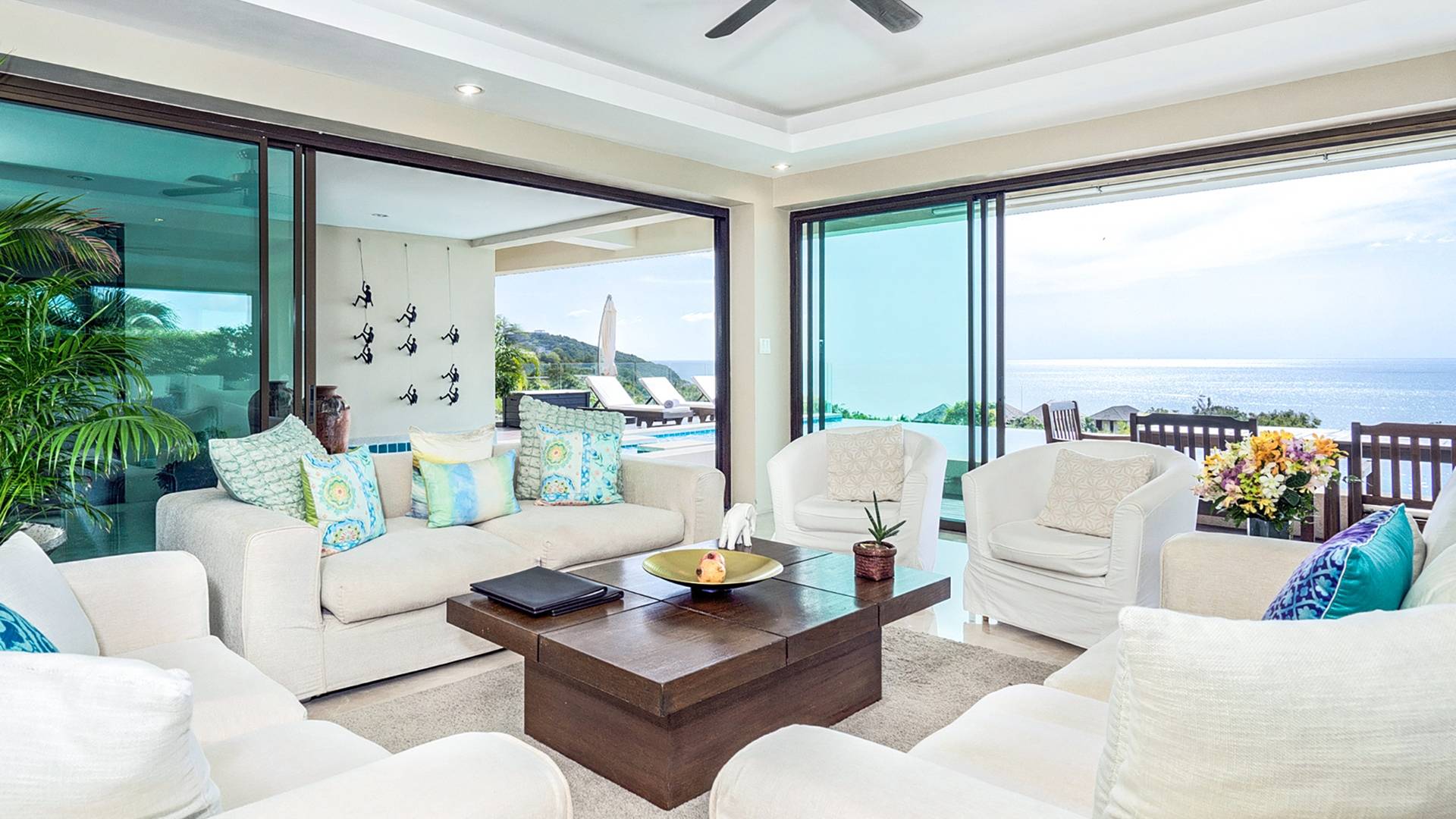 Μια σαγηνευτική βίλα χτισμένη σε μοντέρνες γραμμές και πολλαπλά επίπεδα, διαθέτει γυάλινες πόρτες από το δάπεδο μέχρι την οροφή που μπορούν να τραβήξουν πίσω όταν θέλετε να μυρίσετε το αλάτι στον αέρα. Δεν υπάρχει τίποτα πιο ρομαντικό από μια βραδιά με φεγγαρόφωτο που περάσετε σε μια βεράντα, τη θαλασσινή αύρα στα μαλλιά σας, χέρι-χέρι με τον σύντροφό σας καθώς αγναντεύετε τη φαινομενικά ατελείωτη θέα στη θάλασσα.