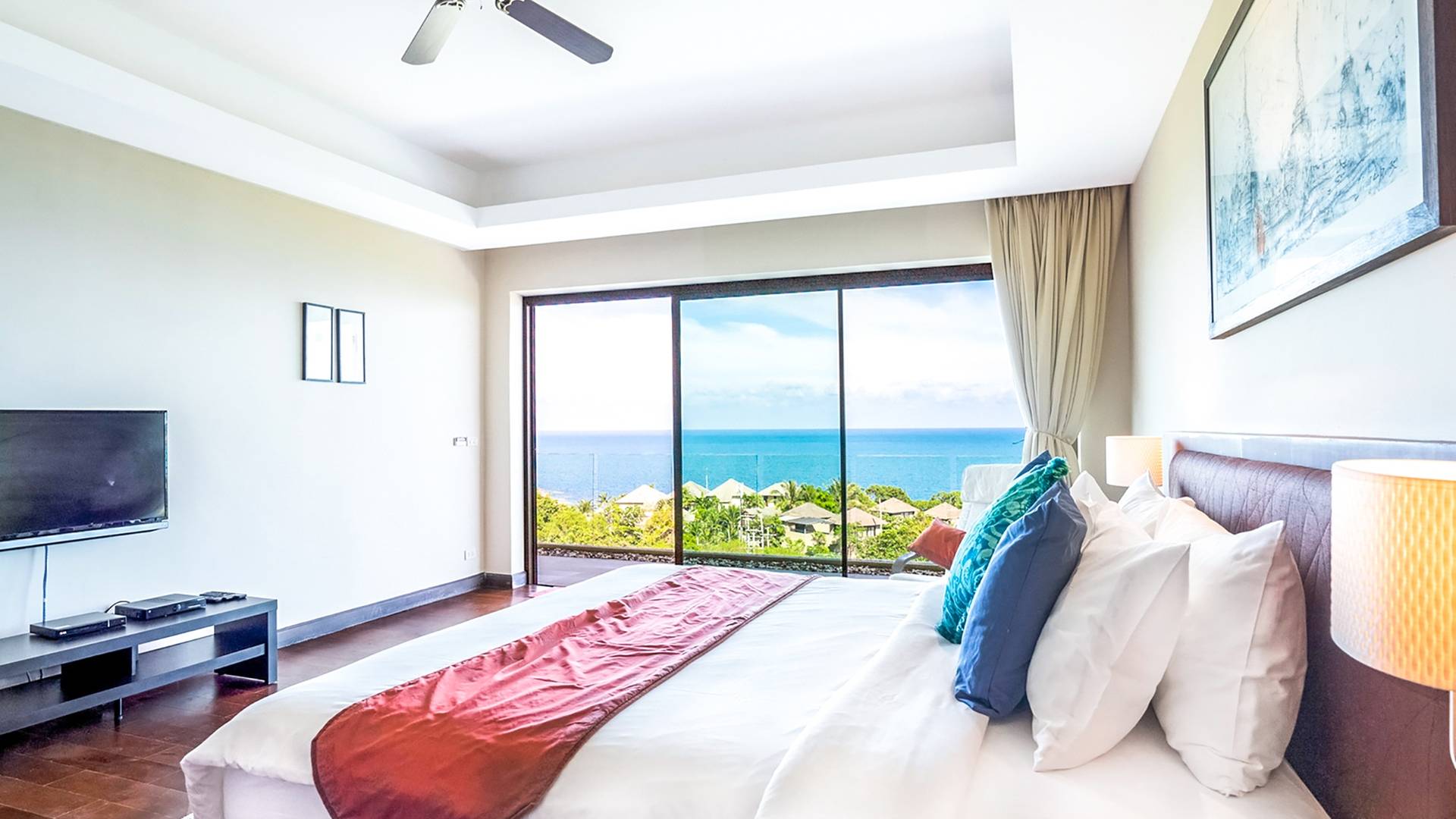 Το Sukham αποτελεί μέρος του αποκλειστικού περιφραγμένου κτήματος Narayan Heights, κατά μήκος της κορυφαίας πλαγιάς του λόφου της στρατηγικής βορειοανατολικής ακτής του Koh Samui, με εντυπωσιακή θέα 180 μοιρών στον όμορφο κόλπο Choeng Mon και τις φημισμένες παραλίες του Chaweng. Αυτή η βίλα σε σύγχρονο στιλ βρίσκεται σε έναν ιδιωτικό κήπο με έξι δίκλινα υπνοδωμάτια με ιδιωτικό μπάνιο, τα οποία αξιοποιούν την υπέροχη θέα. Τα ιδιόμορφα σχεδιαστικά στοιχεία δίνουν μια αίσθηση παιχνιδιού, με ποδήλατα, καλάμια ψαρέματος και κουπιά τοποθετημένα σε έντονους τοίχους.