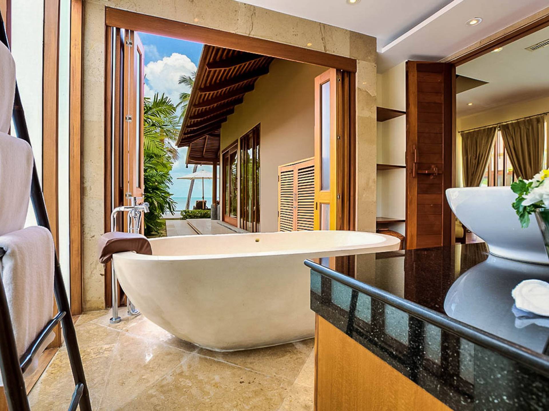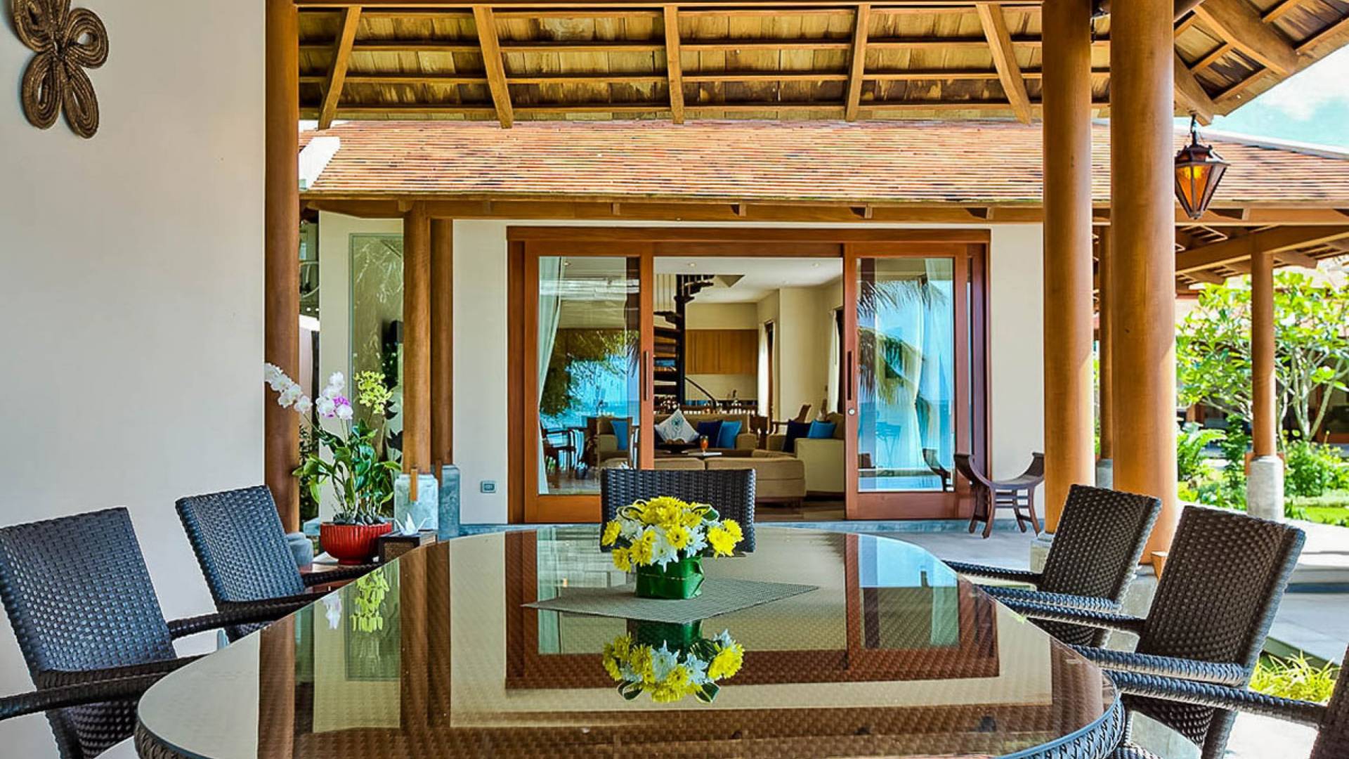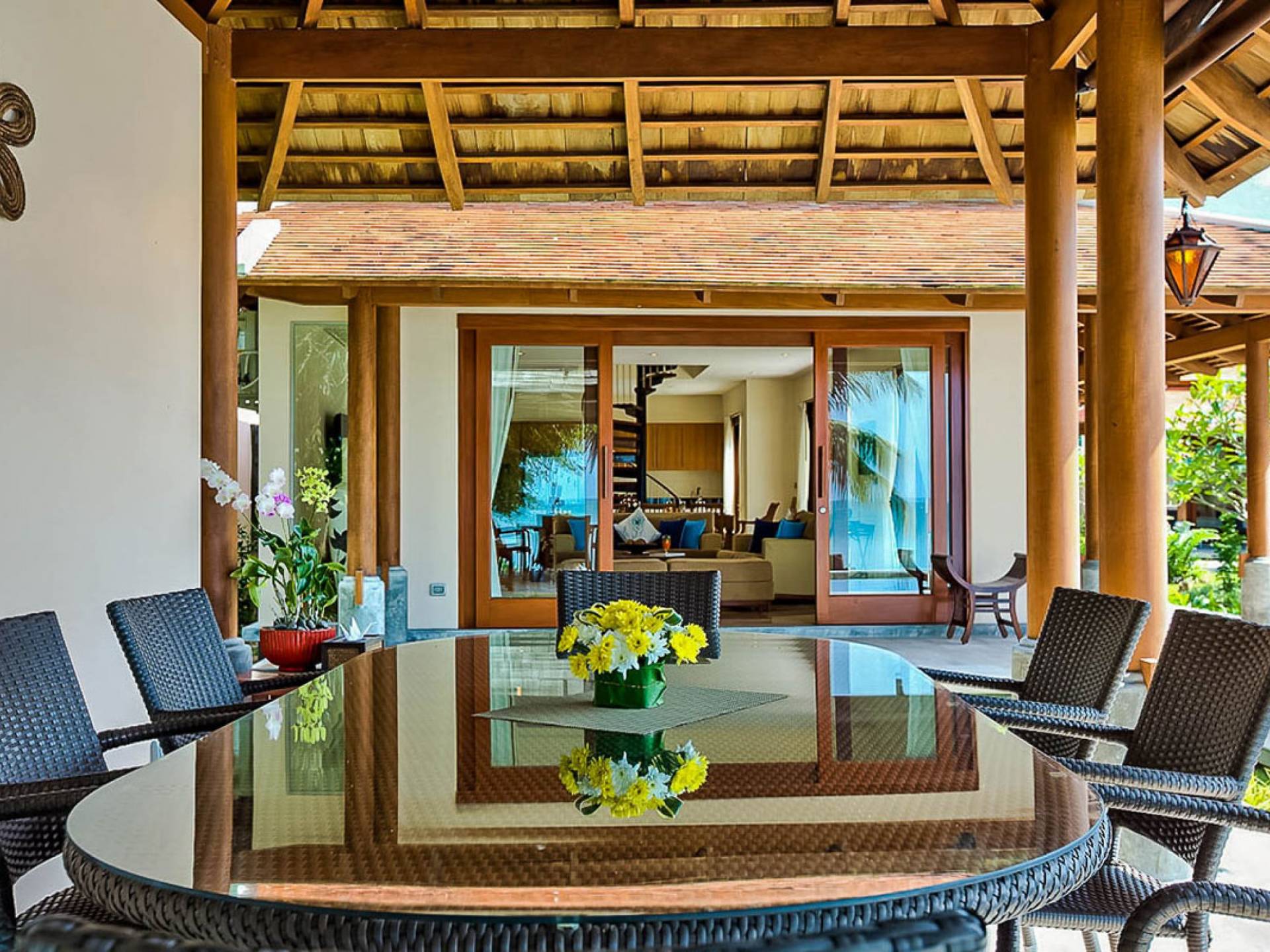Οι καταπράσινοι εξωτερικοί χώροι διαθέτουν τροπικούς κήπους, προσφέροντας διάφορους χαλαρωτικούς χώρους για διαλογισμό ή ανάγνωση βιβλίου. Πολυτελείς εσωτερικοί και εξωτερικοί χώροι καθιστικού και τραπεζαρίας, ογκώδη, πολυτελή υπνοδωμάτια εξοπλισμένα με λινά και στρώματα εξαιρετικής ποιότητας και οι σαλάτες δίπλα στην παραλία στεγάζονται σε ξεχωριστά περίπτερα με ξεχωριστές στέγες με ταϊλανδέζικο στιλ. Στους κήπους της παραλίας, μια ιδιωτική πισίνα υπερχείλισης μήκους 11 μέτρων συγχωνεύεται με τον ορίζοντα. Κάντε μια βουτιά στην πισίνα ή τη θάλασσα για μια δροσιστική βουτιά για να δροσίσετε τη ζέστη και απολαύστε το φως της ημέρας στις ξαπλώστρες δίπλα στην πισίνα κοιτάζοντας τον απέραντο ορίζοντα. Πάρτε το πρωινό σας ανάμεσα σε τροπικά τοπία μπροστά στη θάλασσα και συγκεντρωθείτε με τους αγαπημένους σας για να απολαύσετε νόστιμα γεύματα στα όμορφα τραπέζια alfresco.
