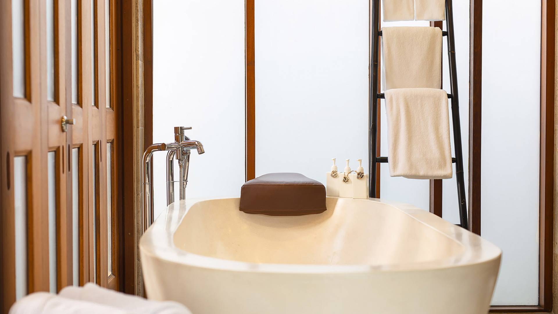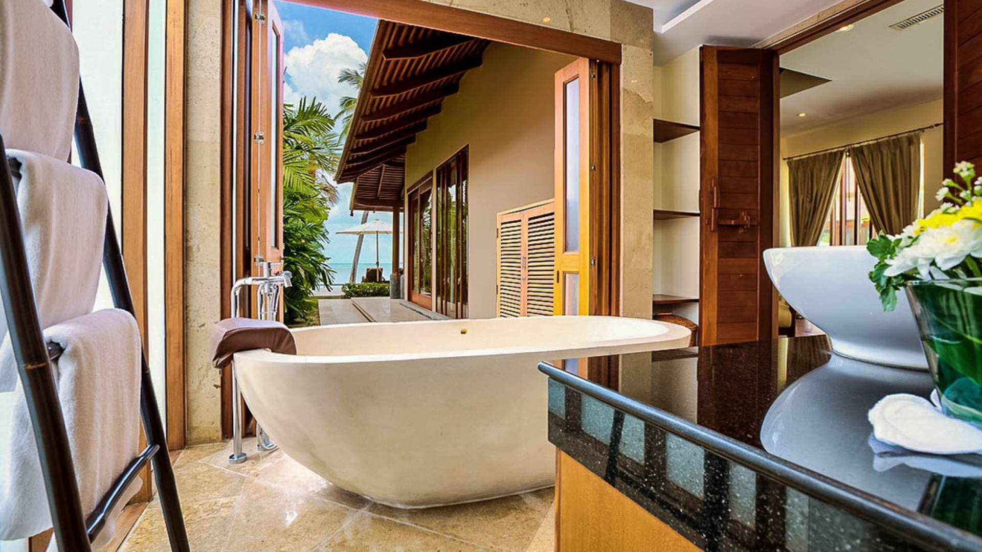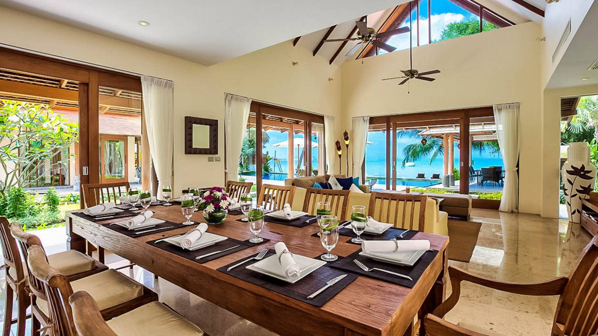 Οι καταπράσινοι εξωτερικοί χώροι διαθέτουν τροπικούς κήπους, προσφέροντας διάφορους χαλαρωτικούς χώρους για διαλογισμό ή ανάγνωση βιβλίου. Πολυτελείς εσωτερικοί και εξωτερικοί χώροι καθιστικού και τραπεζαρίας, ογκώδη, πολυτελή υπνοδωμάτια εξοπλισμένα με λινά και στρώματα εξαιρετικής ποιότητας και οι σαλάτες δίπλα στην παραλία στεγάζονται σε ξεχωριστά περίπτερα με ξεχωριστές στέγες με ταϊλανδέζικο στιλ. Στους κήπους της παραλίας, μια ιδιωτική πισίνα υπερχείλισης μήκους 11 μέτρων συγχωνεύεται με τον ορίζοντα. Κάντε μια βουτιά στην πισίνα ή τη θάλασσα για μια δροσιστική βουτιά για να δροσίσετε τη ζέστη και απολαύστε το φως της ημέρας στις ξαπλώστρες δίπλα στην πισίνα κοιτάζοντας τον απέραντο ορίζοντα. Πάρτε το πρωινό σας ανάμεσα σε τροπικά τοπία μπροστά στη θάλασσα και συγκεντρωθείτε με τους αγαπημένους σας για να απολαύσετε νόστιμα γεύματα στα όμορφα τραπέζια alfresco.