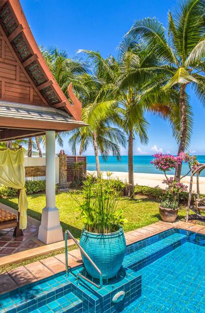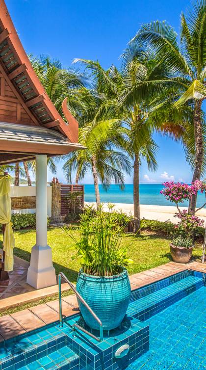 Το Miskawaan Villas Samui, που σημαίνει Κήπος του Βούδα, είναι μια συλλογή από 11 πολυτελείς βίλες στην παραλία. 10 βρίσκονται με θέα την εκπληκτική χρυσή άμμο του Maenam και το ένα βρίσκεται στην παρθένα παραλία Bangrak. Το Miskawaan Villas Samui προσφέρει την ιδανική απόδραση για ξυπόλυτη και πολυτελή βίλα με τους φίλους, την οικογένεια ή τους συνεργάτες σας. Η Villa Bougainvillea στο Miskawaan Villas Samui είναι η πολυτελής και πλούσια βίλα μας στην παραλία με 4 υπνοδωμάτια και μπορεί να φιλοξενήσει έως και 8 άτομα. Κάθε ένα από τα 4 υπνοδωμάτια βρίσκεται στο πίσω μέρος της βίλας γύρω από το κεντρικό μας μέρος - έναν τροπικό ταϊλανδέζικο κήπο. Μπορείτε να απολαύσετε τη θέα στον ωκεανό από το σαλόνι, την πισίνα και το υπαίθριο καθιστικό και τραπεζαρία σας.