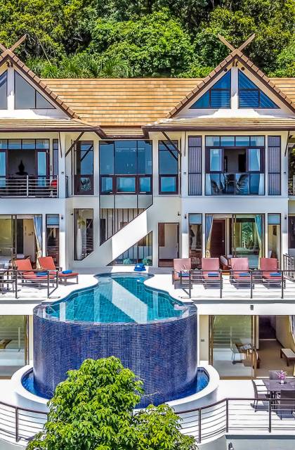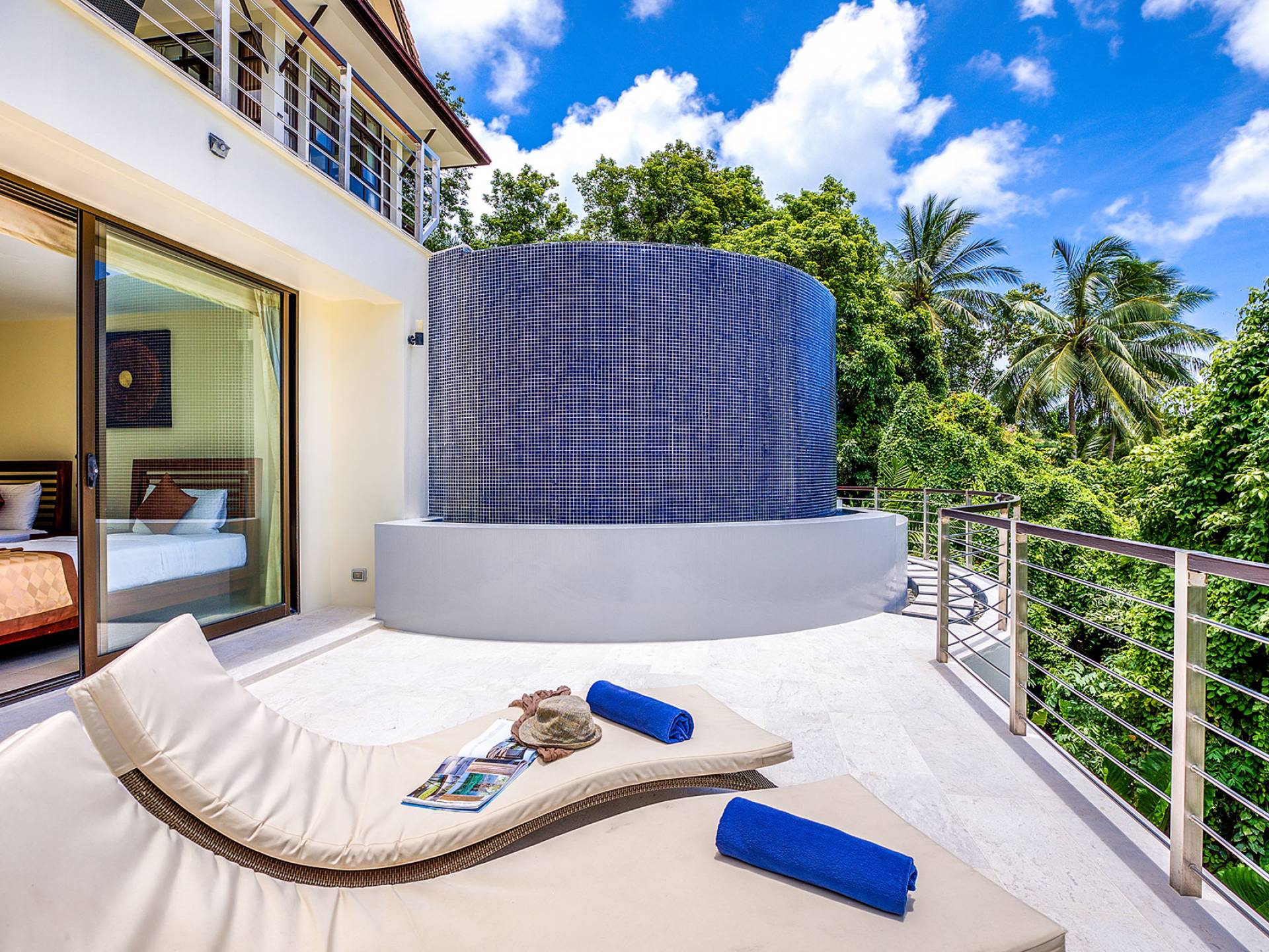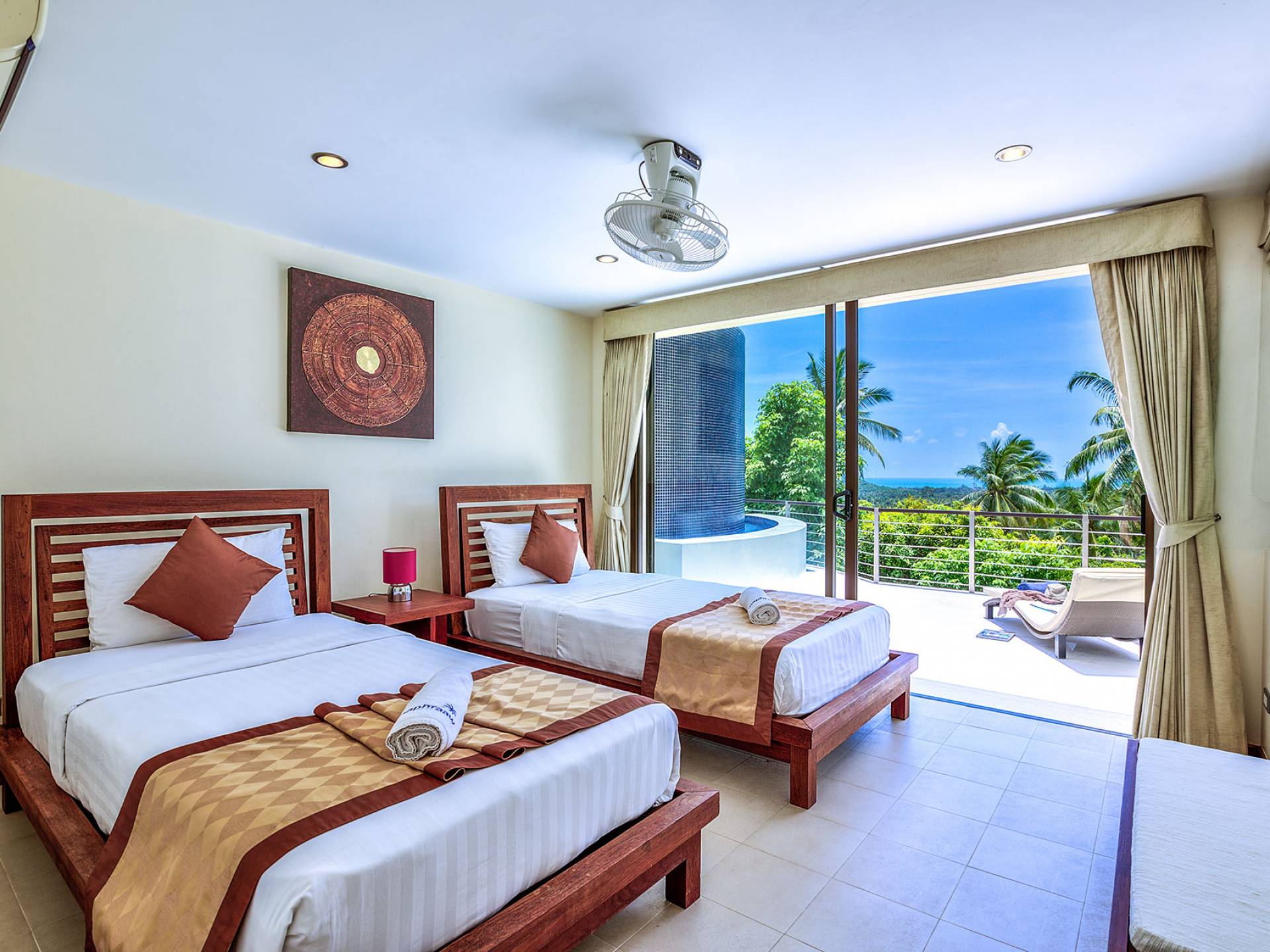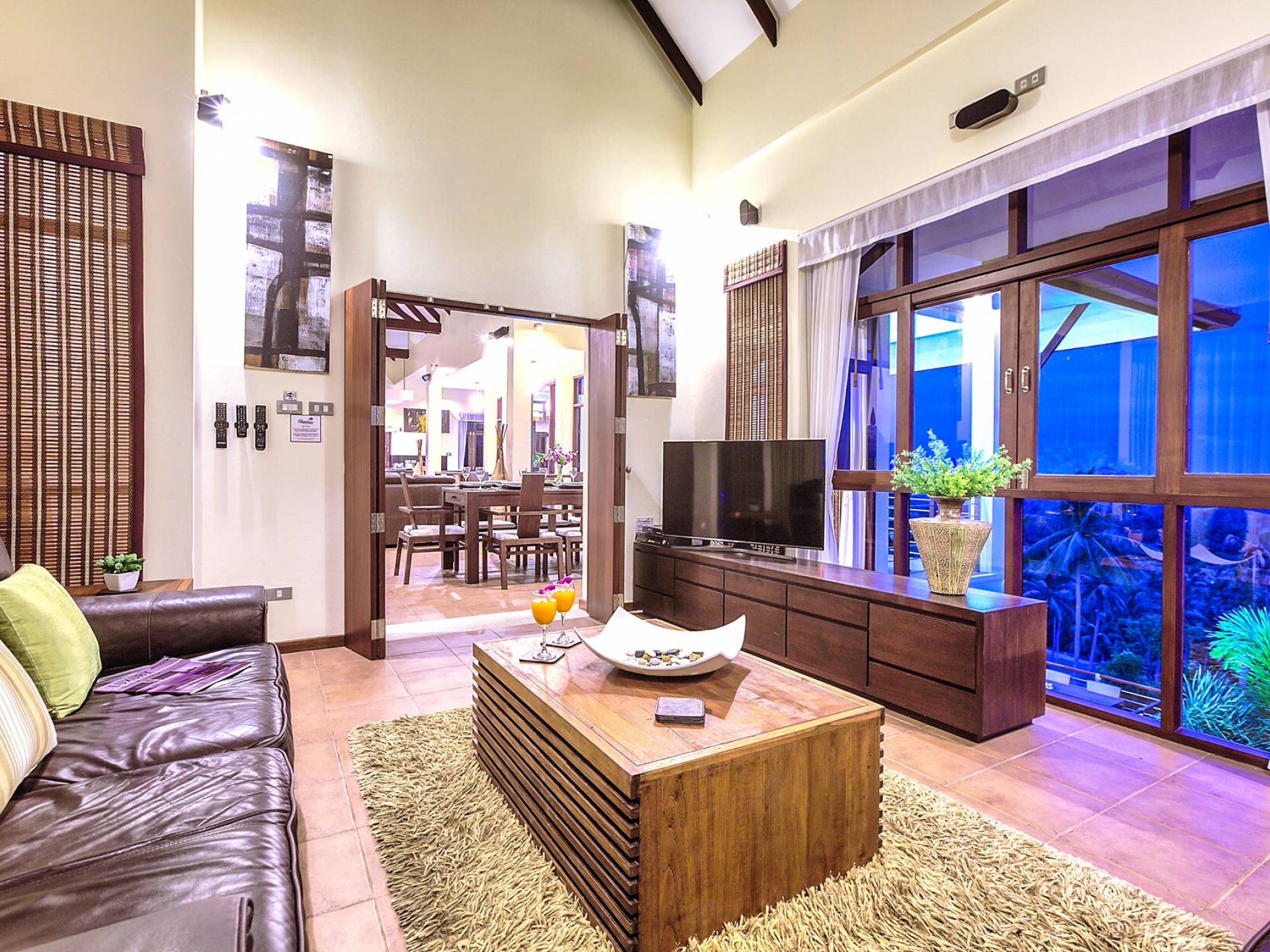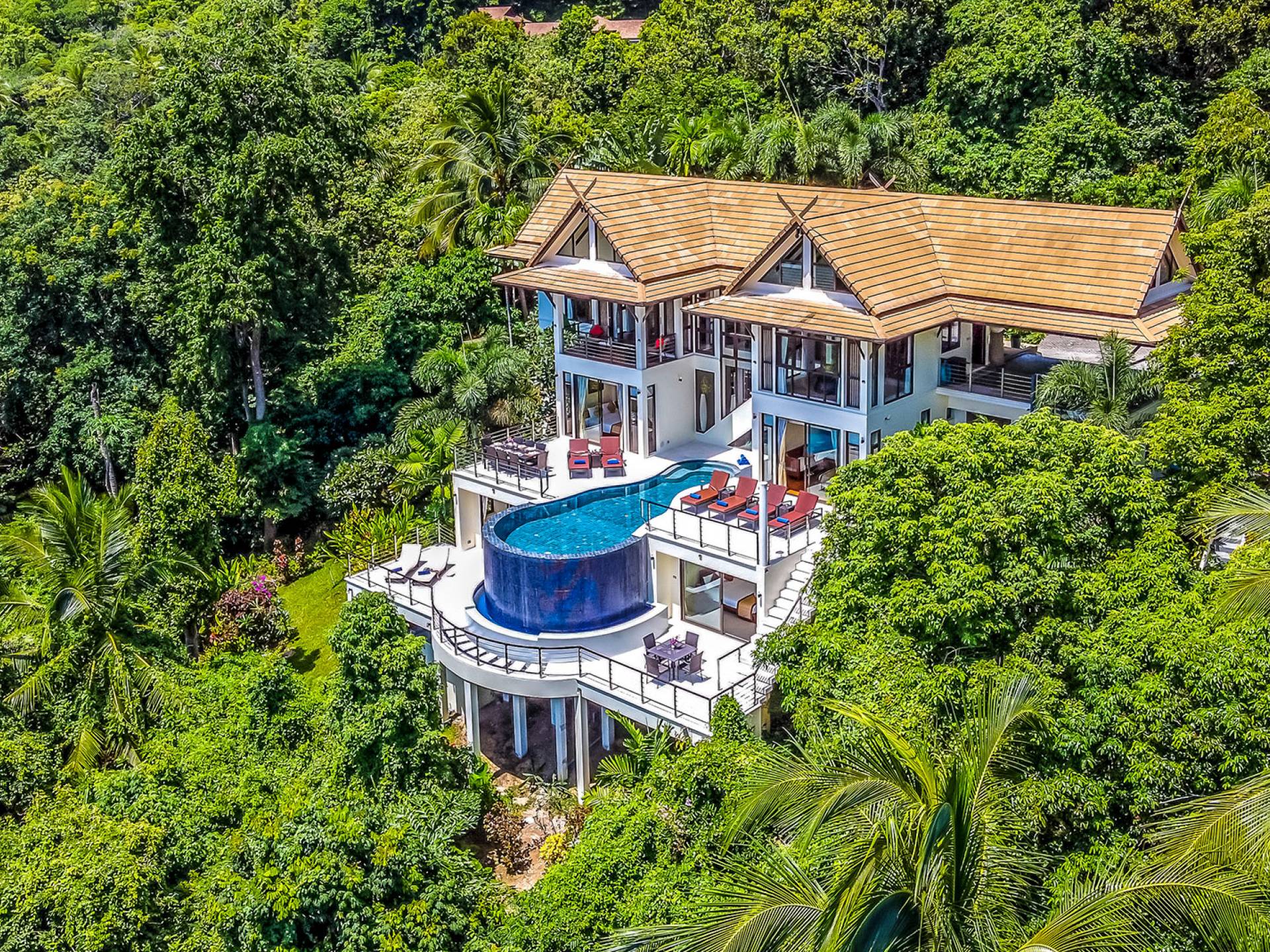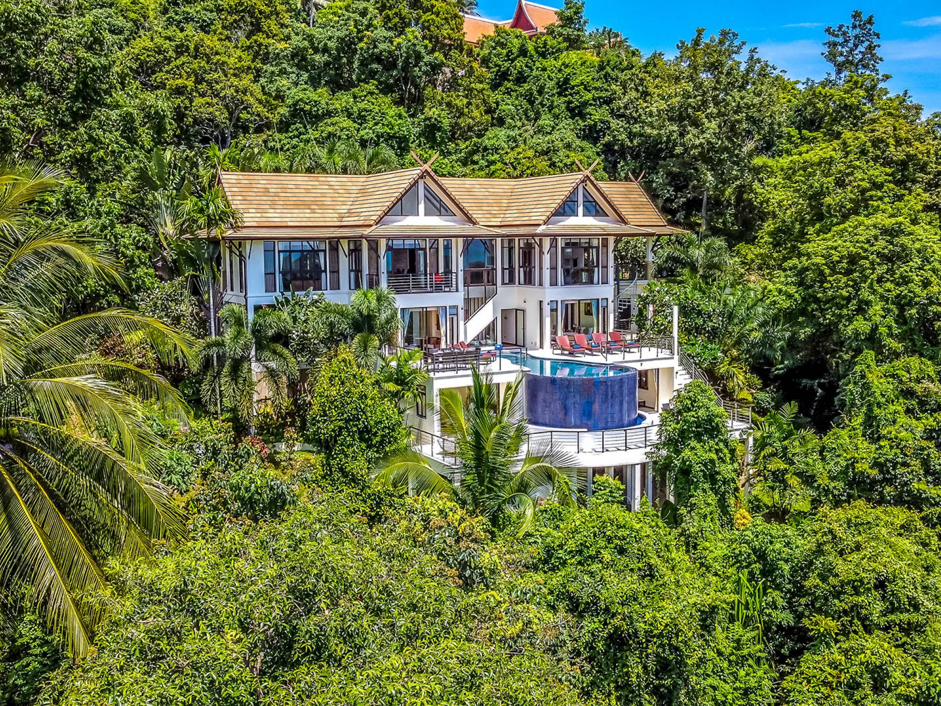 Η ευρυχωρία και η καινοτόμος διάταξη της βίλας την καθιστούν το απόλυτο τροπικό καταφύγιο για μεγάλες οικογένειες και ζευγάρια που μοιράζονται το κοινό που εκτιμούν την ιδιωτικότητα καθώς και τους ευρύχωρους και πολυτελείς χώρους ενιαίας διαρρύθμισης που μπορείτε να απολαύσετε μαζί. Η μαγευτική δασώδης τοποθεσία αυτής της εντυπωσιακής βίλας προσφέρει ιδιωτικότητα και απομόνωση. Μόλις μπείτε στο Villa Maphraaw, γίνεται προφανές ότι αυτό το κατάλυμα έχει σχεδιαστεί, κατασκευαστεί και επιπλωθεί με εξαιρετικά υψηλά πρότυπα. Στο επίπεδο της εισόδου της βίλας βρίσκεται ένας βολικός μεγάλος καλυμμένος χώρος στάθμευσης αυτοκινήτων, πέρα από τον οποίο θα βρείτε μαγευτικούς καταπράσινους τροπικούς κήπους και μια γοητευτική διακοσμητική λιμνούλα με ψάρια. Αυτό που κάνει αυτή τη βίλα 650τμ μοναδική είναι η εκπληκτική εσωτερική της σχεδίαση που δημιουργήθηκε από φυσικές υφές και τόνους, η απαράμιλλη τοποθεσία της, η εκπληκτική της θέα και τα πέντε ευρύχωρα και άνετα υπνοδωμάτιά της που έχουν όλα ιδιωτικό μπάνιο, τέσσερα από τα οποία έχουν υπέροχη θέα. το τροπικό τροπικό δάσος, ο ωκεανός και το νησί πέρα από αυτό.