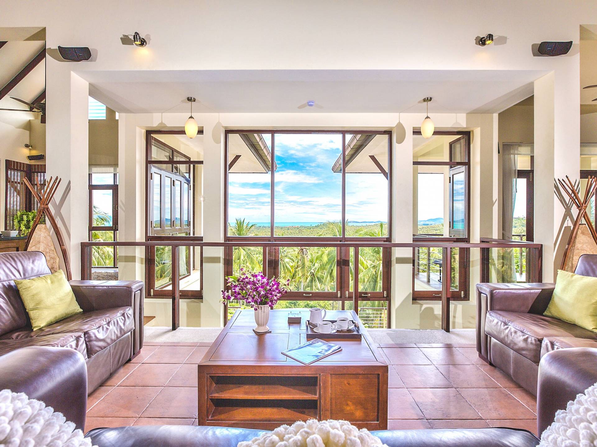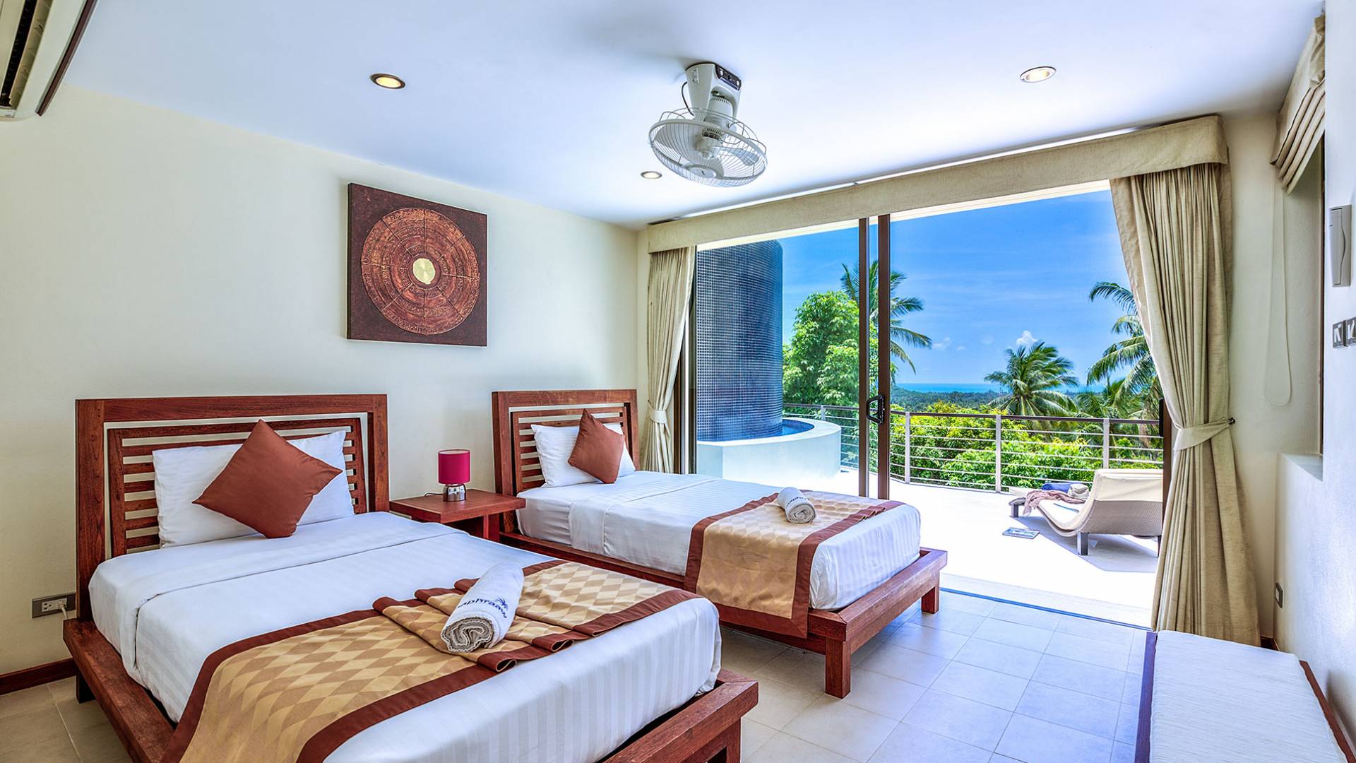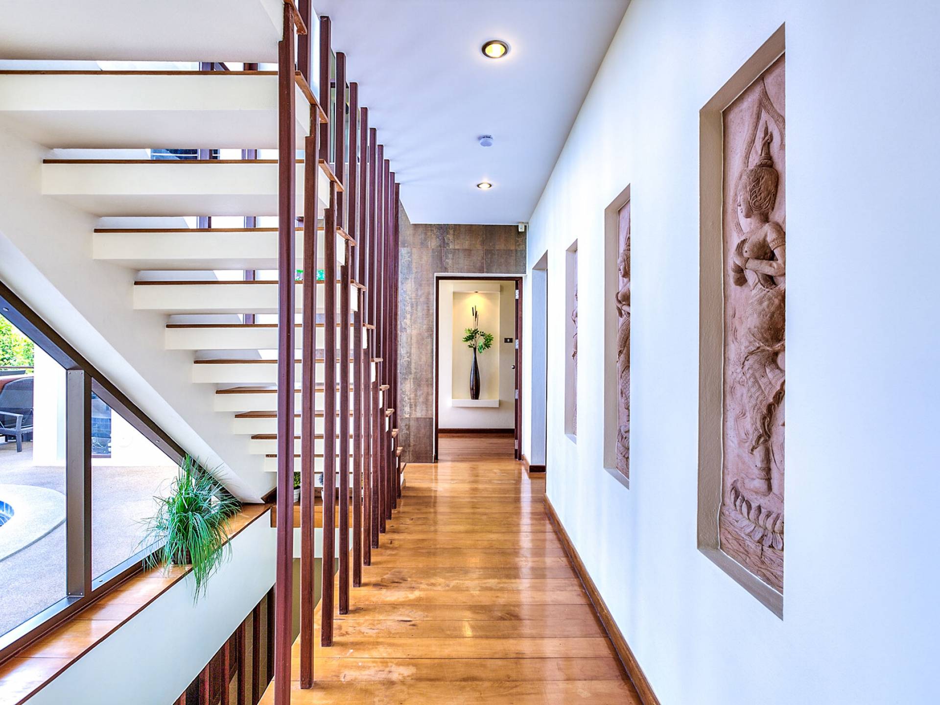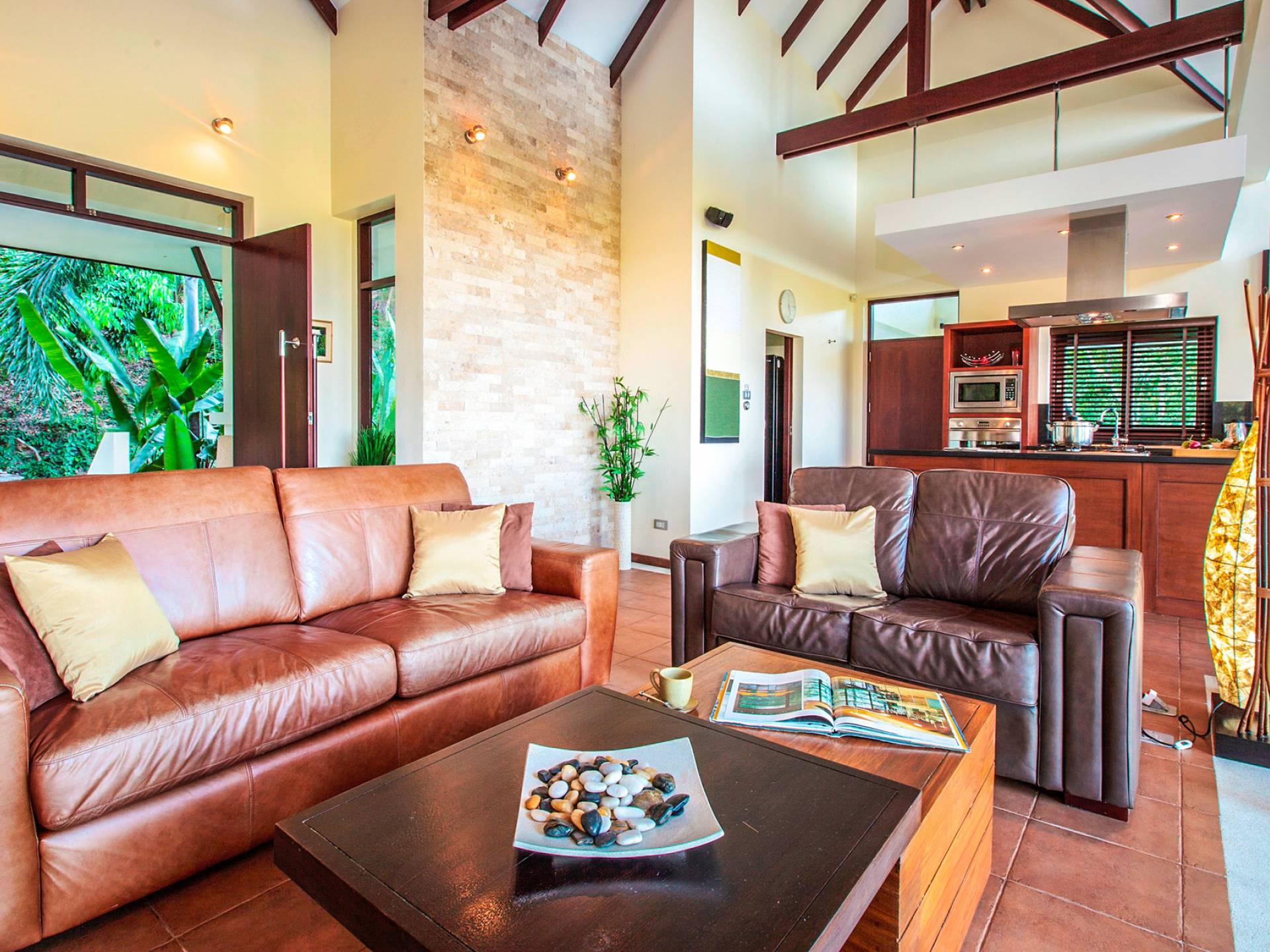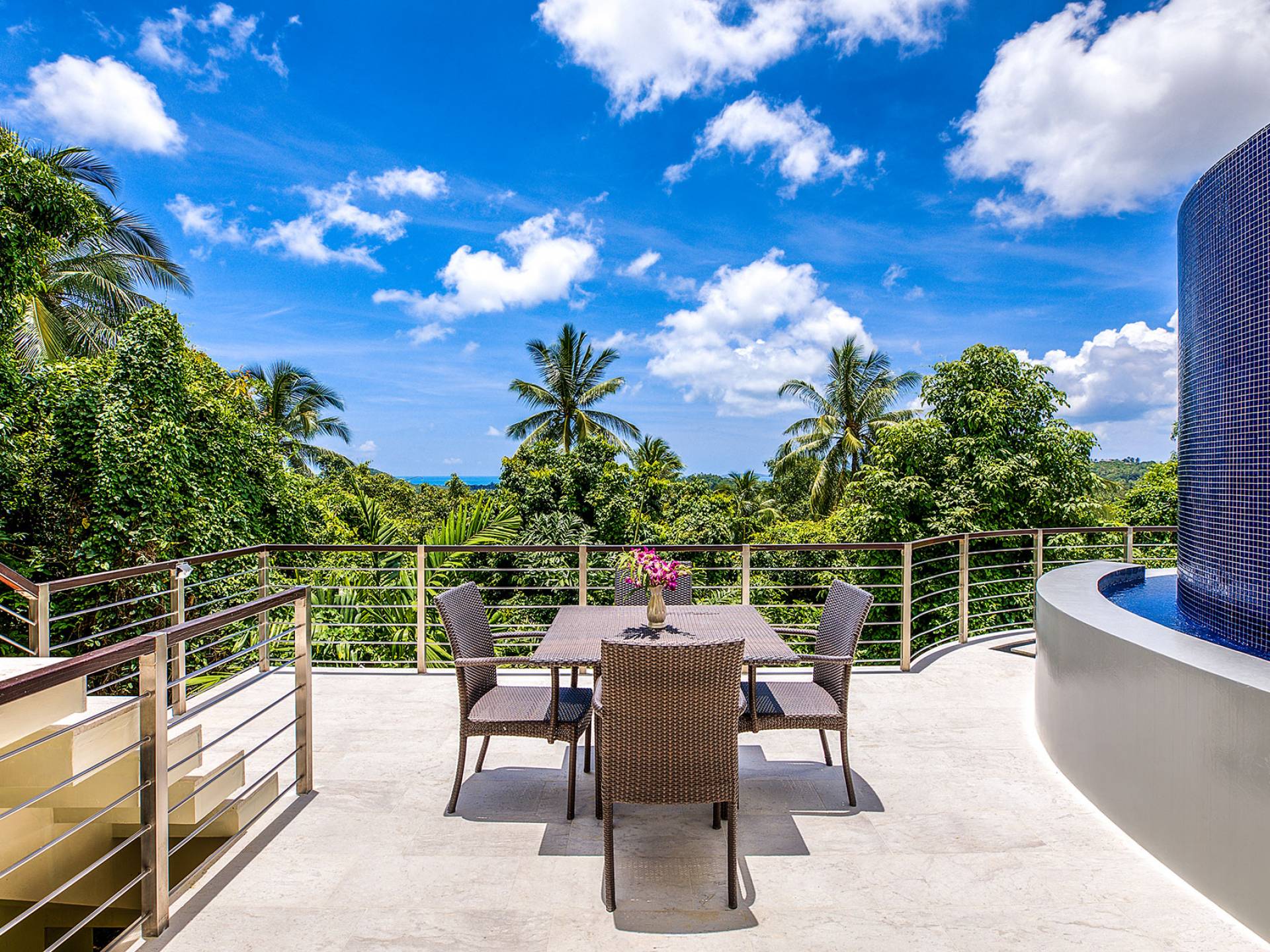 Η ευρυχωρία και η καινοτόμος διάταξη της βίλας την καθιστούν το απόλυτο τροπικό καταφύγιο για μεγάλες οικογένειες και ζευγάρια που μοιράζονται το κοινό που εκτιμούν την ιδιωτικότητα καθώς και τους ευρύχωρους και πολυτελείς χώρους ενιαίας διαρρύθμισης που μπορείτε να απολαύσετε μαζί. Η μαγευτική δασώδης τοποθεσία αυτής της εντυπωσιακής βίλας προσφέρει ιδιωτικότητα και απομόνωση. Μόλις μπείτε στο Villa Maphraaw, γίνεται προφανές ότι αυτό το κατάλυμα έχει σχεδιαστεί, κατασκευαστεί και επιπλωθεί με εξαιρετικά υψηλά πρότυπα. Στο επίπεδο της εισόδου της βίλας βρίσκεται ένας βολικός μεγάλος καλυμμένος χώρος στάθμευσης αυτοκινήτων, πέρα από τον οποίο θα βρείτε μαγευτικούς καταπράσινους τροπικούς κήπους και μια γοητευτική διακοσμητική λιμνούλα με ψάρια. Αυτό που κάνει αυτή τη βίλα 650τμ μοναδική είναι η εκπληκτική εσωτερική της σχεδίαση που δημιουργήθηκε από φυσικές υφές και τόνους, η απαράμιλλη τοποθεσία της, η εκπληκτική της θέα και τα πέντε ευρύχωρα και άνετα υπνοδωμάτιά της που έχουν όλα ιδιωτικό μπάνιο, τέσσερα από τα οποία έχουν υπέροχη θέα. το τροπικό τροπικό δάσος, ο ωκεανός και το νησί πέρα από αυτό.