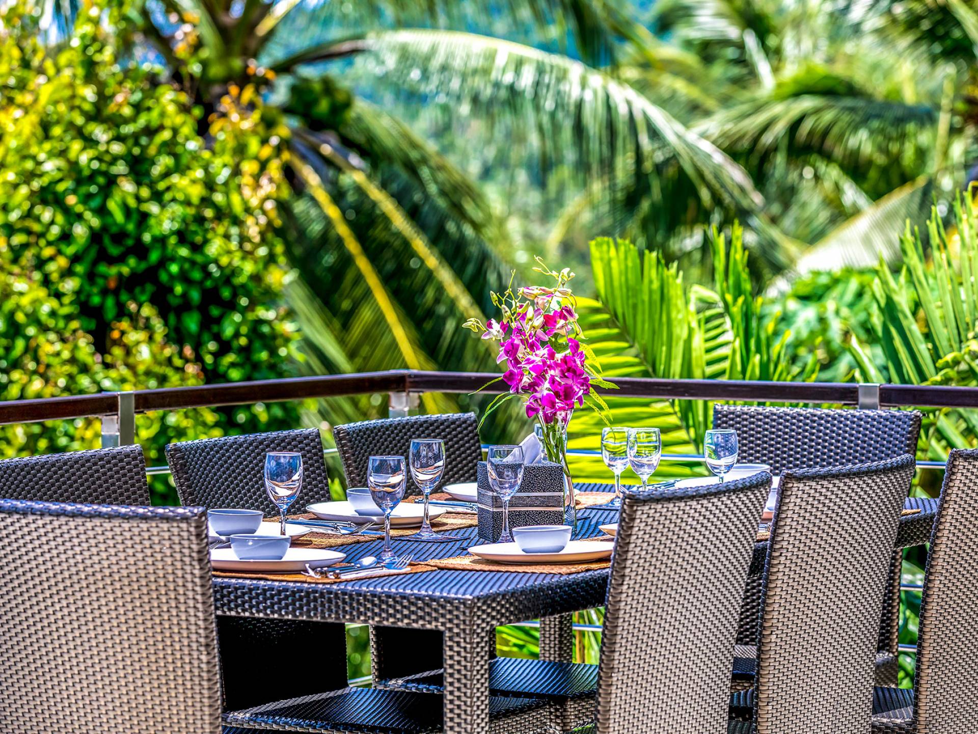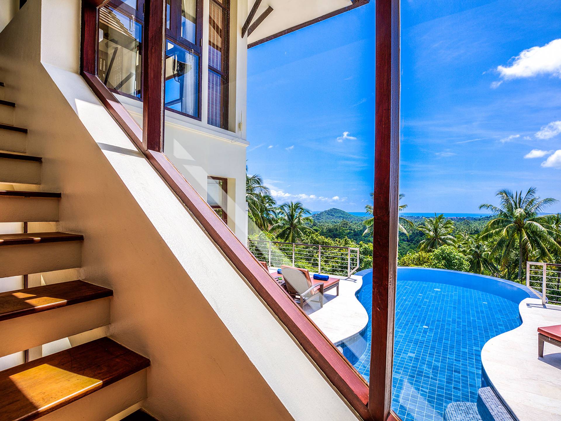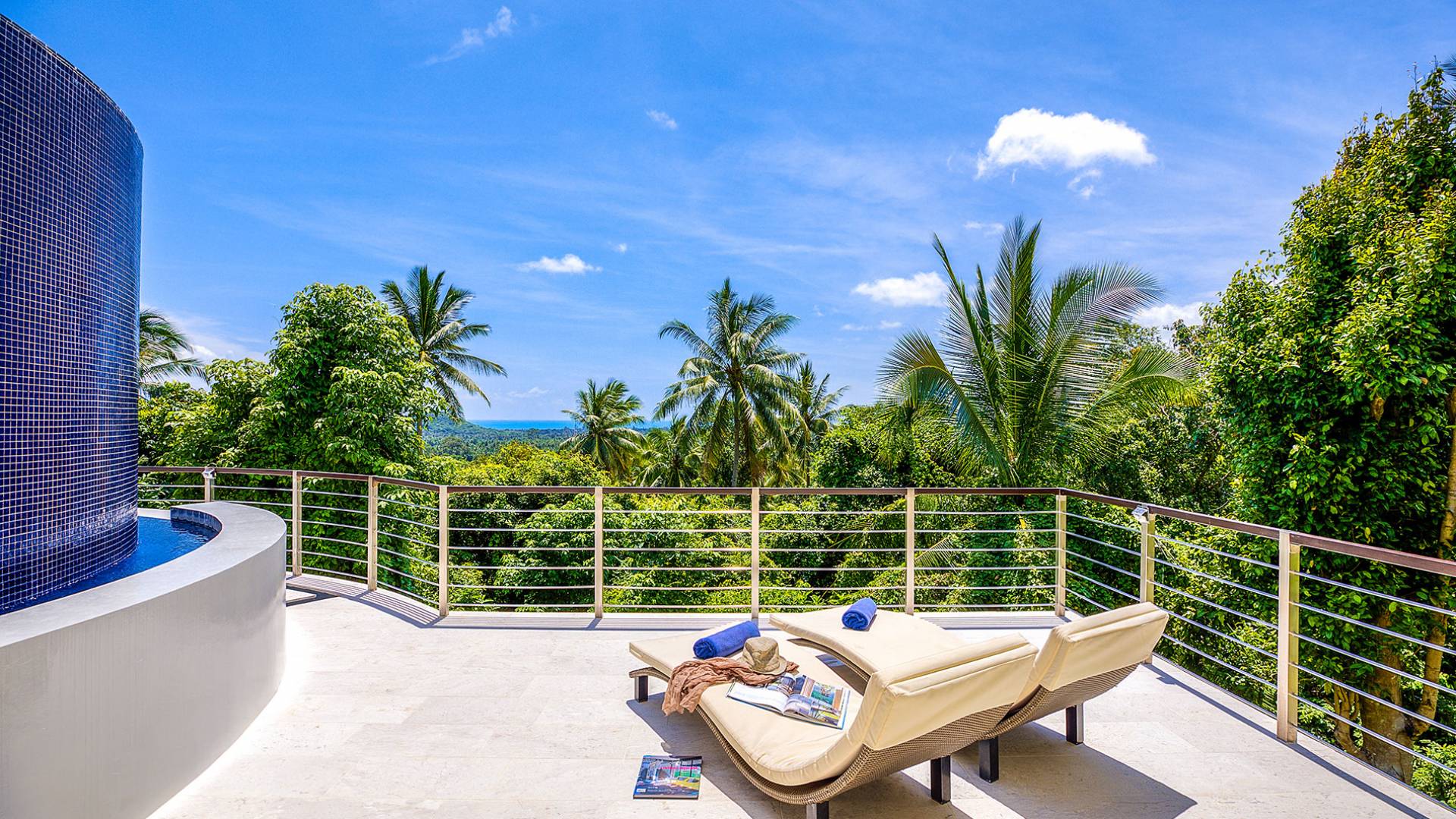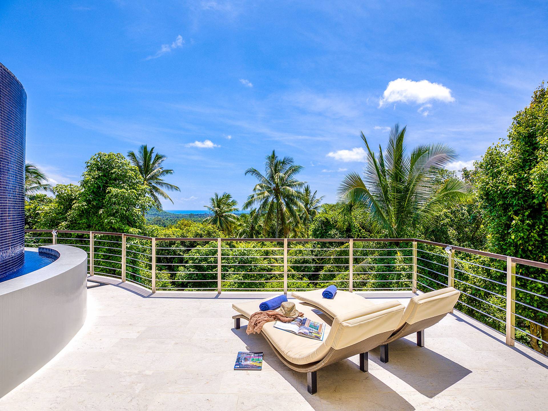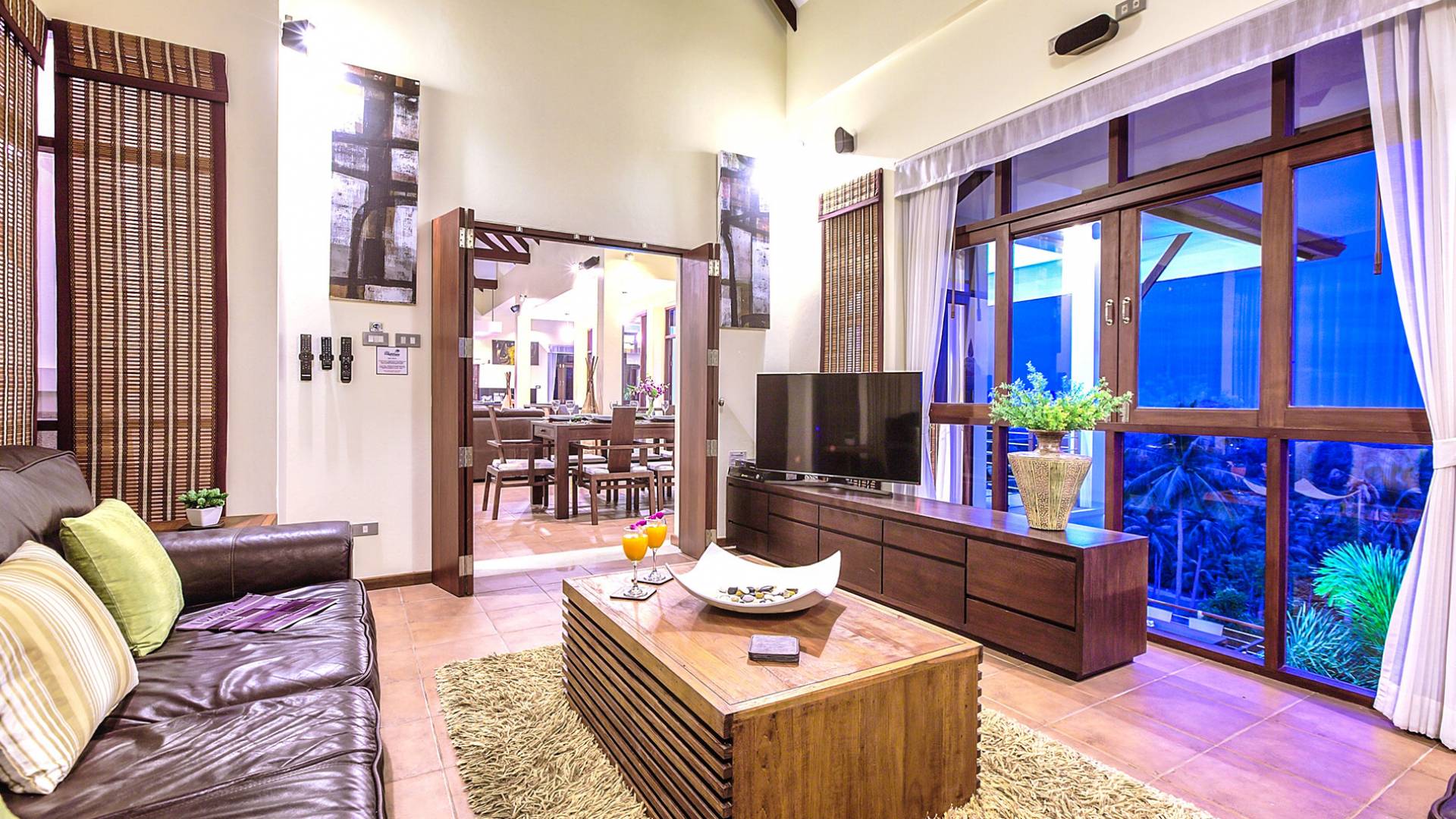 Η ευρυχωρία και η καινοτόμος διάταξη της βίλας την καθιστούν το απόλυτο τροπικό καταφύγιο για μεγάλες οικογένειες και ζευγάρια που μοιράζονται το κοινό που εκτιμούν την ιδιωτικότητα καθώς και τους ευρύχωρους και πολυτελείς χώρους ενιαίας διαρρύθμισης που μπορείτε να απολαύσετε μαζί. Η μαγευτική δασώδης τοποθεσία αυτής της εντυπωσιακής βίλας προσφέρει ιδιωτικότητα και απομόνωση. Μόλις μπείτε στο Villa Maphraaw, γίνεται προφανές ότι αυτό το κατάλυμα έχει σχεδιαστεί, κατασκευαστεί και επιπλωθεί με εξαιρετικά υψηλά πρότυπα. Στο επίπεδο της εισόδου της βίλας βρίσκεται ένας βολικός μεγάλος καλυμμένος χώρος στάθμευσης αυτοκινήτων, πέρα από τον οποίο θα βρείτε μαγευτικούς καταπράσινους τροπικούς κήπους και μια γοητευτική διακοσμητική λιμνούλα με ψάρια. Αυτό που κάνει αυτή τη βίλα 650τμ μοναδική είναι η εκπληκτική εσωτερική της σχεδίαση που δημιουργήθηκε από φυσικές υφές και τόνους, η απαράμιλλη τοποθεσία της, η εκπληκτική της θέα και τα πέντε ευρύχωρα και άνετα υπνοδωμάτιά της που έχουν όλα ιδιωτικό μπάνιο, τέσσερα από τα οποία έχουν υπέροχη θέα. το τροπικό τροπικό δάσος, ο ωκεανός και το νησί πέρα από αυτό.