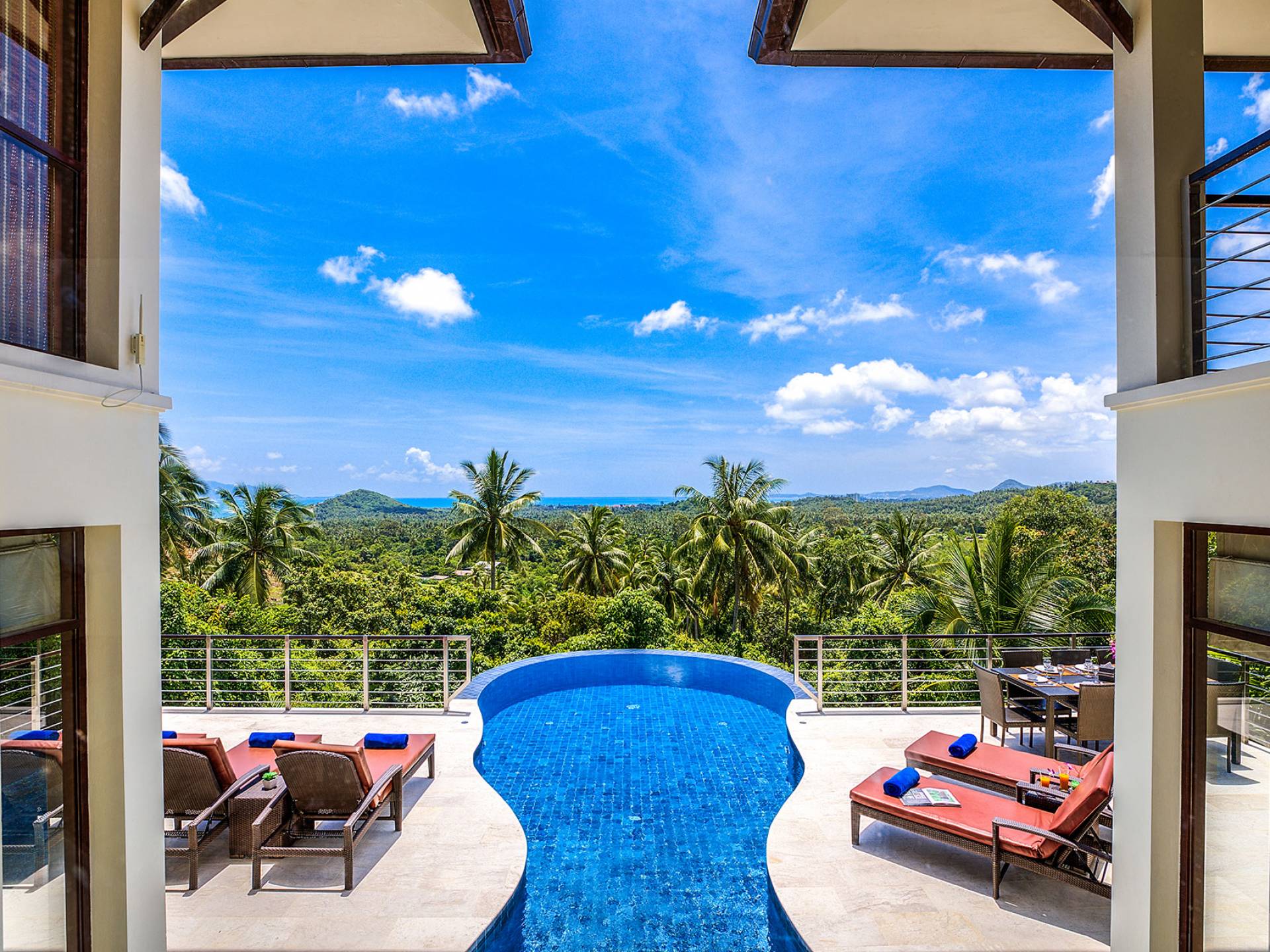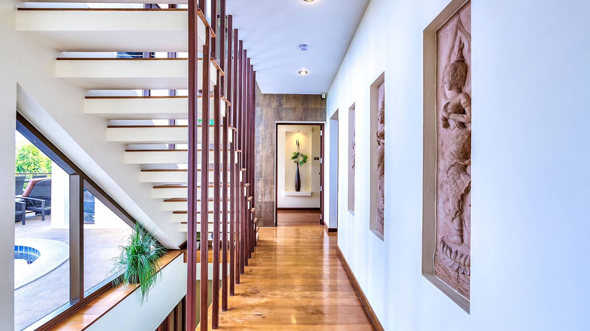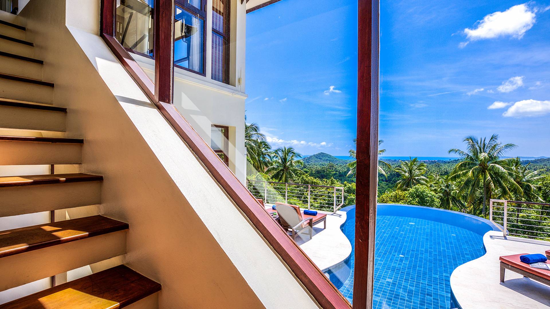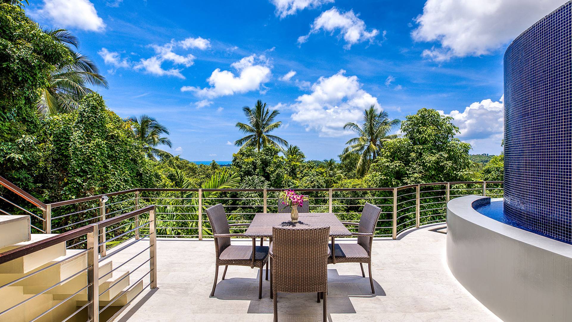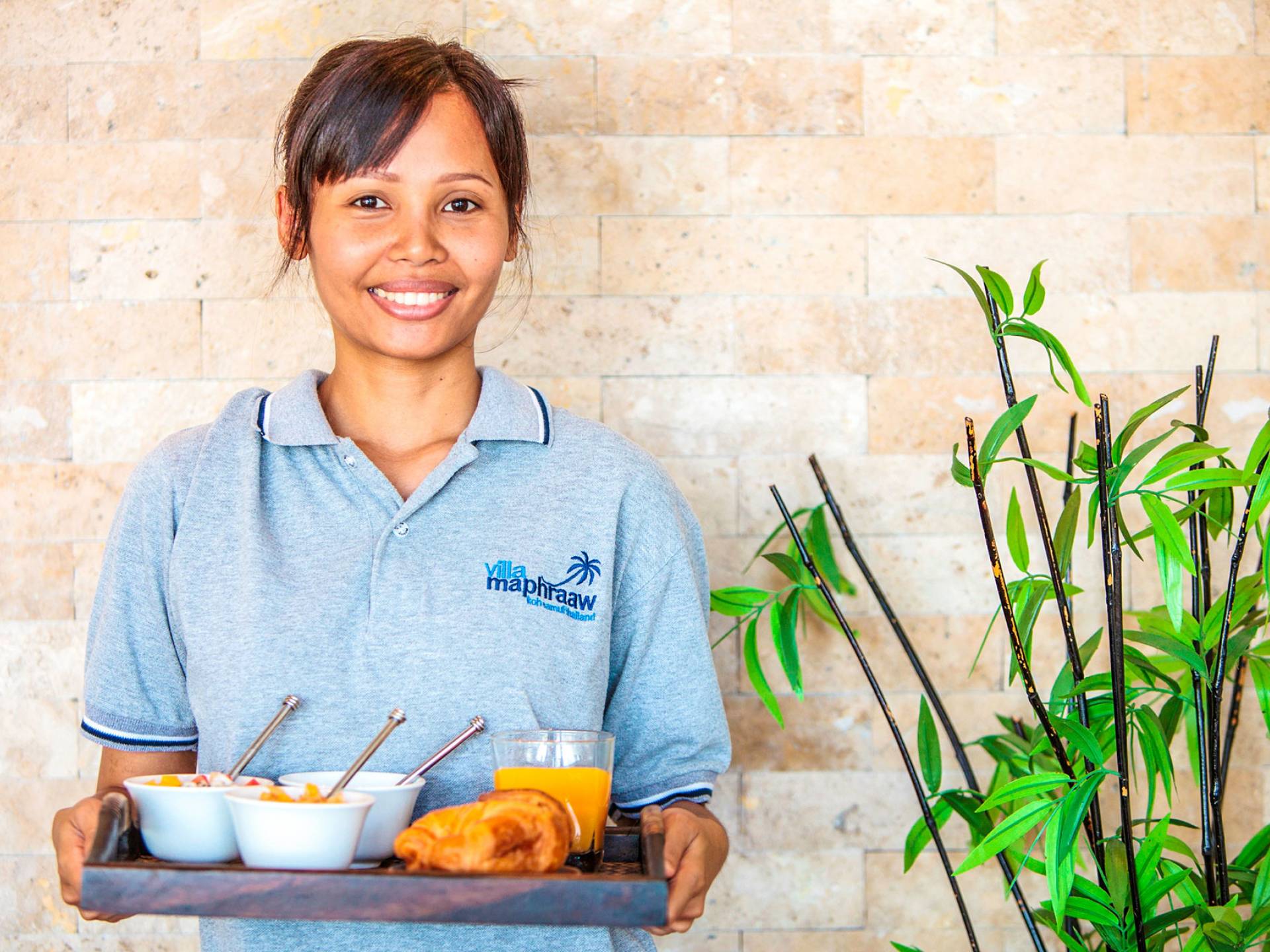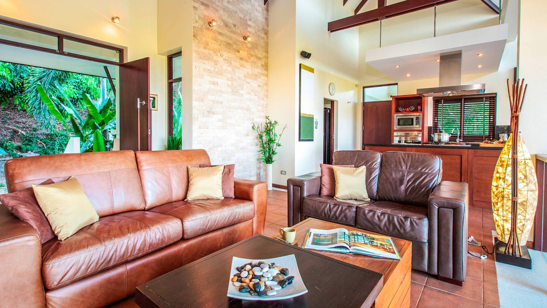 Η ευρυχωρία και η καινοτόμος διάταξη της βίλας την καθιστούν το απόλυτο τροπικό καταφύγιο για μεγάλες οικογένειες και ζευγάρια που μοιράζονται το κοινό που εκτιμούν την ιδιωτικότητα καθώς και τους ευρύχωρους και πολυτελείς χώρους ενιαίας διαρρύθμισης που μπορείτε να απολαύσετε μαζί. Η μαγευτική δασώδης τοποθεσία αυτής της εντυπωσιακής βίλας προσφέρει ιδιωτικότητα και απομόνωση. Μόλις μπείτε στο Villa Maphraaw, γίνεται προφανές ότι αυτό το κατάλυμα έχει σχεδιαστεί, κατασκευαστεί και επιπλωθεί με εξαιρετικά υψηλά πρότυπα. Στο επίπεδο της εισόδου της βίλας βρίσκεται ένας βολικός μεγάλος καλυμμένος χώρος στάθμευσης αυτοκινήτων, πέρα από τον οποίο θα βρείτε μαγευτικούς καταπράσινους τροπικούς κήπους και μια γοητευτική διακοσμητική λιμνούλα με ψάρια. Αυτό που κάνει αυτή τη βίλα 650τμ μοναδική είναι η εκπληκτική εσωτερική της σχεδίαση που δημιουργήθηκε από φυσικές υφές και τόνους, η απαράμιλλη τοποθεσία της, η εκπληκτική της θέα και τα πέντε ευρύχωρα και άνετα υπνοδωμάτιά της που έχουν όλα ιδιωτικό μπάνιο, τέσσερα από τα οποία έχουν υπέροχη θέα. το τροπικό τροπικό δάσος, ο ωκεανός και το νησί πέρα από αυτό.