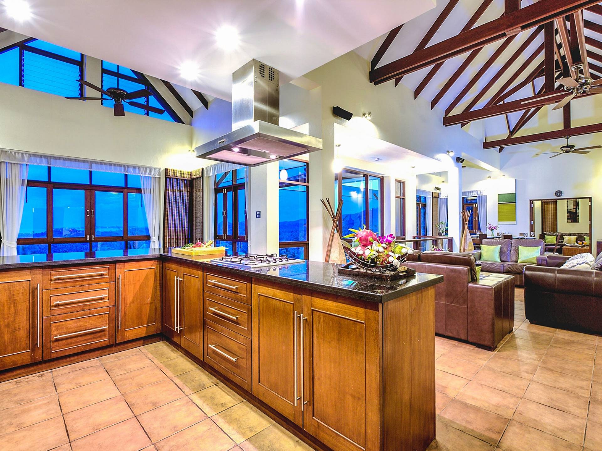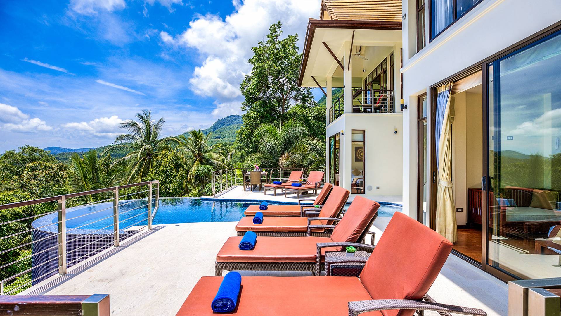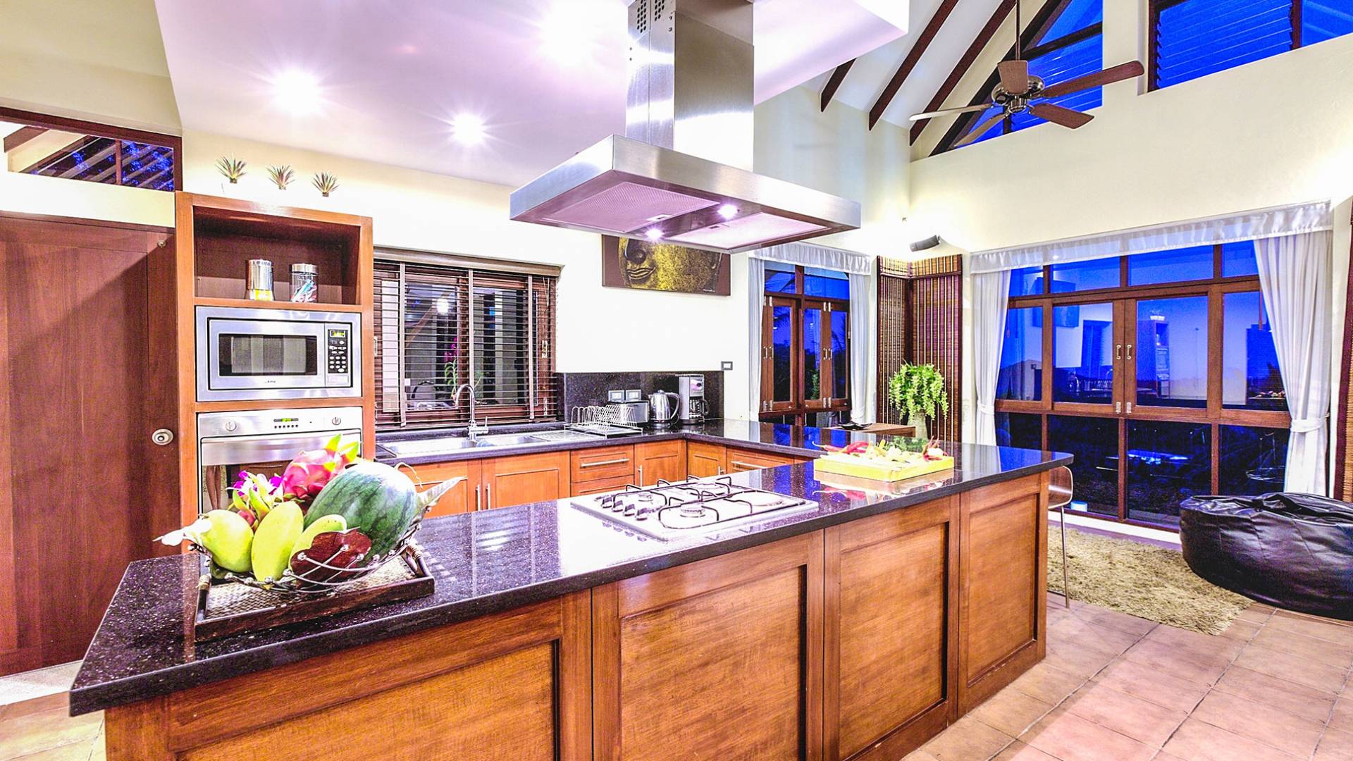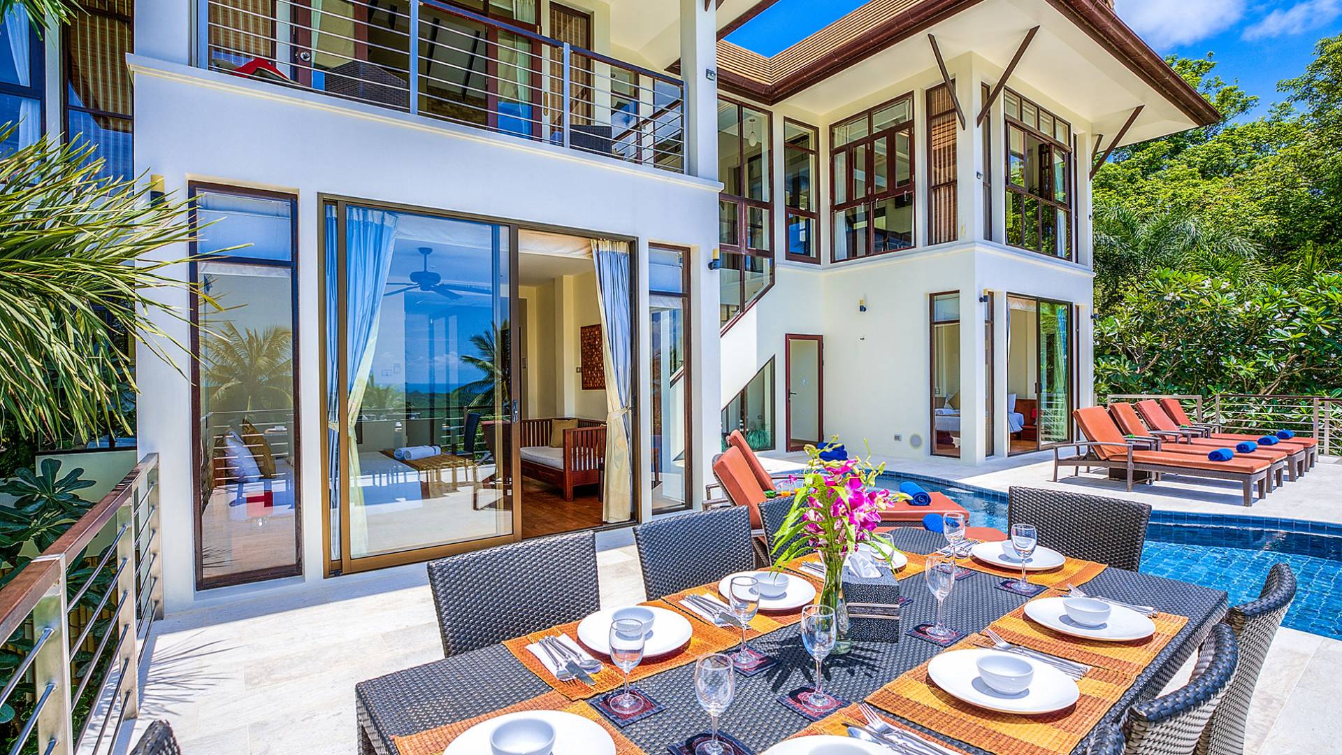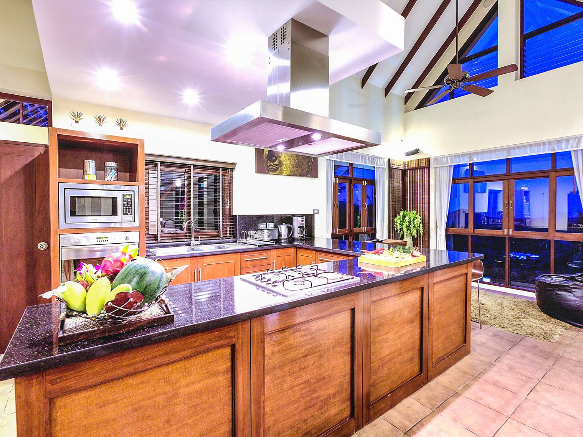 Η ευρυχωρία και η καινοτόμος διάταξη της βίλας την καθιστούν το απόλυτο τροπικό καταφύγιο για μεγάλες οικογένειες και ζευγάρια που μοιράζονται το κοινό που εκτιμούν την ιδιωτικότητα καθώς και τους ευρύχωρους και πολυτελείς χώρους ενιαίας διαρρύθμισης που μπορείτε να απολαύσετε μαζί. Η μαγευτική δασώδης τοποθεσία αυτής της εντυπωσιακής βίλας προσφέρει ιδιωτικότητα και απομόνωση. Μόλις μπείτε στο Villa Maphraaw, γίνεται προφανές ότι αυτό το κατάλυμα έχει σχεδιαστεί, κατασκευαστεί και επιπλωθεί με εξαιρετικά υψηλά πρότυπα. Στο επίπεδο της εισόδου της βίλας βρίσκεται ένας βολικός μεγάλος καλυμμένος χώρος στάθμευσης αυτοκινήτων, πέρα από τον οποίο θα βρείτε μαγευτικούς καταπράσινους τροπικούς κήπους και μια γοητευτική διακοσμητική λιμνούλα με ψάρια. Αυτό που κάνει αυτή τη βίλα 650τμ μοναδική είναι η εκπληκτική εσωτερική της σχεδίαση που δημιουργήθηκε από φυσικές υφές και τόνους, η απαράμιλλη τοποθεσία της, η εκπληκτική της θέα και τα πέντε ευρύχωρα και άνετα υπνοδωμάτιά της που έχουν όλα ιδιωτικό μπάνιο, τέσσερα από τα οποία έχουν υπέροχη θέα. το τροπικό τροπικό δάσος, ο ωκεανός και το νησί πέρα από αυτό.