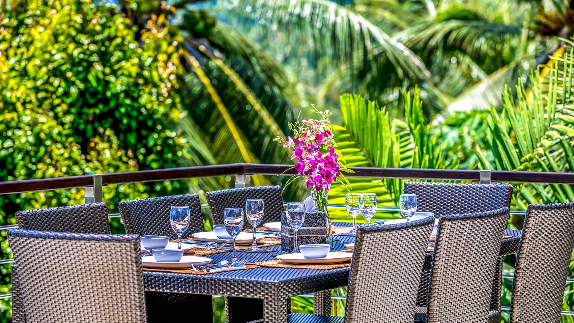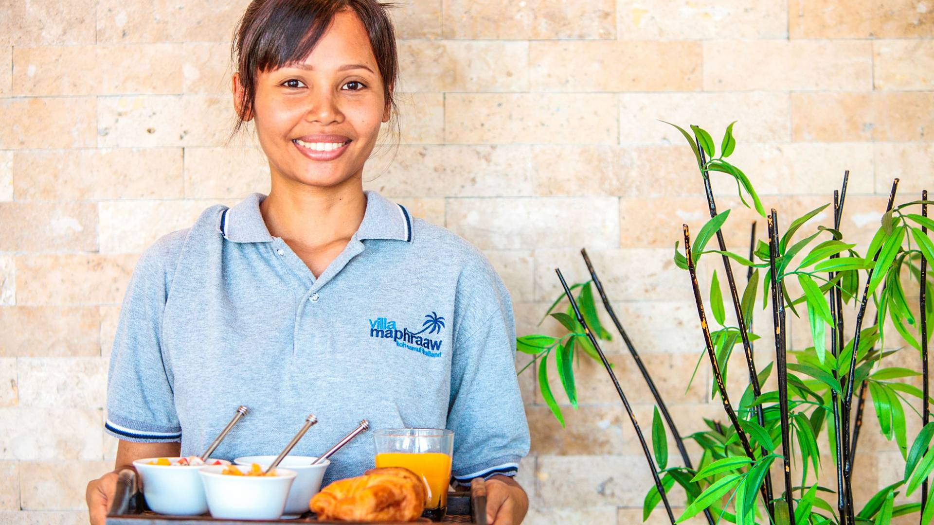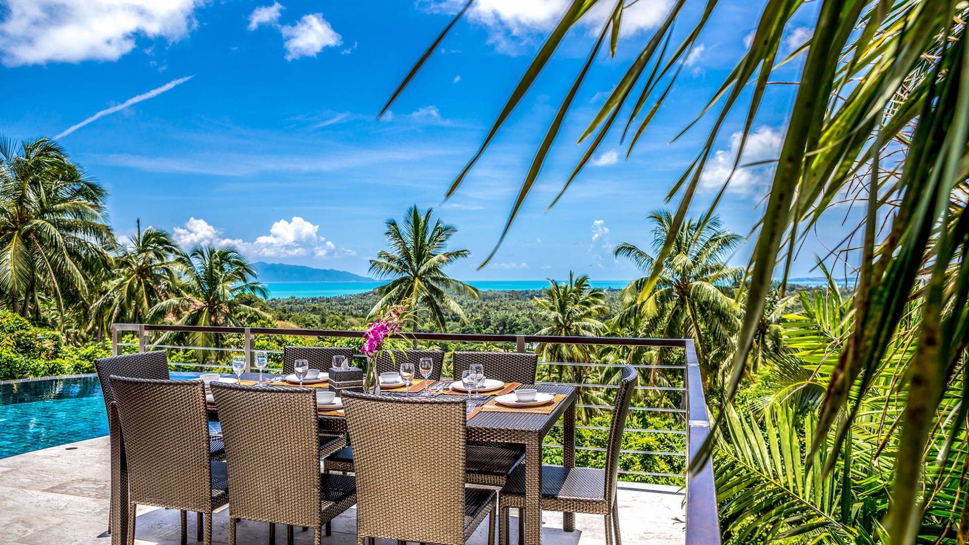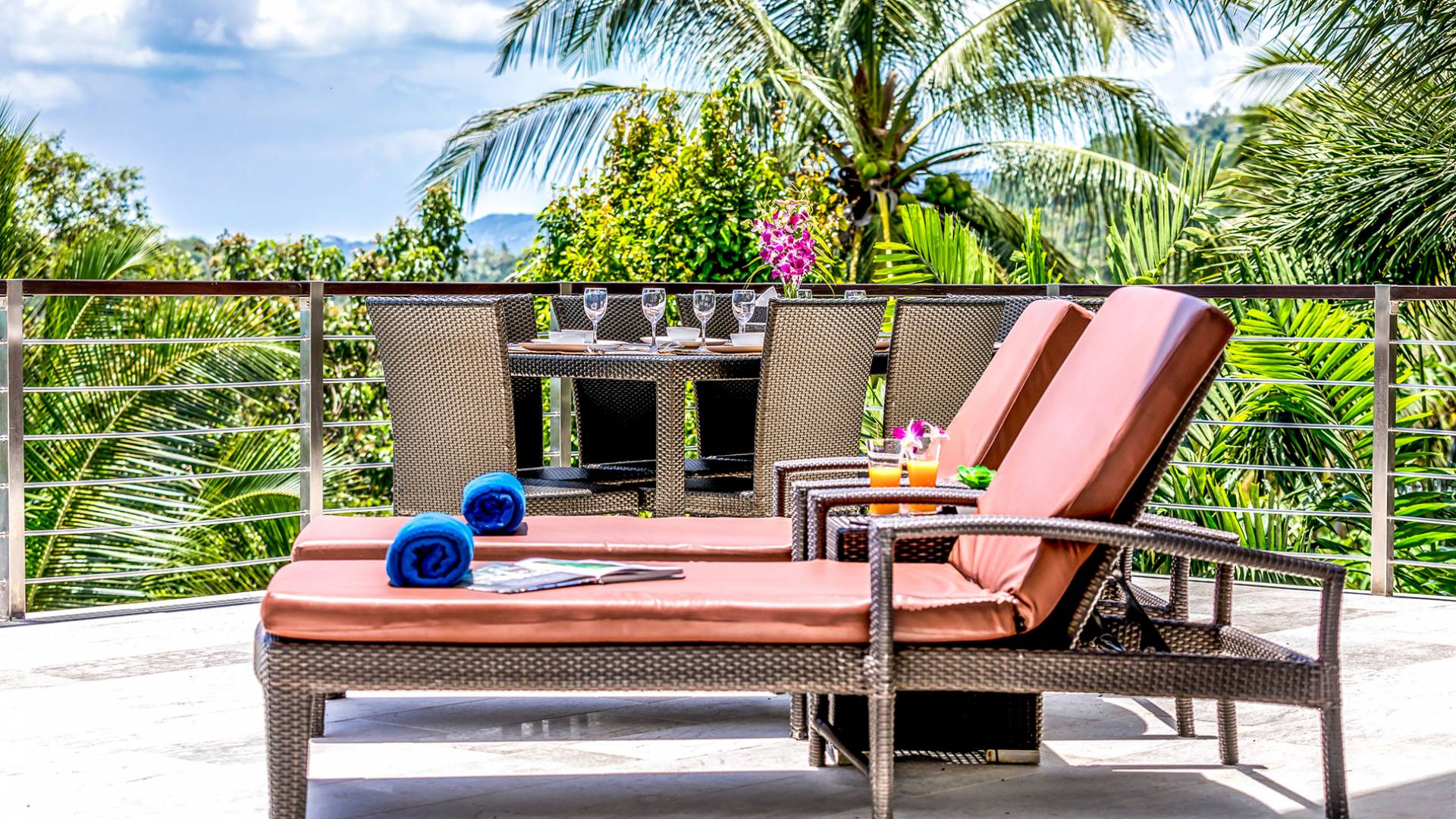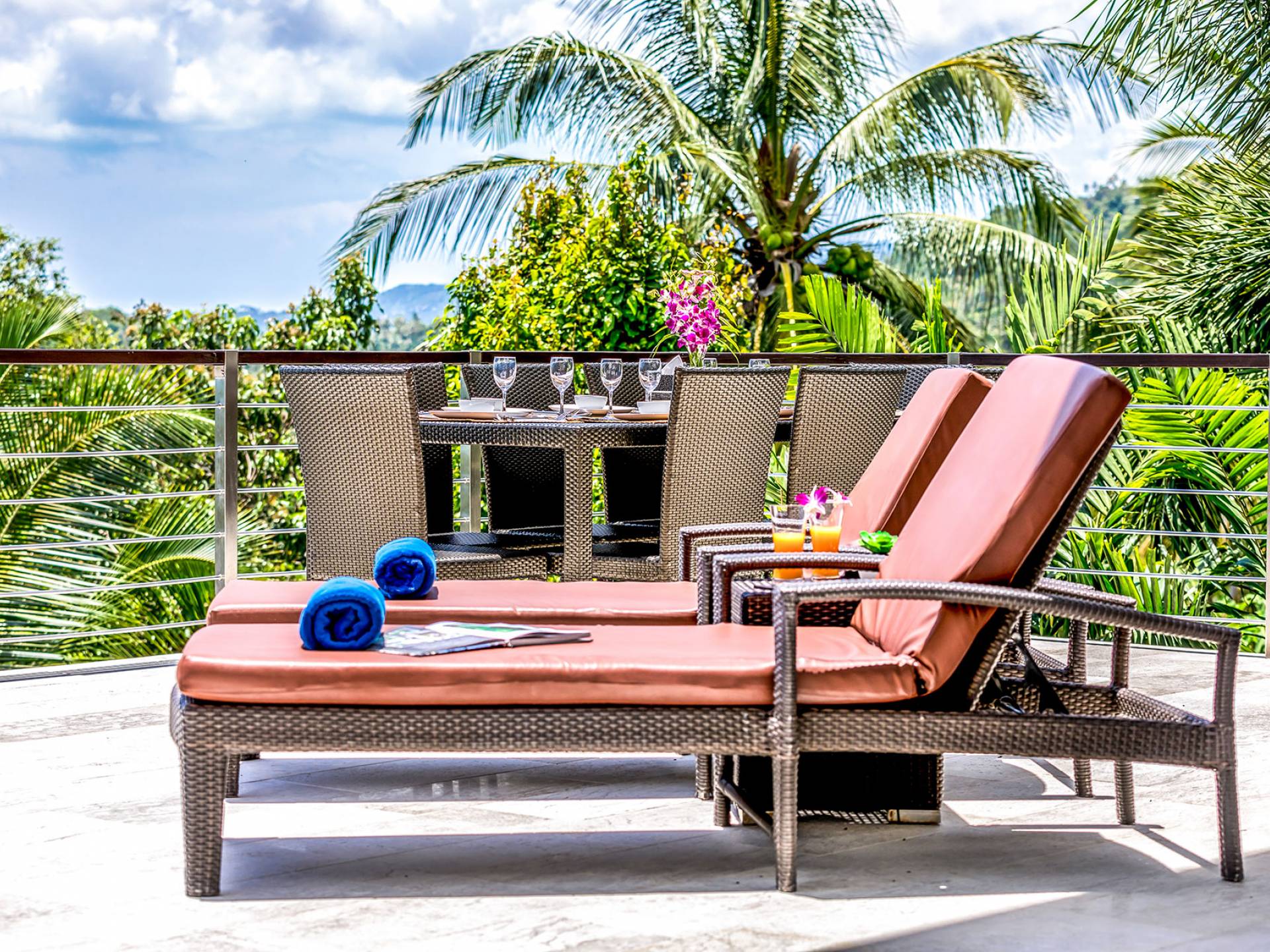 Η ευρυχωρία και η καινοτόμος διάταξη της βίλας την καθιστούν το απόλυτο τροπικό καταφύγιο για μεγάλες οικογένειες και ζευγάρια που μοιράζονται το κοινό που εκτιμούν την ιδιωτικότητα καθώς και τους ευρύχωρους και πολυτελείς χώρους ενιαίας διαρρύθμισης που μπορείτε να απολαύσετε μαζί. Η μαγευτική δασώδης τοποθεσία αυτής της εντυπωσιακής βίλας προσφέρει ιδιωτικότητα και απομόνωση. Μόλις μπείτε στο Villa Maphraaw, γίνεται προφανές ότι αυτό το κατάλυμα έχει σχεδιαστεί, κατασκευαστεί και επιπλωθεί με εξαιρετικά υψηλά πρότυπα. Στο επίπεδο της εισόδου της βίλας βρίσκεται ένας βολικός μεγάλος καλυμμένος χώρος στάθμευσης αυτοκινήτων, πέρα από τον οποίο θα βρείτε μαγευτικούς καταπράσινους τροπικούς κήπους και μια γοητευτική διακοσμητική λιμνούλα με ψάρια. Αυτό που κάνει αυτή τη βίλα 650τμ μοναδική είναι η εκπληκτική εσωτερική της σχεδίαση που δημιουργήθηκε από φυσικές υφές και τόνους, η απαράμιλλη τοποθεσία της, η εκπληκτική της θέα και τα πέντε ευρύχωρα και άνετα υπνοδωμάτιά της που έχουν όλα ιδιωτικό μπάνιο, τέσσερα από τα οποία έχουν υπέροχη θέα. το τροπικό τροπικό δάσος, ο ωκεανός και το νησί πέρα από αυτό.