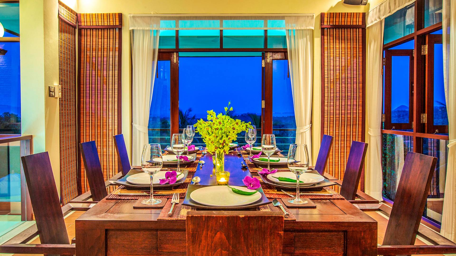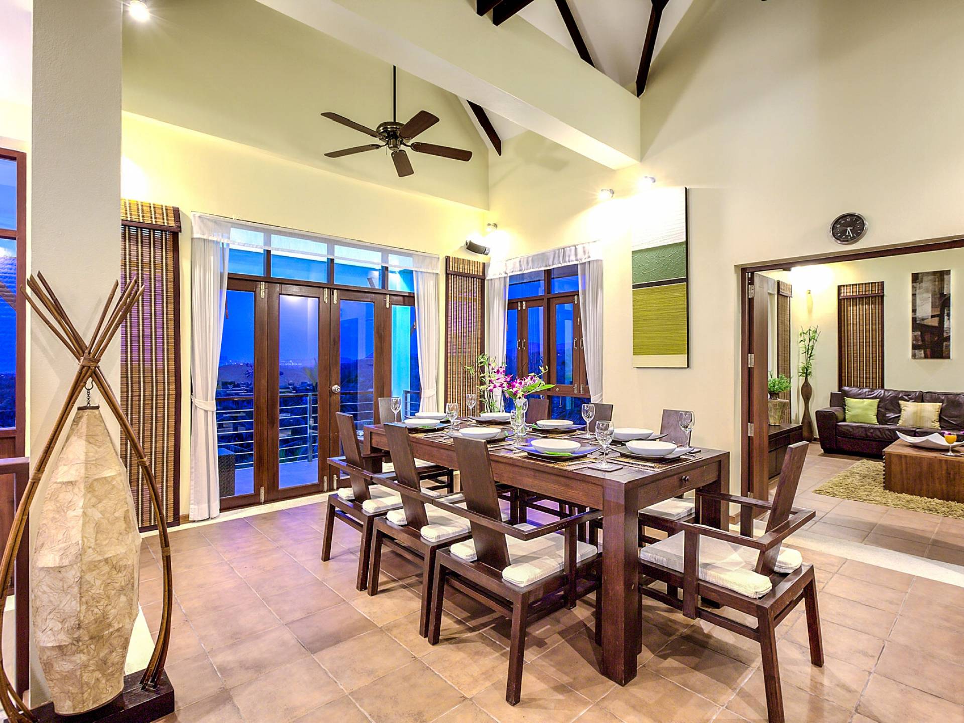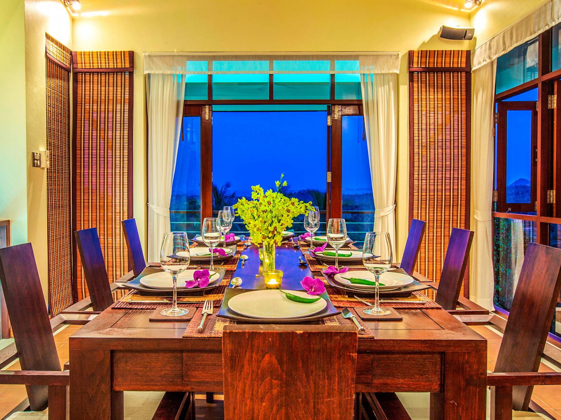 Το επίπεδο εισόδου της Villa Maphraaw Samui, με τις θολωτές οροφές, είναι ο τέλειος συνδυασμός σύγχρονης πολυτέλειας και τροπικής κομψότητας. Άνετα και φιλόξενα εδώ θα βρείτε μια πλήρως λειτουργική, ενιαία κουζίνα, δυτική κουζίνα με κομψές επιφάνειες εργασίας από μαύρο γρανίτη, κομψά ξύλινα ντουλάπια και όλες τις ανέσεις που θα περιμένατε να βρείτε σε μια βίλα αυτού του προτύπου. Πέρα από την κουζίνα υπάρχει ένα ευρύχωρο σαλόνι ενιαίας διαρρύθμισης που προσφέρει εκπληκτική θέα στο τροπικό τροπικό δάσος, στον ωκεανό και στο Koh Phangan πέρα από αυτό, ενώ μπορείτε να χαλαρώσετε σε έναν από τους πολυτελείς και άνετους καναπέδες. Η ανοιχτή τραπεζαρία προσφέρει επίσης στους επισκέπτες το προνόμιο να απολαμβάνουν απίστευτη θέα ενώ γευματίζουν. Η κομψή σκληρή ξύλινη τραπεζαρία μπορεί να φιλοξενήσει άνετα έως και οκτώ τραπεζαρίες και η εξωτερική βεράντα με θέα στον ωκεανό είναι το ιδανικό μέρος για να χαλαρώσετε με ένα κοκτέιλ και να θαυμάσετε το ηλιοβασίλεμα. Πέρα από την τραπεζαρία υπάρχει ένα άνετο και ιδιωτικό σαλόνι που μπορεί να βρεθεί με άνετα καθίσματα, ένα υπερσύγχρονο σύστημα ψυχαγωγίας και πανοραμική θέα στον ωκεανό. Από εδώ μπορεί κανείς να καθίσει αναπαυτικά και να χαλαρώσει και να νιώσει το άγχος της σύγχρονης ζωής να διαλύεται.