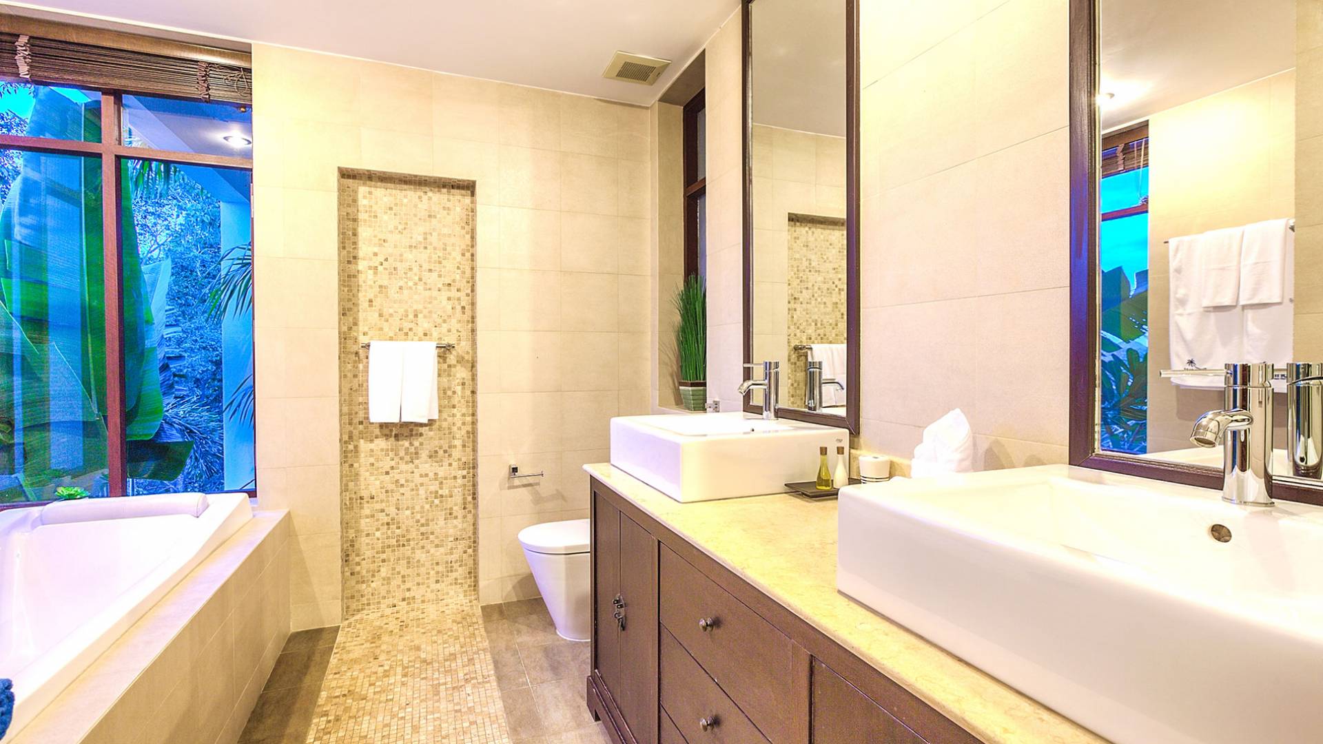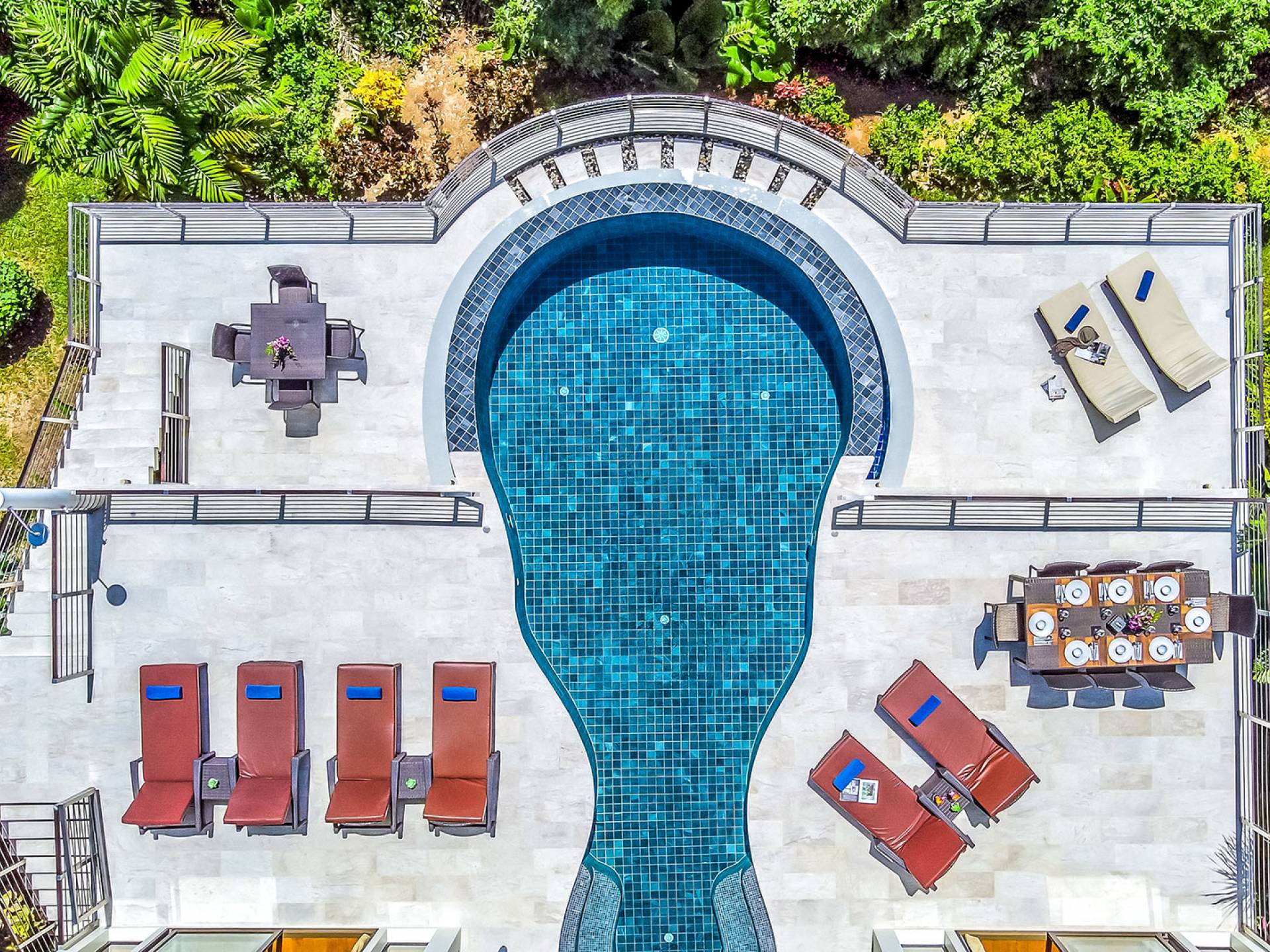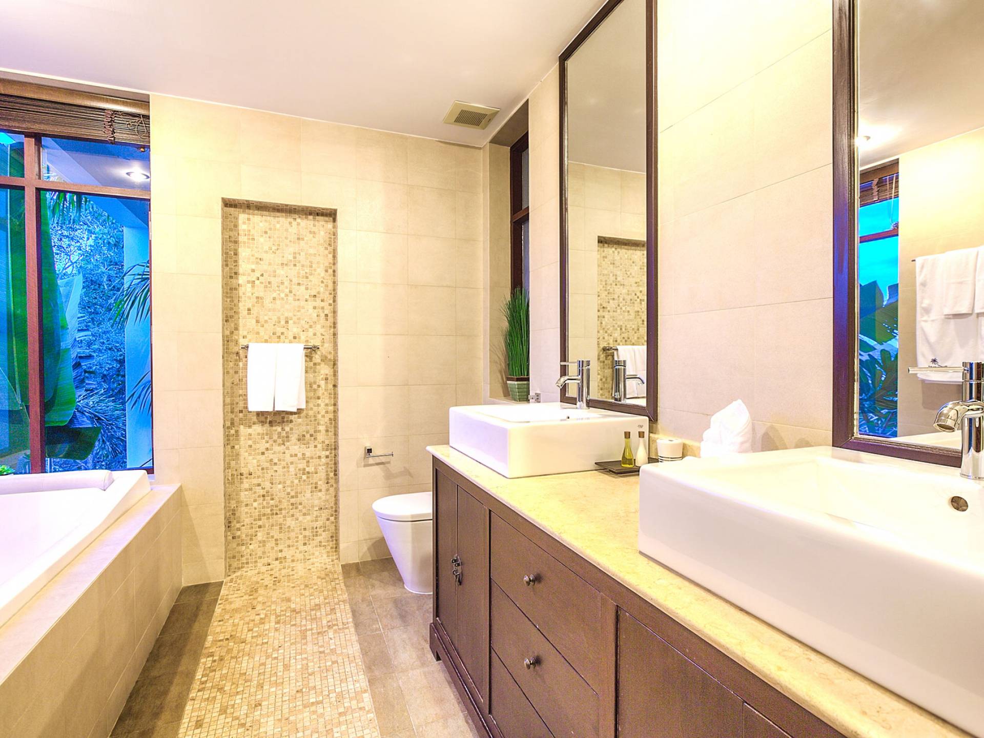 Το κάτω τρίτο επίπεδο της βίλας φιλοξενεί δύο επιπλέον υπνοδωμάτια με ιδιωτικό μπάνιο. Και οι δύο έχουν πολύ μεγάλους χώρους γκαρνταρόμπας, ο ένας με ένα queen-size κρεβάτι, τα άλλα δύο μονά κρεβάτια και μια μεγάλη φιλόξενη ιδιωτική ξαπλώστρα που συνδέεται με σκαλοπατάκια γύρω από ένα υπέροχο υδάτινο στοιχείο που τροφοδοτείται από την απίστευτη πισίνα υπερχείλισης 32τμ, στο επίπεδο πάνω από. Αυτή η αξέχαστη πισίνα δίνει την εντύπωση ότι κάποιος θα μπορούσε απλά να κολυμπήσει στο πολυτελές τροπικό τροπικό δάσος κάτω και στη θάλασσα. Τόσο η πισίνα όσο και η εντυπωσιακά μεγάλη ηλιόλουστη βεράντα αποτυπώνουν τον εντυπωσιακό παράγοντα της εντυπωσιακής τοποθεσίας της βίλας. Η βεράντα έχει καλά επιλεγμένα πολυτελή έπιπλα εξωτερικού χώρου που ενθαρρύνουν τους επισκέπτες να χαλαρώσουν και να χαλαρώσουν. Αυτή η περιοχή είναι ιδιαίτερα εντυπωσιακή μετά το σκοτάδι, όταν ο μαγευτικός φωτισμός της βίλας δημιουργεί μια πλούσια και ρομαντική ατμόσφαιρα.