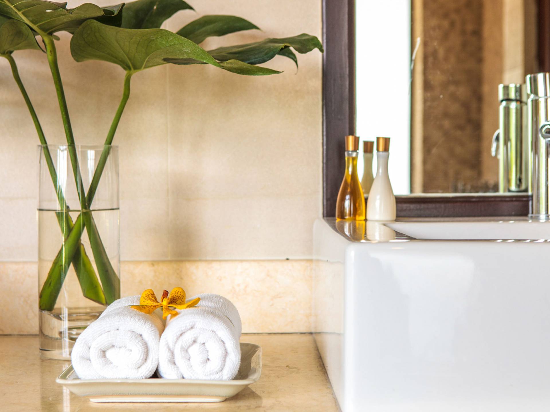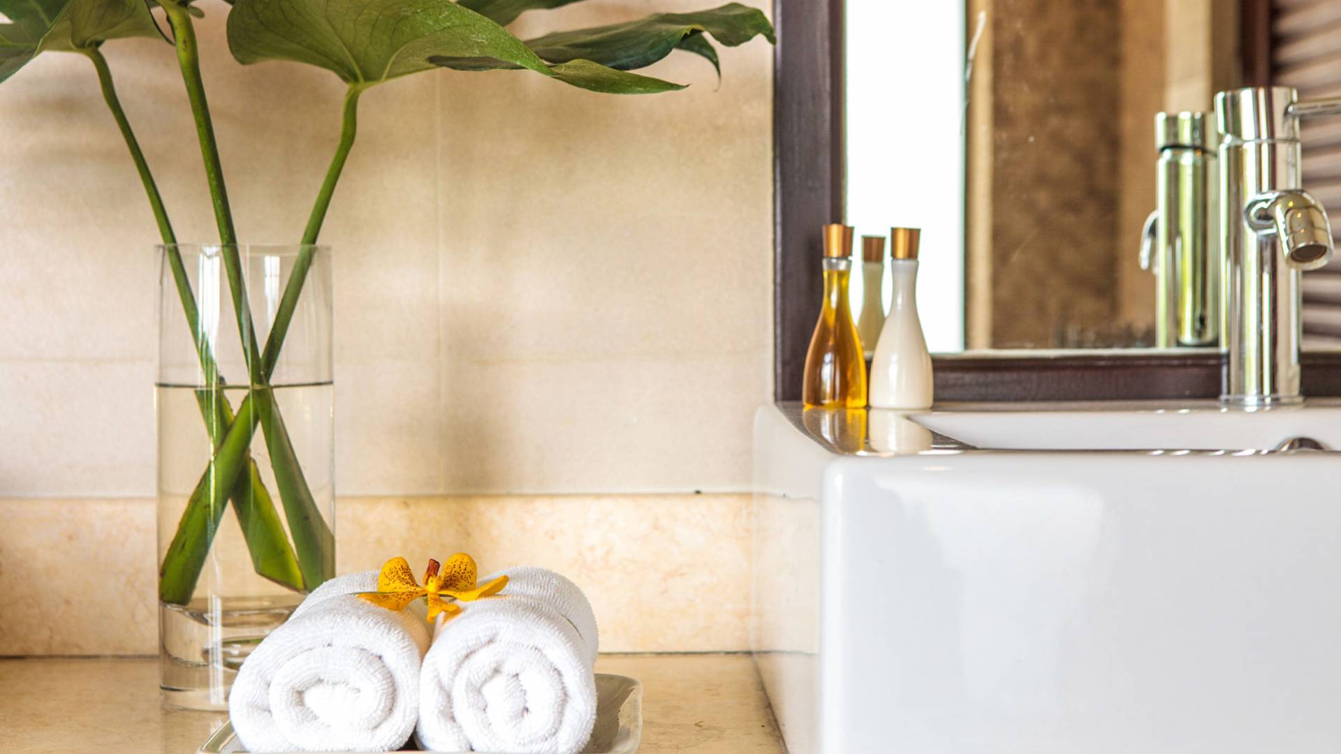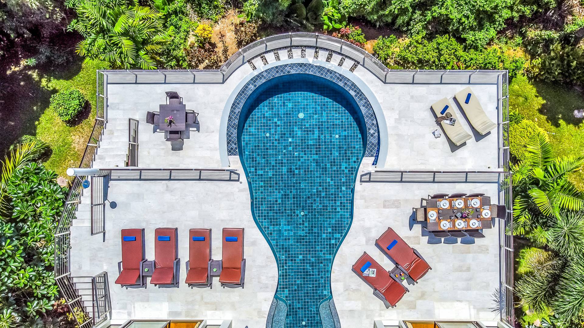 Το κάτω τρίτο επίπεδο της βίλας φιλοξενεί δύο επιπλέον υπνοδωμάτια με ιδιωτικό μπάνιο. Και οι δύο έχουν πολύ μεγάλους χώρους γκαρνταρόμπας, ο ένας με ένα queen-size κρεβάτι, τα άλλα δύο μονά κρεβάτια και μια μεγάλη φιλόξενη ιδιωτική ξαπλώστρα που συνδέεται με σκαλοπατάκια γύρω από ένα υπέροχο υδάτινο στοιχείο που τροφοδοτείται από την απίστευτη πισίνα υπερχείλισης 32τμ, στο επίπεδο πάνω από. Αυτή η αξέχαστη πισίνα δίνει την εντύπωση ότι κάποιος θα μπορούσε απλά να κολυμπήσει στο πολυτελές τροπικό τροπικό δάσος κάτω και στη θάλασσα. Τόσο η πισίνα όσο και η εντυπωσιακά μεγάλη ηλιόλουστη βεράντα αποτυπώνουν τον εντυπωσιακό παράγοντα της εντυπωσιακής τοποθεσίας της βίλας. Η βεράντα έχει καλά επιλεγμένα πολυτελή έπιπλα εξωτερικού χώρου που ενθαρρύνουν τους επισκέπτες να χαλαρώσουν και να χαλαρώσουν. Αυτή η περιοχή είναι ιδιαίτερα εντυπωσιακή μετά το σκοτάδι, όταν ο μαγευτικός φωτισμός της βίλας δημιουργεί μια πλούσια και ρομαντική ατμόσφαιρα.