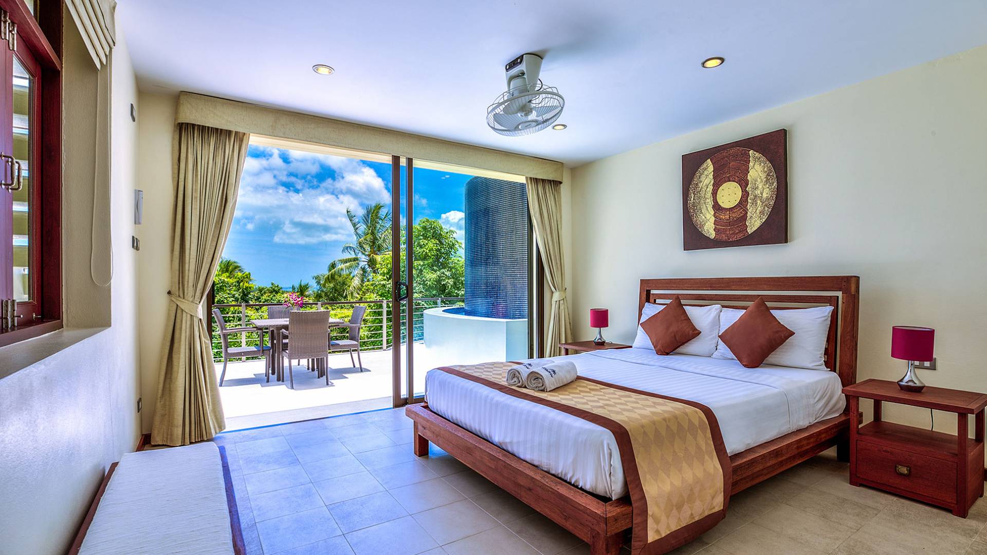 Από το επίπεδο της εισόδου, μια ελκυστική σκάλα οδηγεί στο δεύτερο επίπεδο που έχει τρία υπνοδωμάτια με ιδιωτικό μπάνιο. Η κύρια σουίτα έχει επιπλωθεί με γούστο και διαθέτει ένα απολαυστικά άνετο king-size κρεβάτι, μια ευρύχωρη γκαρνταρόμπα και πρόσβαση στη βεράντα της πισίνας. Το πολυτελές ιδιωτικό μπάνιο διαθέτει δύο νεροχύτες, ένα αναζωογονητικό ντους ψιλής βροχής και μια πολυτελή μπανιέρα. Το δεύτερο πολυτελώς επιπλωμένο υπνοδωμάτιο στην απέναντι πλευρά της βίλας διαθέτει μεγάλο άνετο κρεβάτι, ιδιωτικό μπάνιο με ντους ψιλής βροχής και βεράντα με πισίνα. Το υπνοδωμάτιο τρία βρίσκεται στο πίσω μέρος αυτού του επιπέδου και διαθέτει μεγάλη γκαρνταρόμπα, king-size κρεβάτι και πολυτελές μπάνιο με δύο νεροχύτες, ντους ψιλής βροχής και μπανιέρα.
