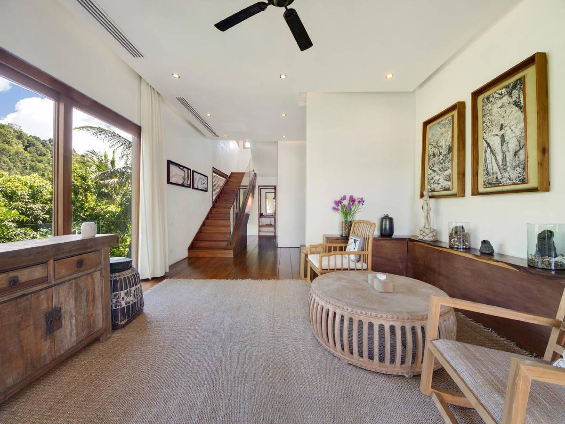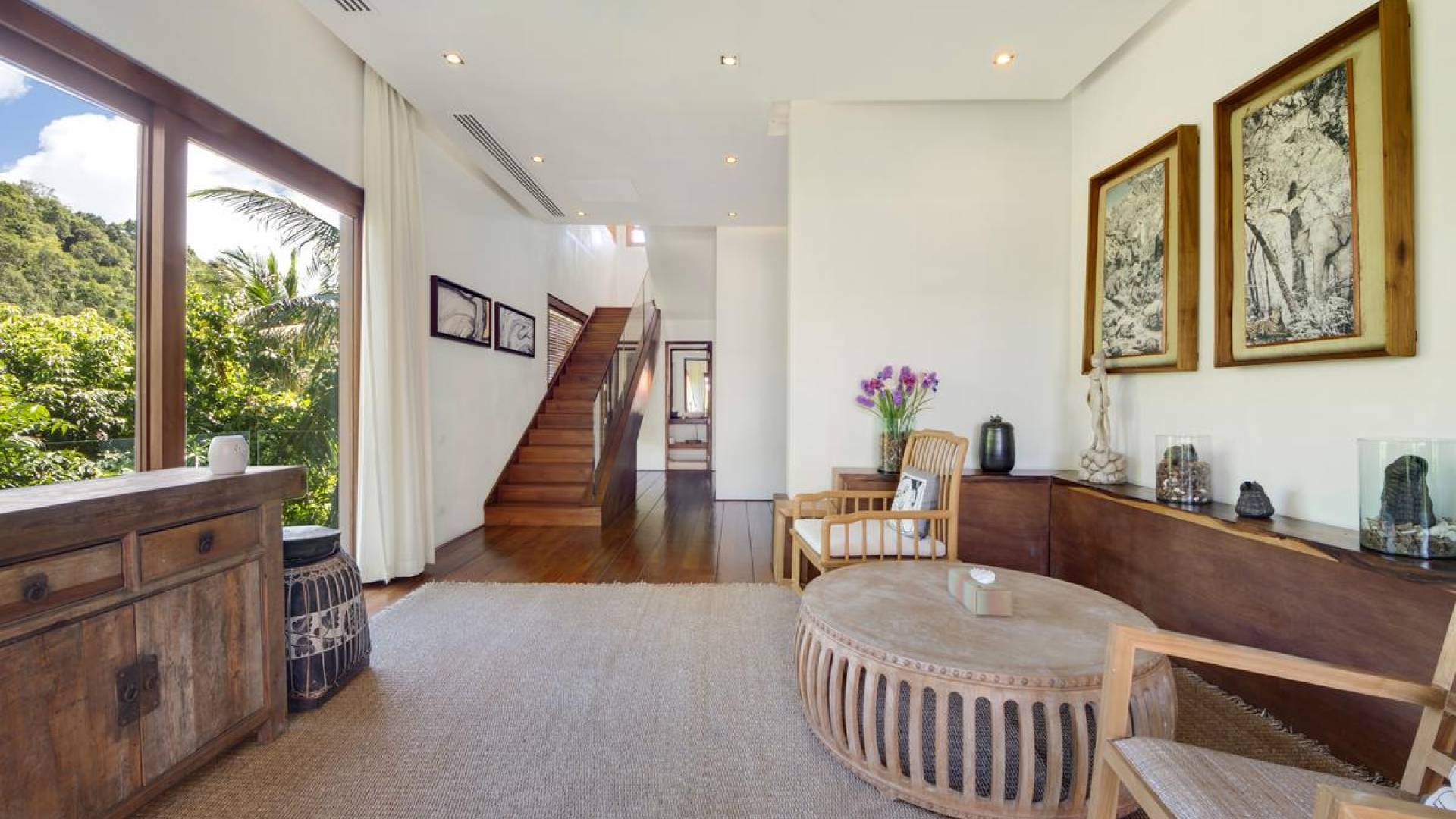 Η Villa Riva Samui είναι μια πολυτελής ενοικίαση βίλας με 7 υπνοδωμάτια και ιδιωτική πισίνα. Εξαιρετική, εκτεταμένη και μοναδική, η Villa Riva καταλαμβάνει ένα κρυφό ακρωτήριο στην παρθένα βόρεια ακτή του Koh Samui με εκπληκτική θέα από τη δασώδη τοποθεσία στην πλαγιά του βράχου και τους ανθισμένους κήπους που κατεβαίνουν απαλά σε έναν απομονωμένο ιδιωτικό όρμο και αμμώδη παραλία. Χτισμένη και φινιρισμένη σύμφωνα με τα υψηλότερα διεθνή πρότυπα, η Villa Riva περιλαμβάνει μια σειρά από κομψά αυτόνομα κιόσκια που βρίσκονται ανάμεσα σε όμορφα διαμορφωμένους χώρους. Γυαλισμένο δάπεδο από ξύλο τικ, θολωτές οροφές και άφθονα παράθυρα δημιουργούν μια ευάερη εσωτερική ατμόσφαιρα, ενώ έξω από τους σκιερούς κήπους υπάρχουν πανύψηλοι φοίνικες, μπανγιάν και αρμυρίκια.
