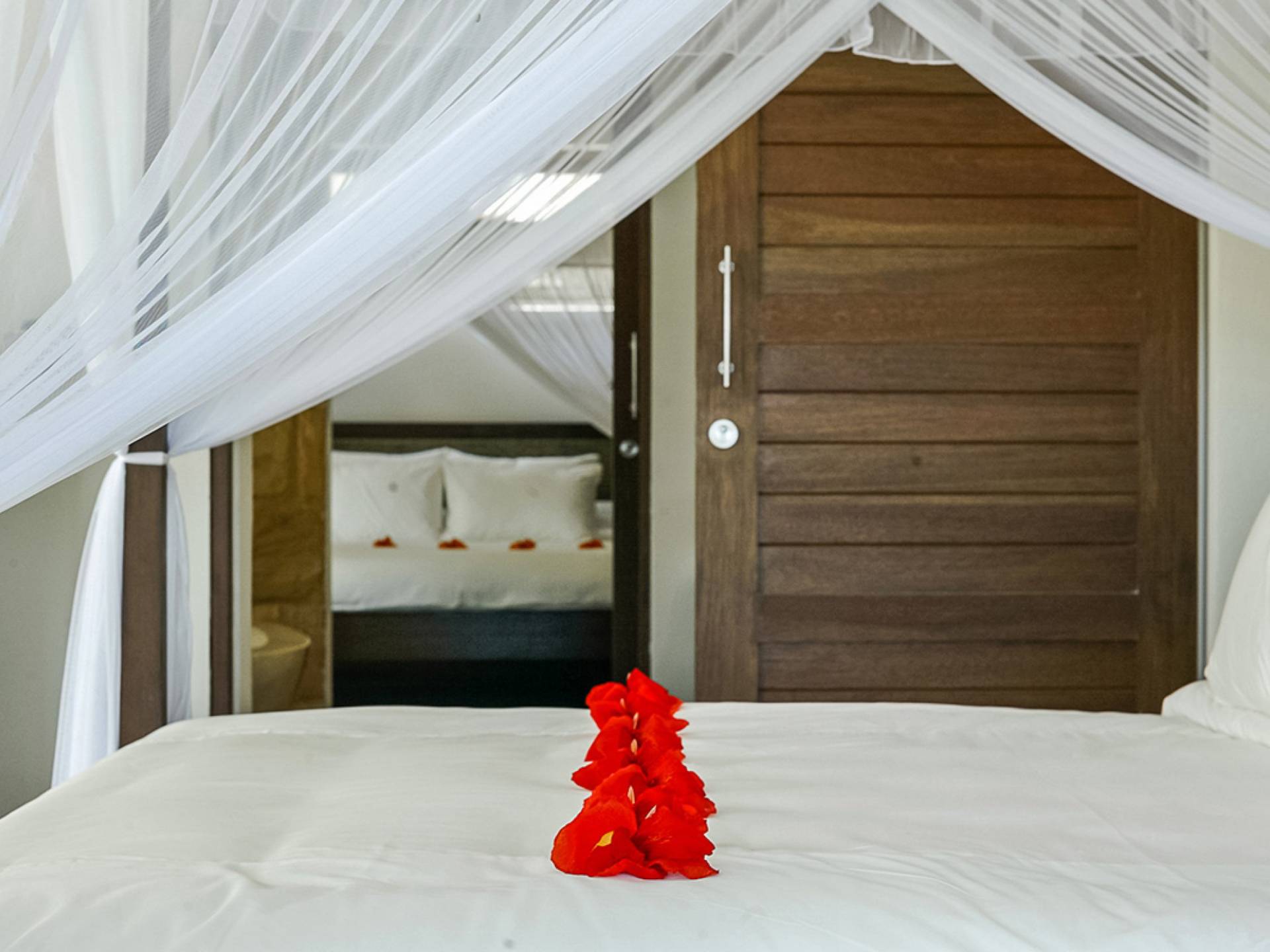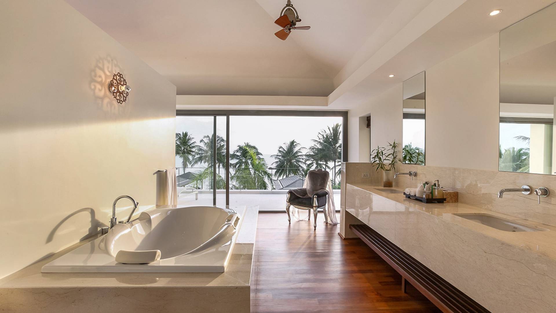 Στην άλλη πλευρά του σπιτιού, μπαίνετε σε μια γυάλινη πόρτα για να βρείτε δύο ακόμη δίκλινα υπνοδωμάτια με ένα ενδιάμεσο μπάνιο. Το μπροστινό υπνοδωμάτιο προσφέρει θέα στη θάλασσα, ενώ και τα δύο έχουν θέα στην πισίνα. Το Ban Laem Set Samui προσφέρει το υπέρτατο όφελος από την άμεση πρόσοψη της παραλίας, ωστόσο η μεγάλη πισίνα υπερχείλισης και τα όμορφα ξύλινα καταστρώματα που σας οδηγούν σε ένα περίπτερο κήπου και μια όμορφη παραλία σίγουρα θα ολοκληρώσουν μια διαμονή για όλους.