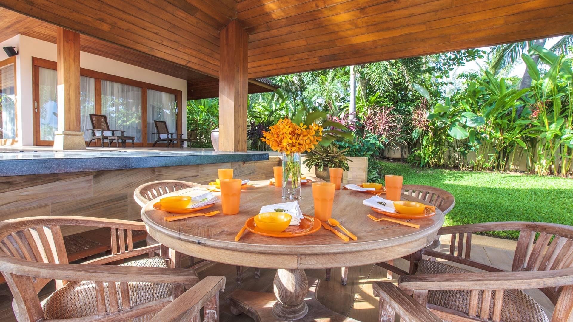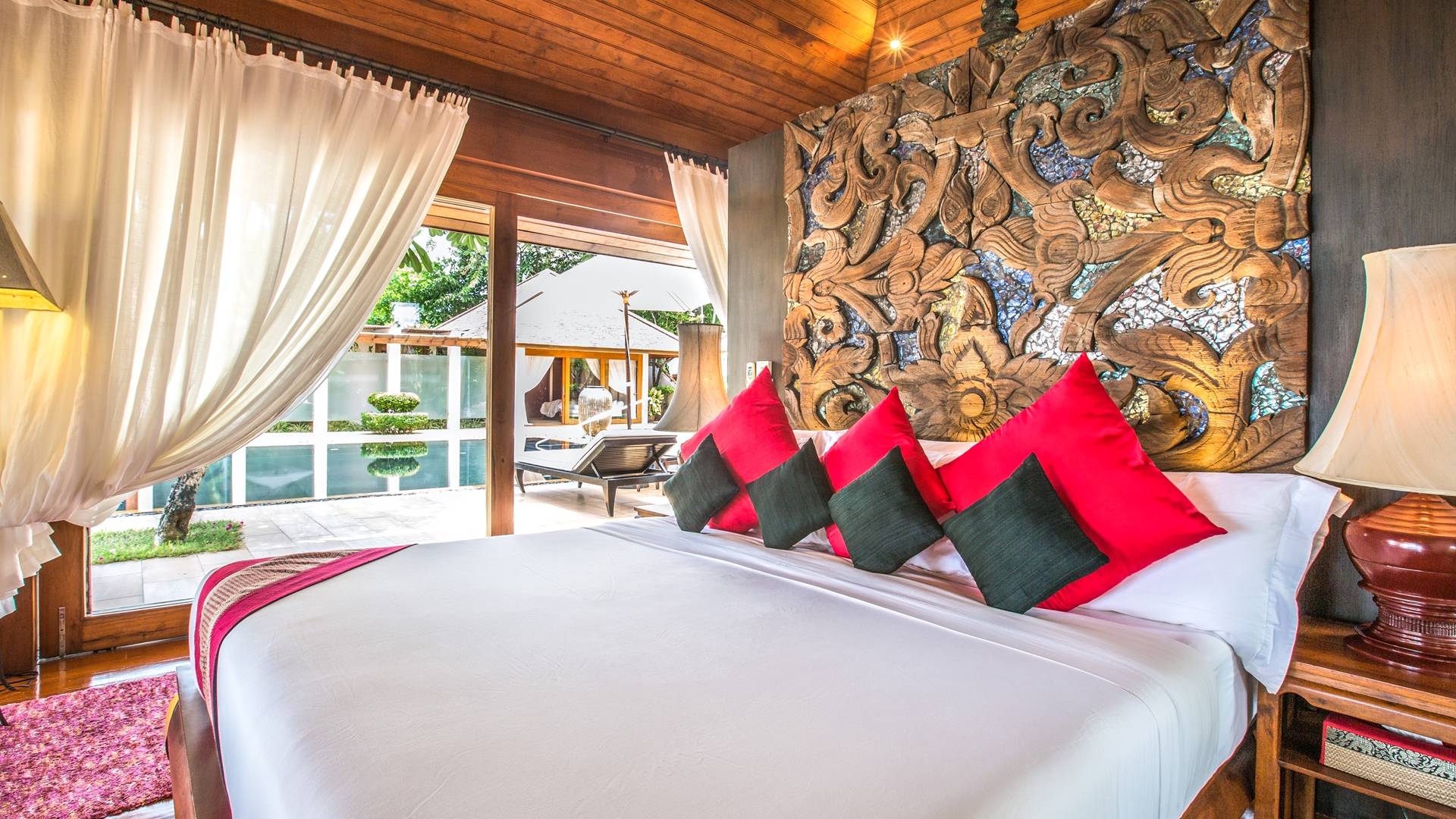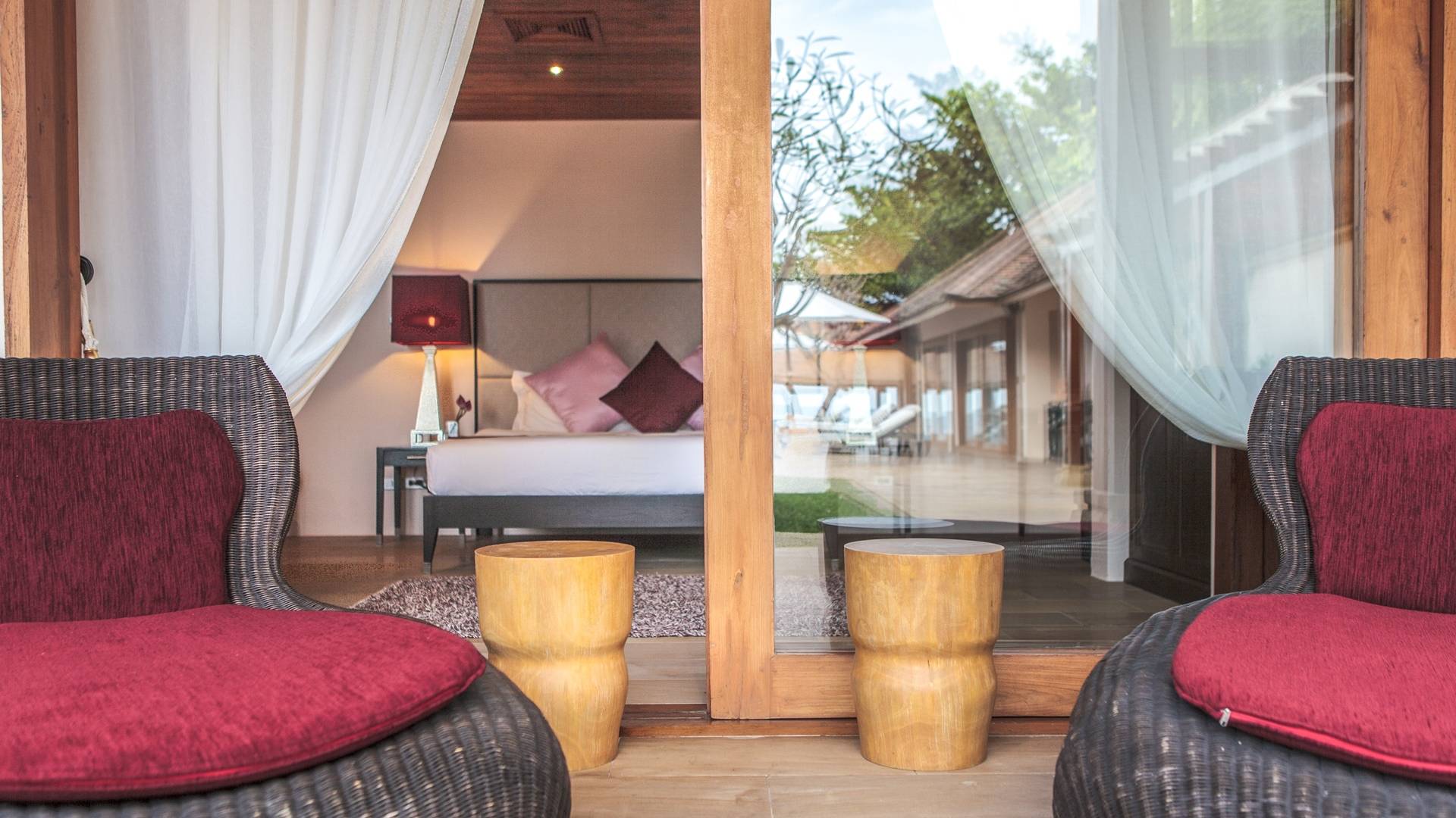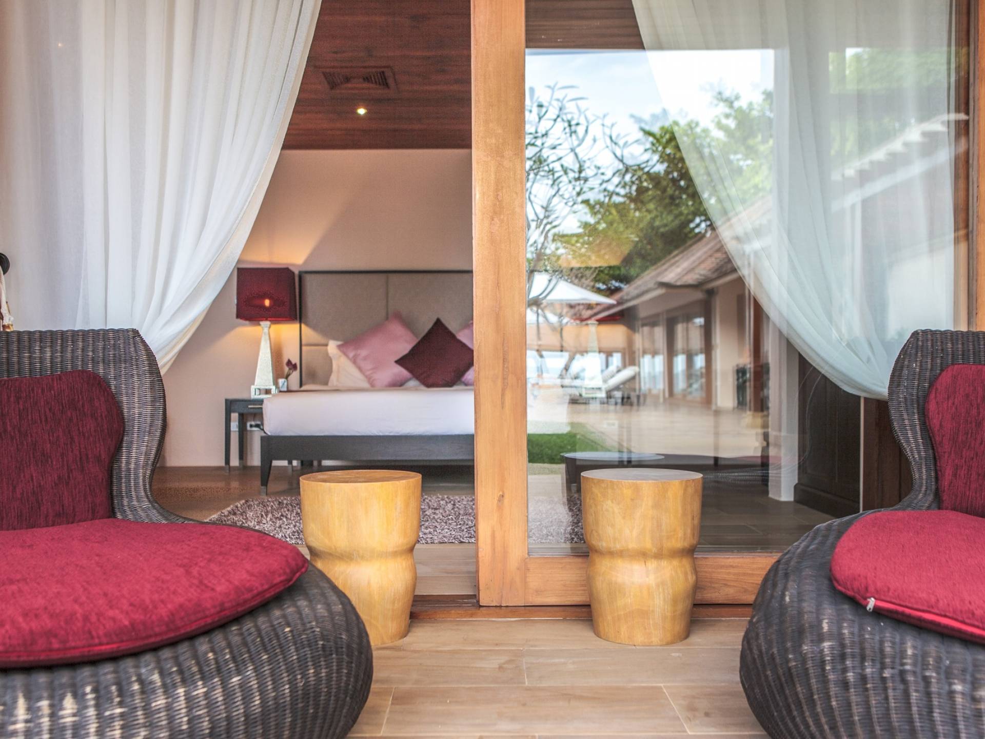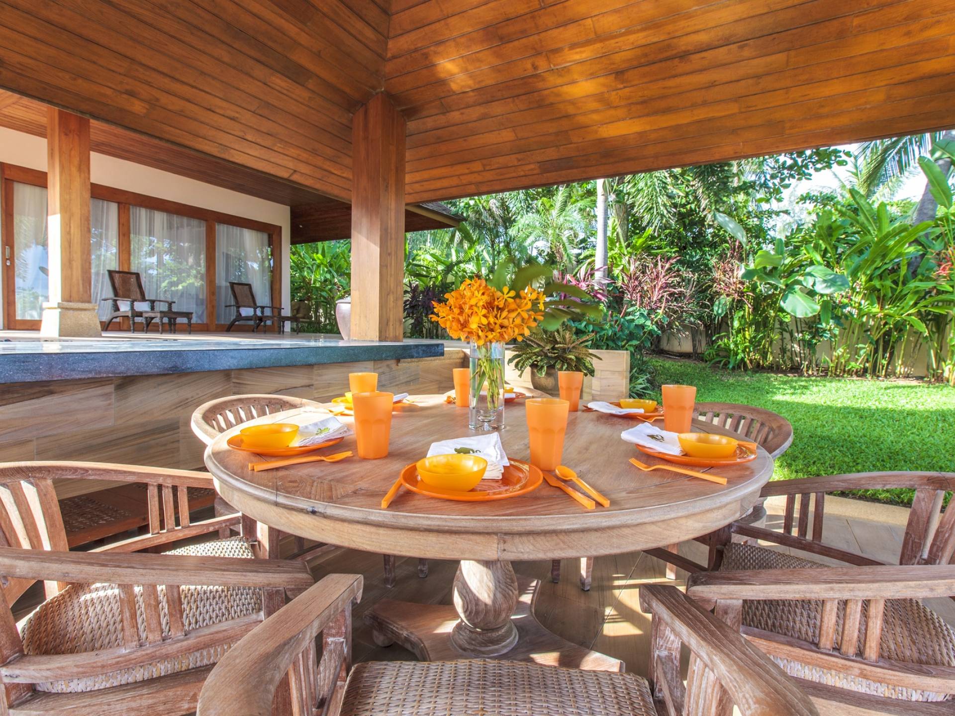 Οι μεγάλες σκεπαστές γύρω βεράντες προσφέρουν χαλαρούς χώρους χαλάρωσης έξω από τη ζέστη της ημέρας, ενώ οι λάτρεις του μπρονζέ σωματότυπου μπορούν να απολαύσουν την πλήρη δόξα του ήλιου στις βεράντες της πισίνας ή την άχνη άμμο της παραλίας Laem Sor. Ο κήπος αστράφτει με την απλή κομψότητα της εξωτικής παραθαλάσσιας ζωής. Ζωντανές ορχιδέες προσκολλώνται σε κάθε φοίνικα καθώς οι αυτόχθονες φυτεύσεις ευδοκιμούν σε αυτό το καταπράσινο τροπικό καταφύγιο.