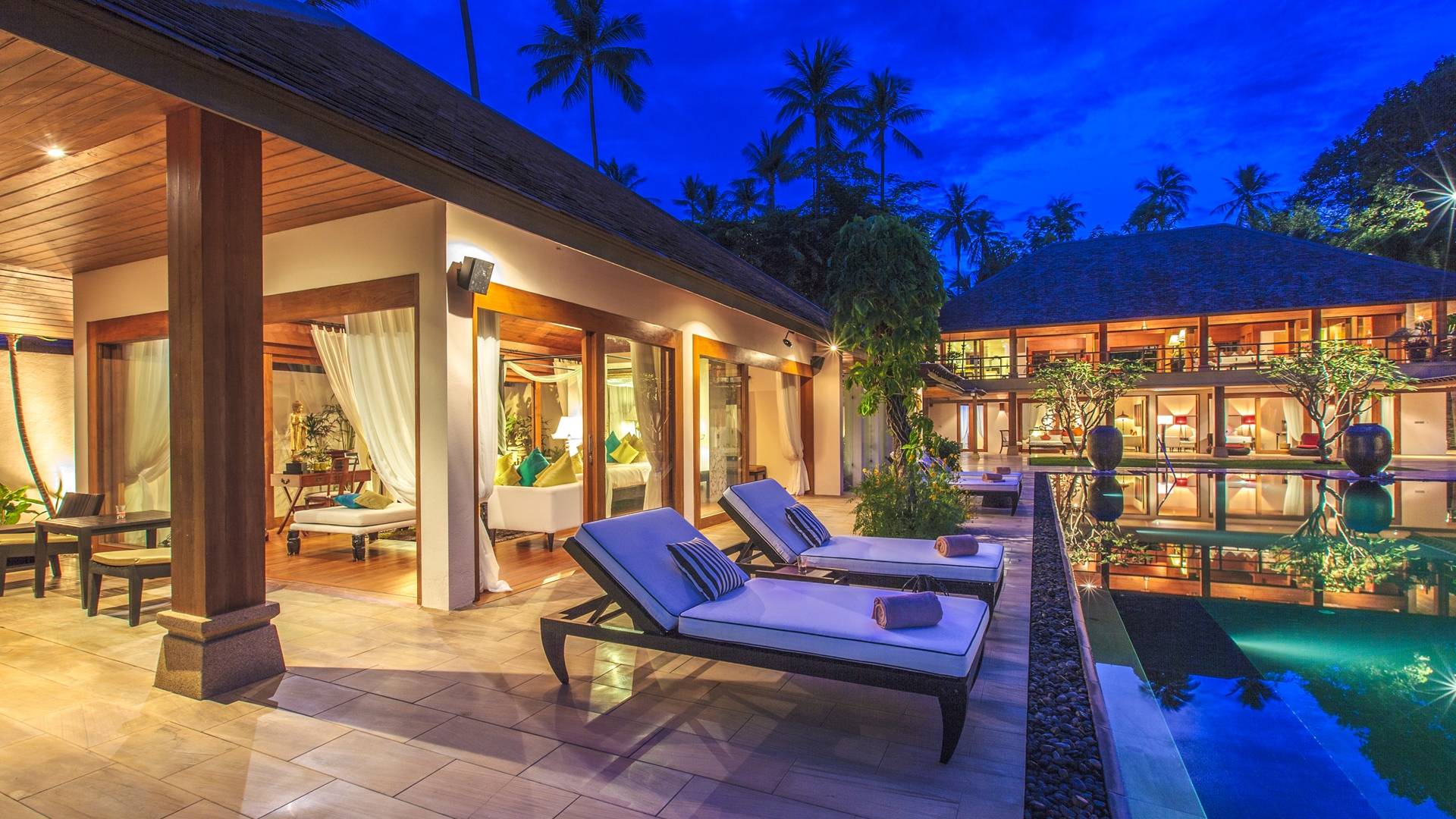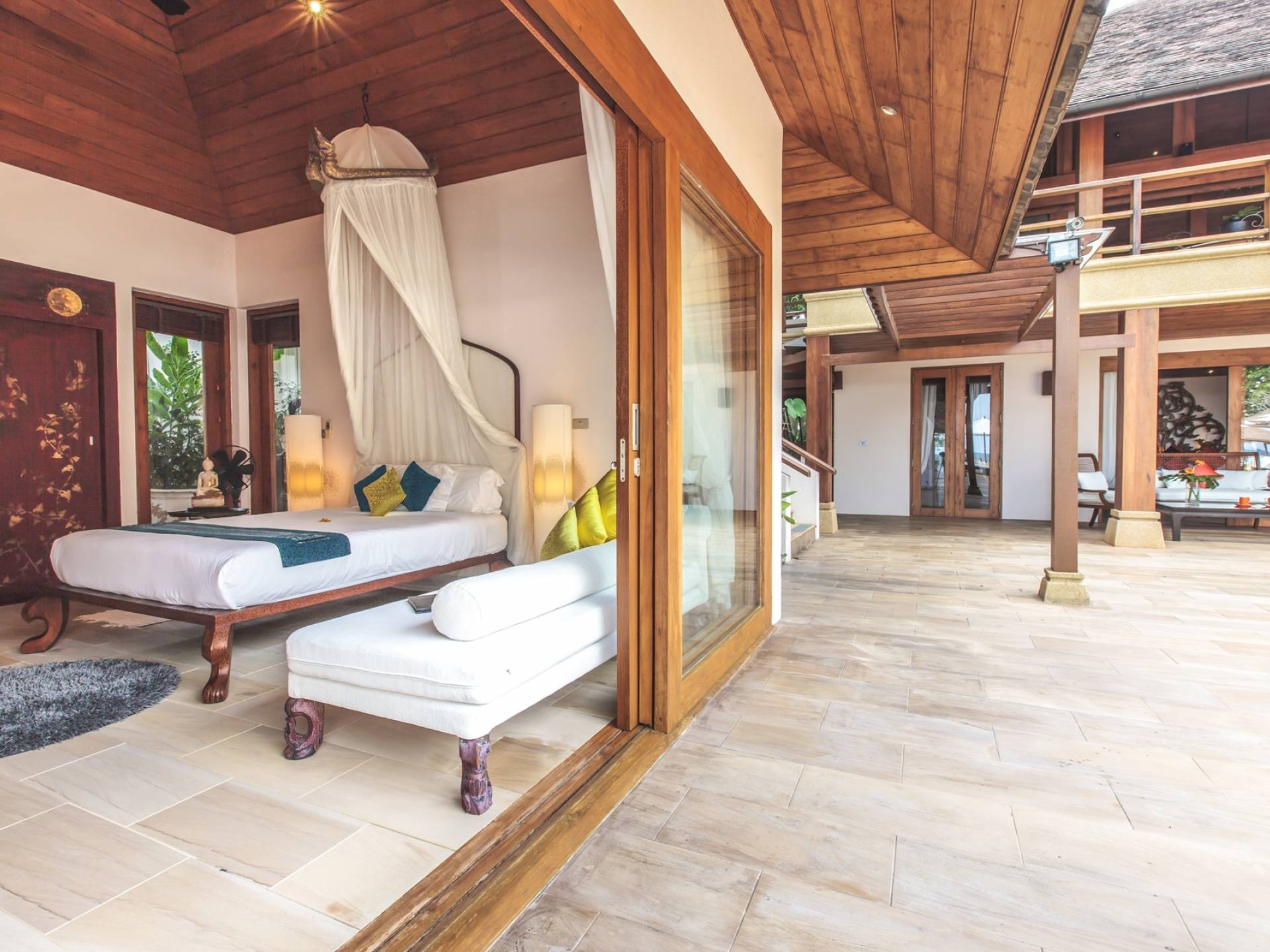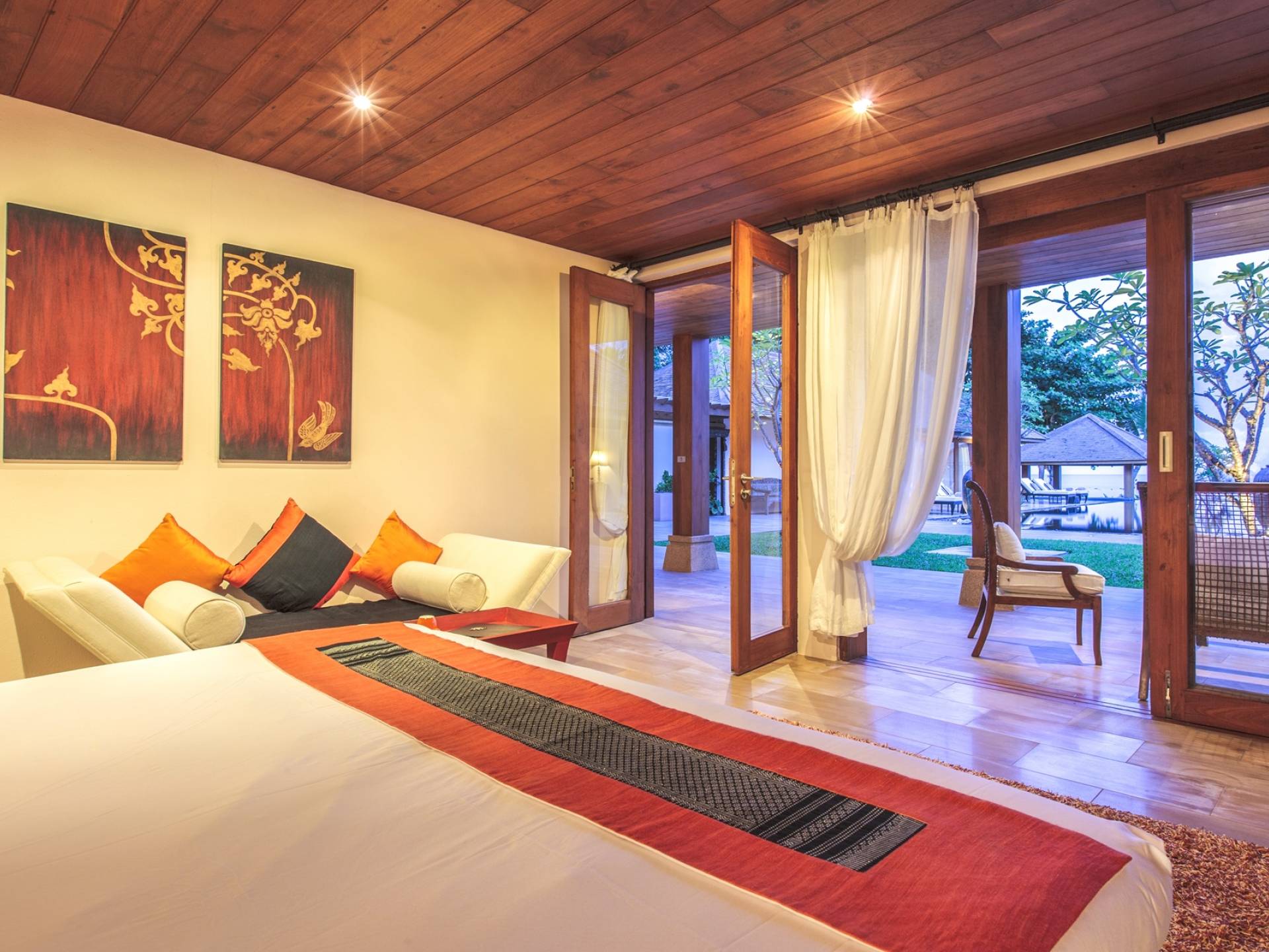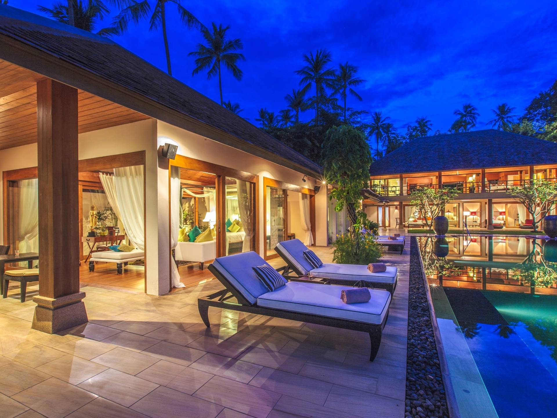 Το Baan Wanora είναι μάλλον μοναδικό καθώς διαθέτει δύο κύρια υπνοδωμάτια δίπλα στην πισίνα και κοντά στην παραλία, με άλλα τρία δίκλινα υπνοδωμάτια με θέα στην πισίνα και το στεγασμένο σαλόνι τους. Ένα παιδικό δωμάτιο με 2 μονά κρεβάτια και μια πόρτα που επικοινωνεί με ένα επιπλέον μονόκλινο υπνοδωμάτιο, αποτελούν ένα ιδανικό καταφύγιο για παιδιά, κοντά στο κεντρικό κιόσκι. Κάθε δωμάτιο διαθέτει άρτια εξοπλισμένα μπάνια, μερικά με επιπλέον υπαίθριες εγκαταστάσεις