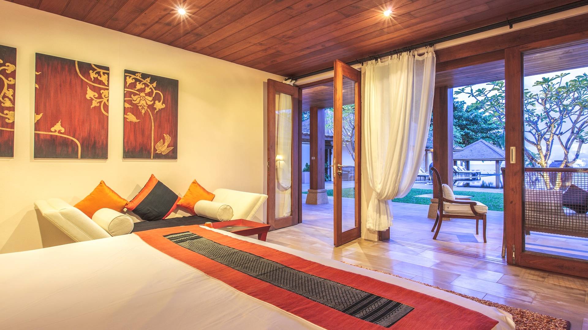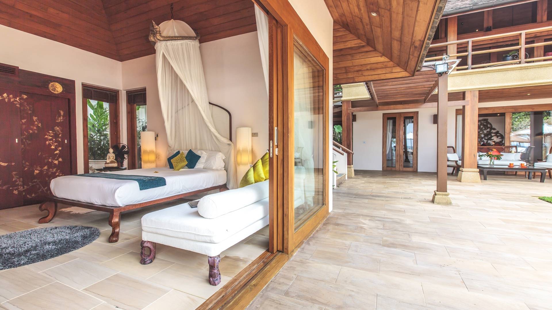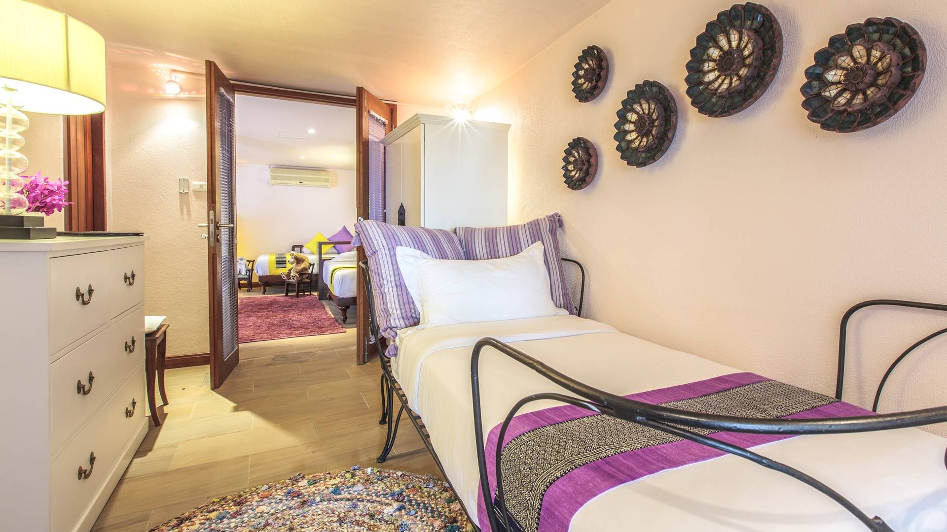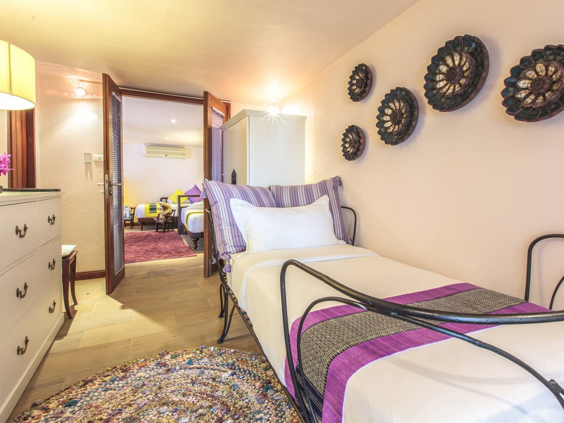 Το Baan Wanora είναι μάλλον μοναδικό καθώς διαθέτει δύο κύρια υπνοδωμάτια δίπλα στην πισίνα και κοντά στην παραλία, με άλλα τρία δίκλινα υπνοδωμάτια με θέα στην πισίνα και το στεγασμένο σαλόνι τους. Ένα παιδικό δωμάτιο με 2 μονά κρεβάτια και μια πόρτα που επικοινωνεί με ένα επιπλέον μονόκλινο υπνοδωμάτιο, αποτελούν ένα ιδανικό καταφύγιο για παιδιά, κοντά στο κεντρικό κιόσκι. Κάθε δωμάτιο διαθέτει άρτια εξοπλισμένα μπάνια, μερικά με επιπλέον υπαίθριες εγκαταστάσεις
