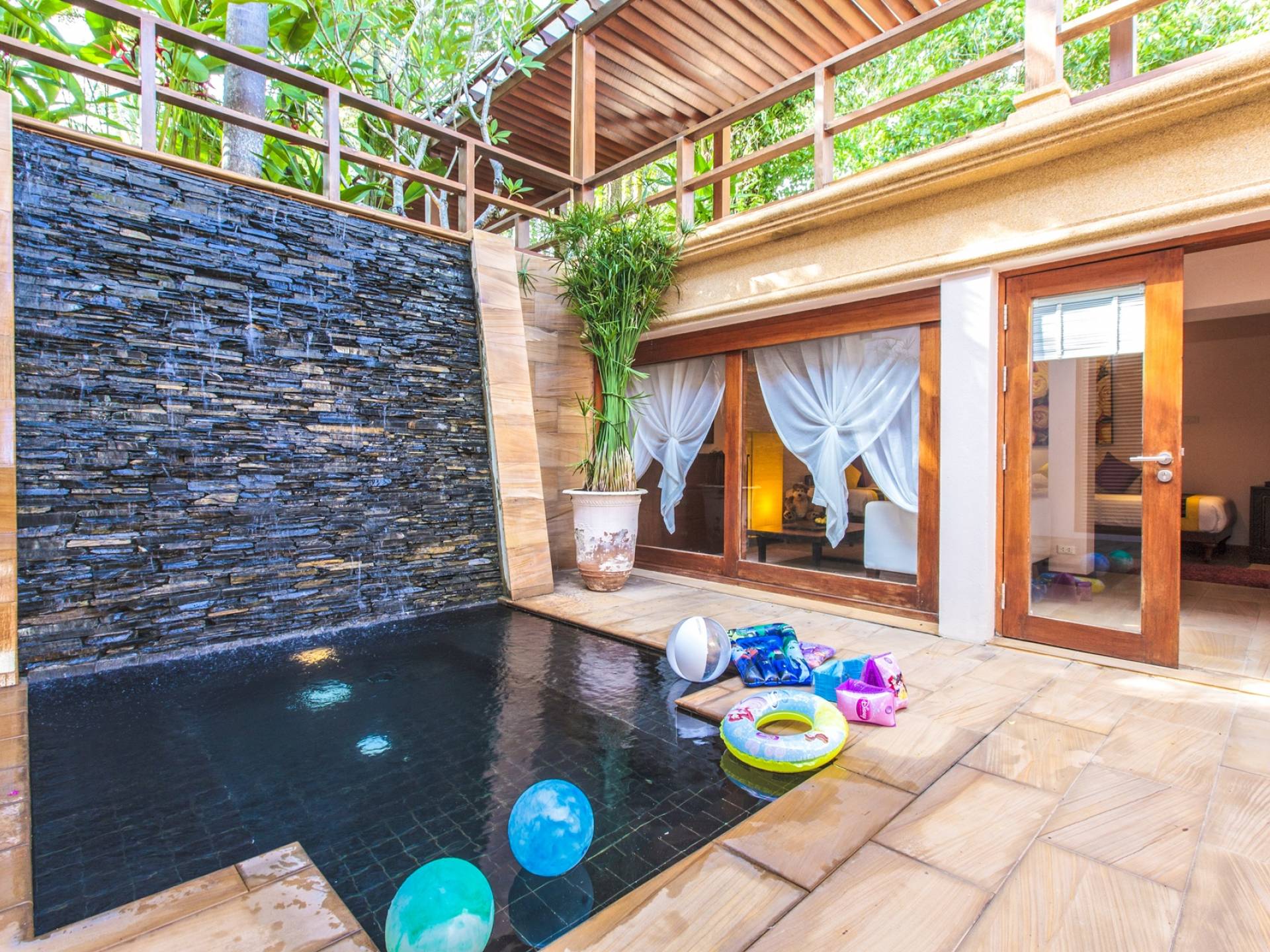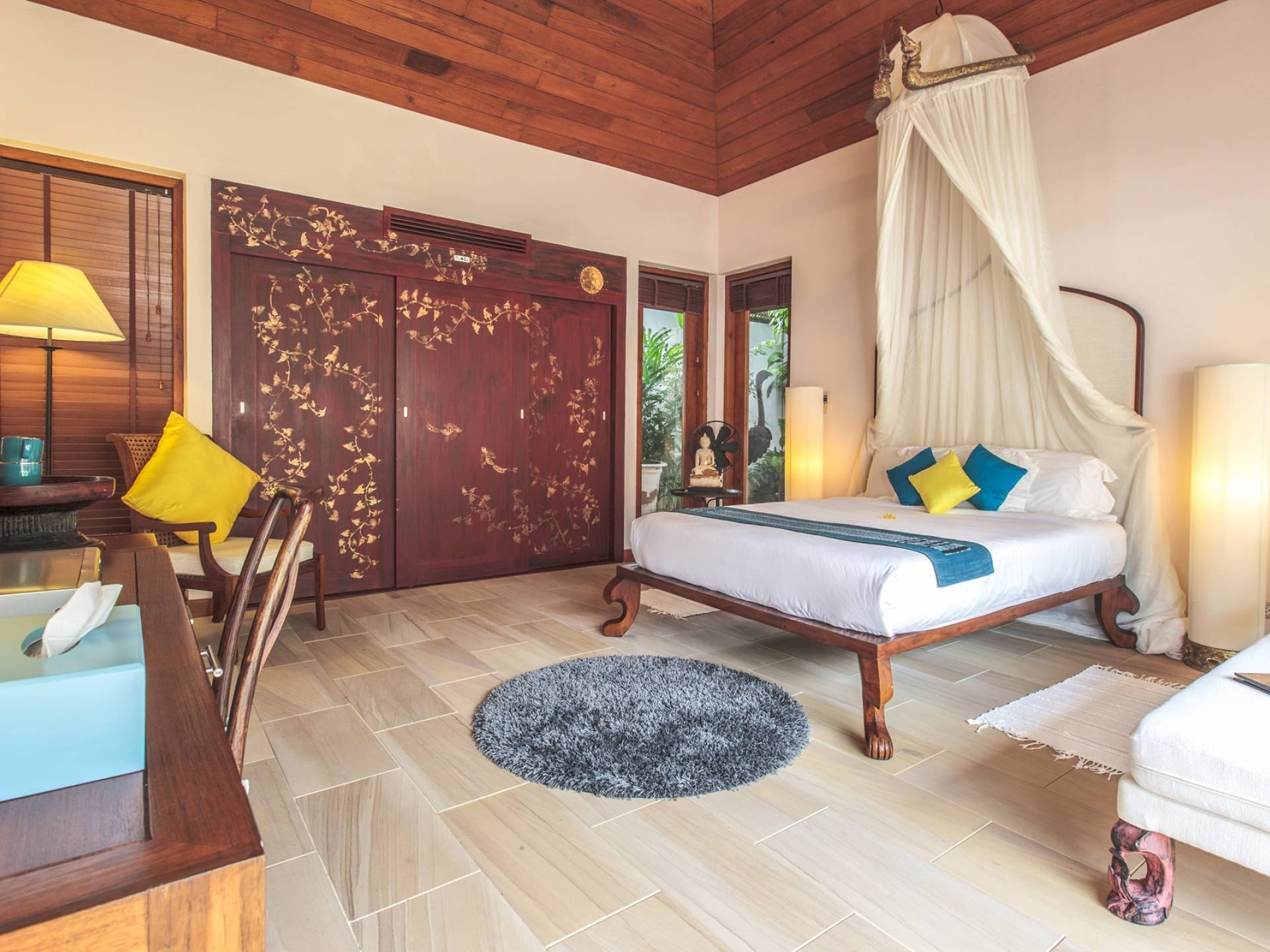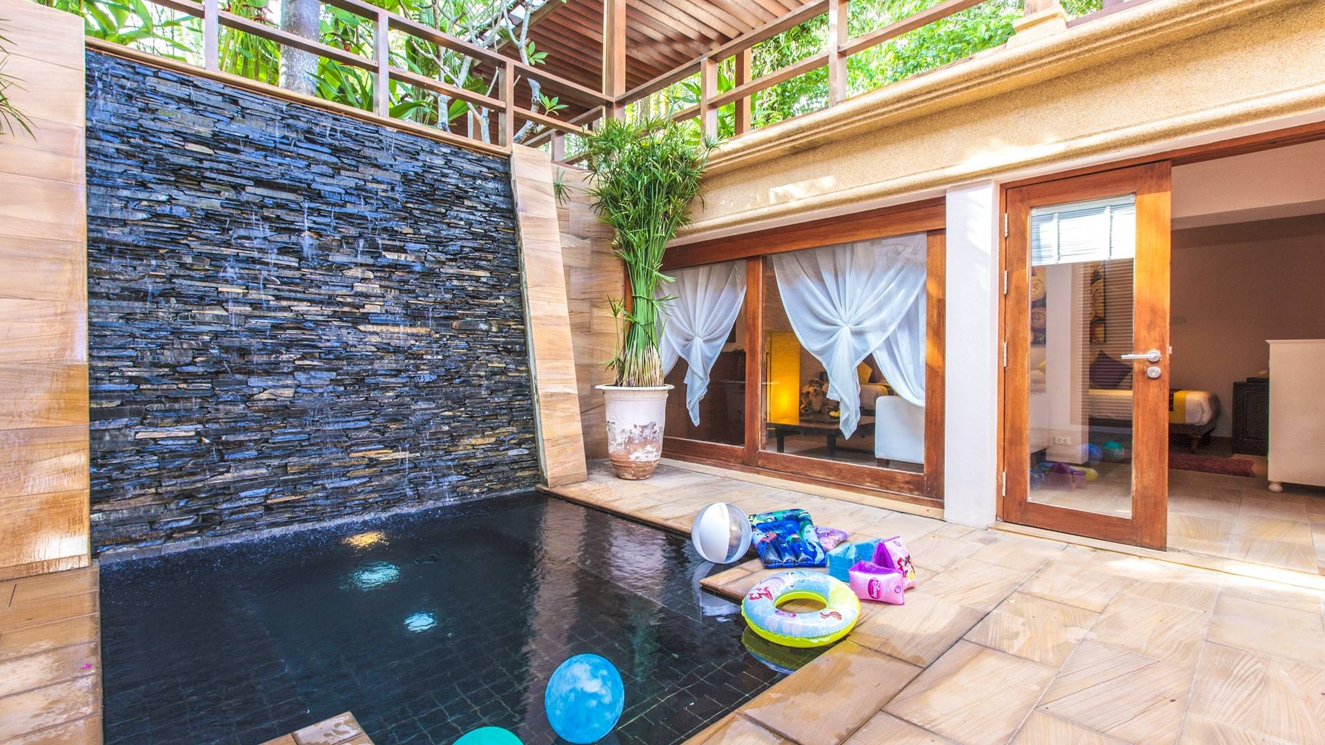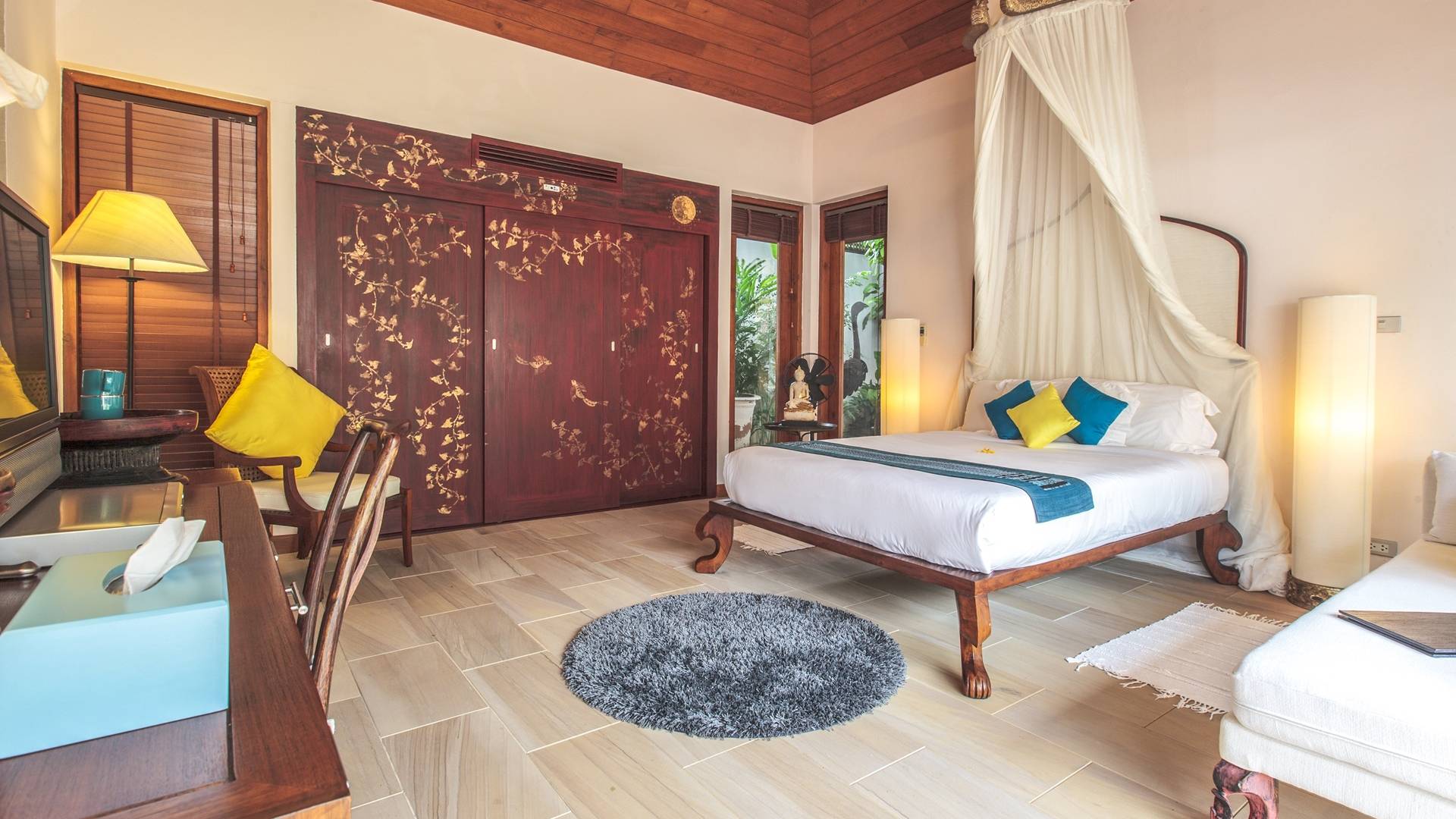 Το Baan Wanora είναι μάλλον μοναδικό καθώς διαθέτει δύο κύρια υπνοδωμάτια δίπλα στην πισίνα και κοντά στην παραλία, με άλλα τρία δίκλινα υπνοδωμάτια με θέα στην πισίνα και το στεγασμένο σαλόνι τους. Ένα παιδικό δωμάτιο με 2 μονά κρεβάτια και μια πόρτα που επικοινωνεί με ένα επιπλέον μονόκλινο υπνοδωμάτιο, αποτελούν ένα ιδανικό καταφύγιο για παιδιά, κοντά στο κεντρικό κιόσκι. Κάθε δωμάτιο διαθέτει άρτια εξοπλισμένα μπάνια, μερικά με επιπλέον υπαίθριες εγκαταστάσεις
