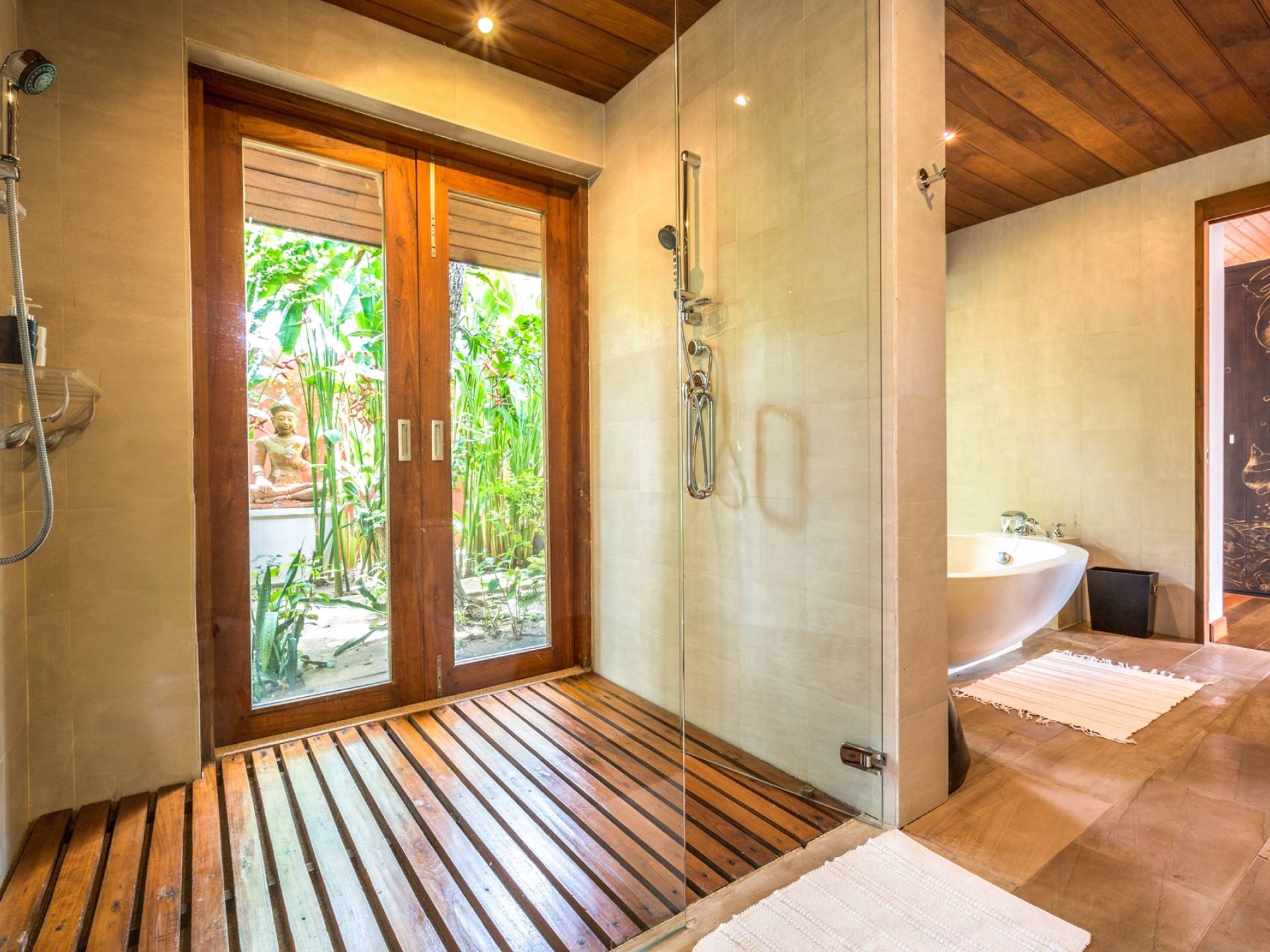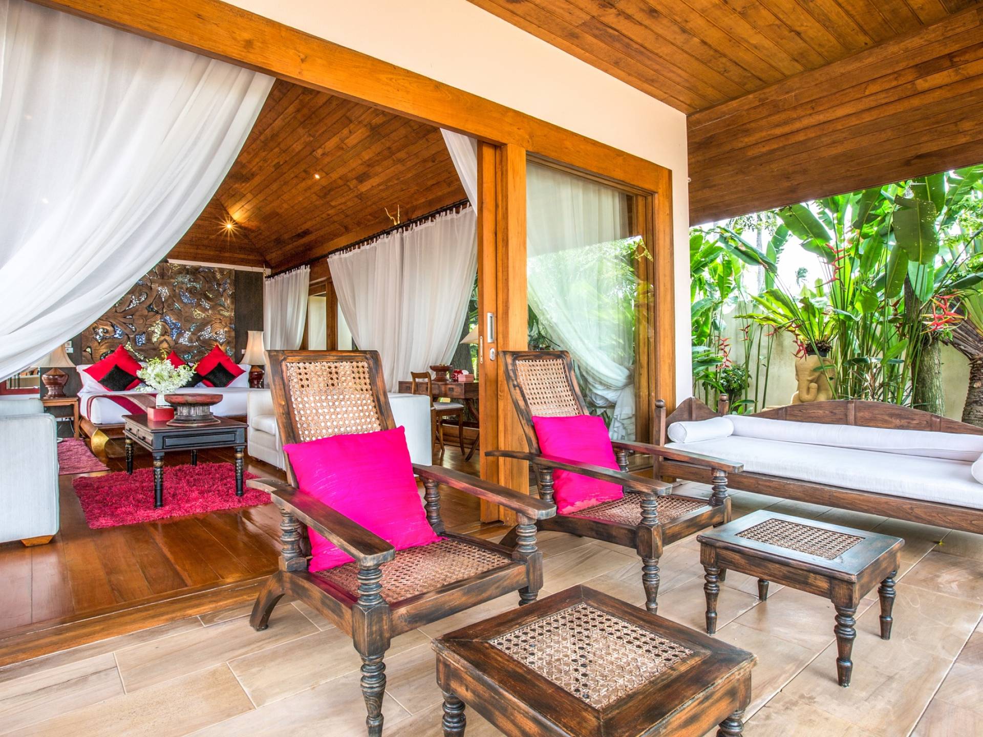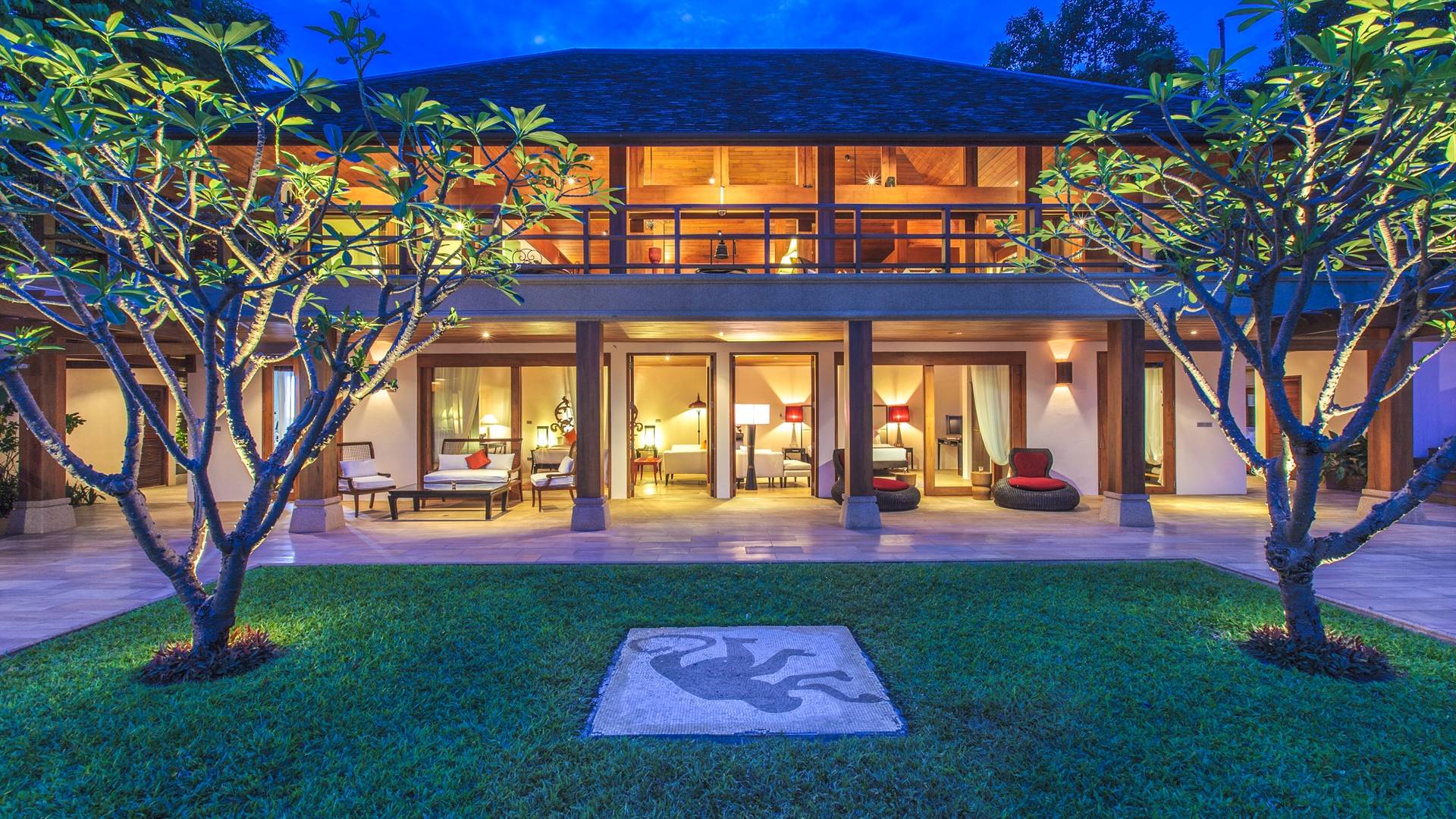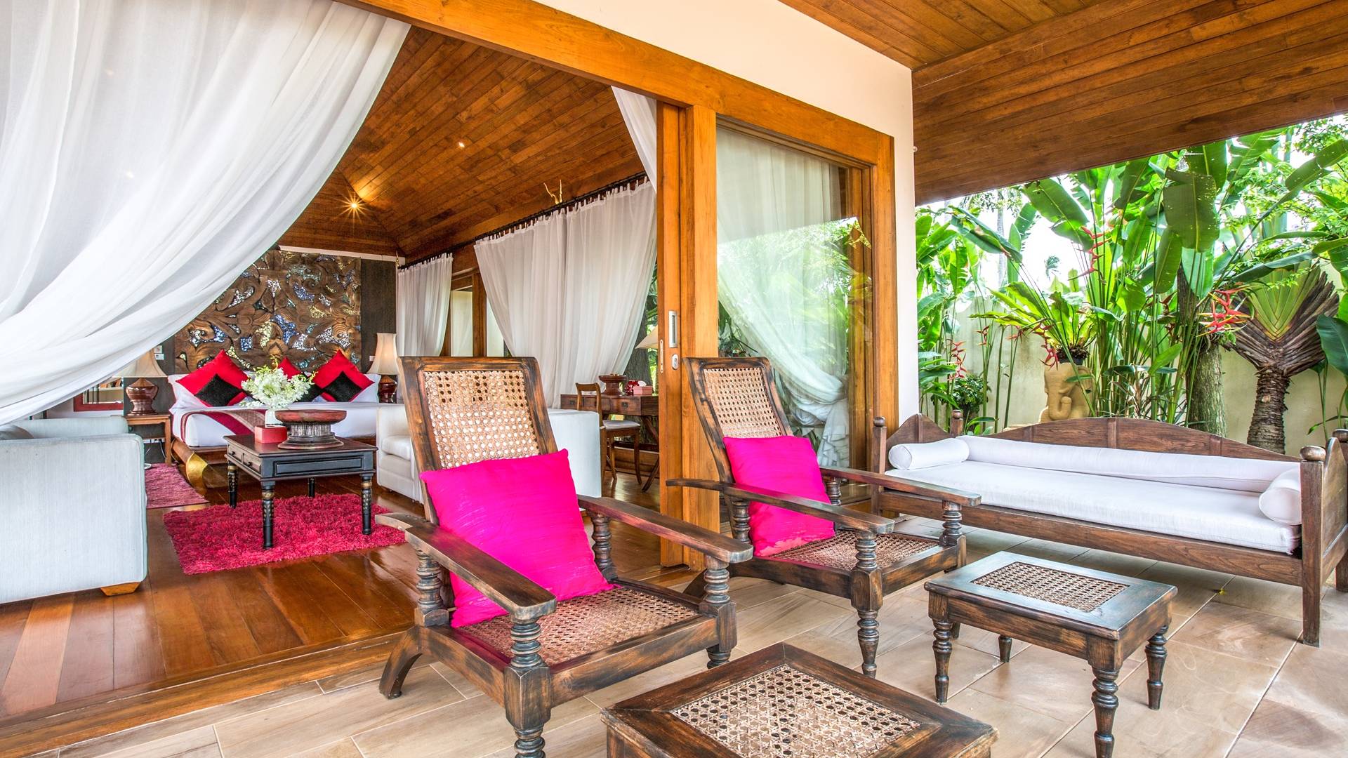 Οι λιμνούλες με πεταλούδες άφθονες με λουλούδια λωτού και βάτες, ανοίγουν το δρόμο για τον θολωτό χώρο διαβίωσης, στο κέντρο της βίλας. Μεγάλες συρόμενες πόρτες κονσέρτινα πίσω σε μοναδικό σχεδιασμό που διαλύει κάθε διάκριση μεταξύ εσωτερικού και εξωτερικού χώρου. Το πολυτελές σαλόνι με ψηλή οροφή με ανεμιστήρες διαθέτει μεγάλα καθίσματα καναπέ για έως και 25 άτομα, LCD 48 ιντσών, με εκτενή DVD και βιβλιοθήκη βιβλίων.
